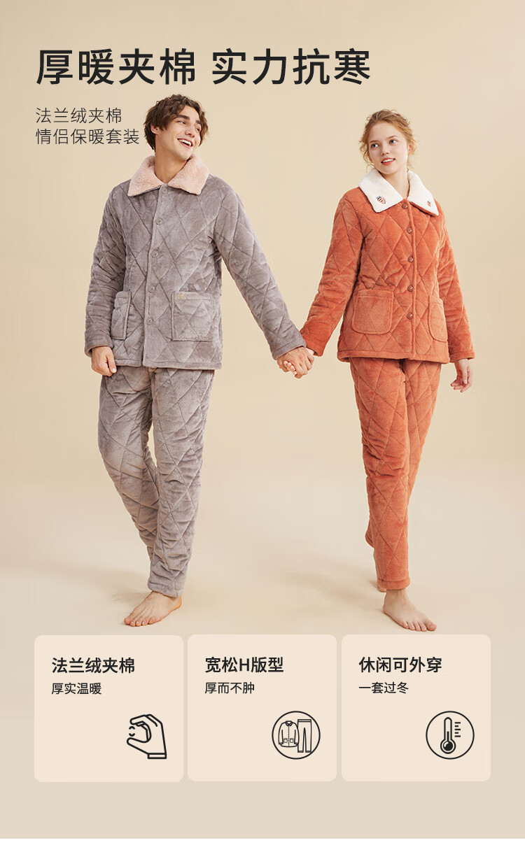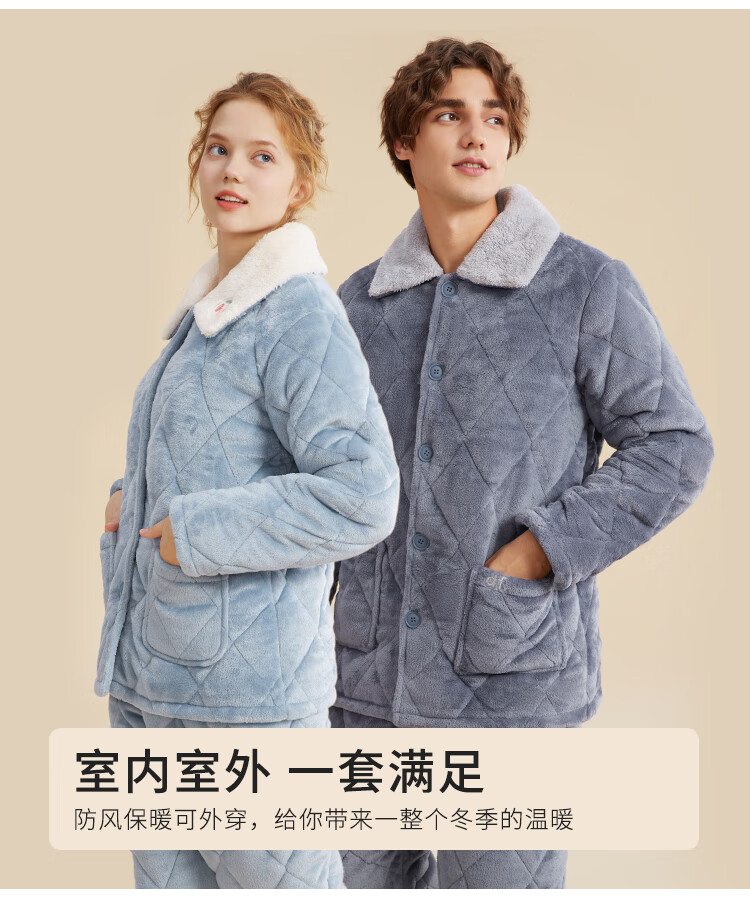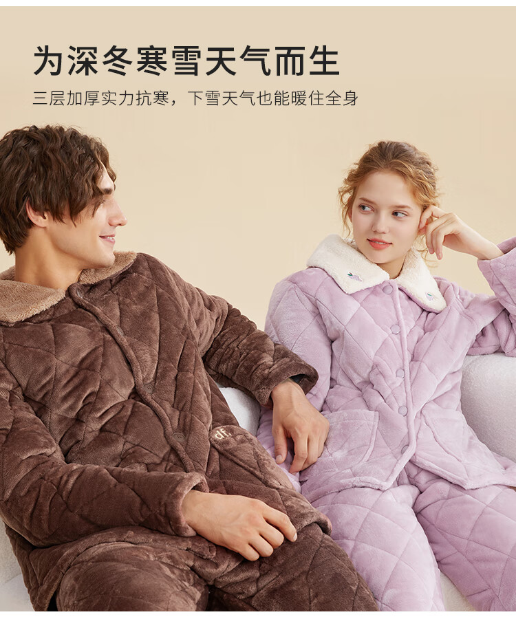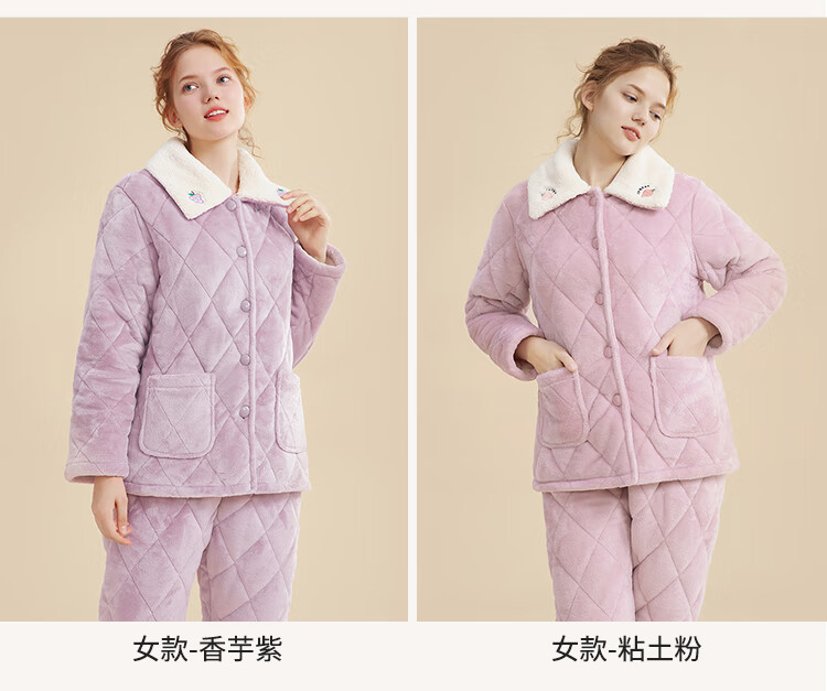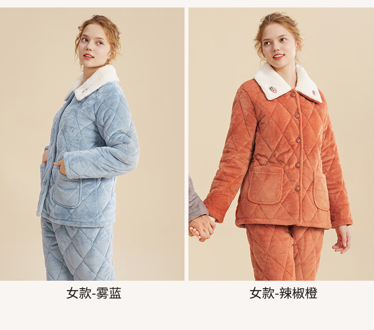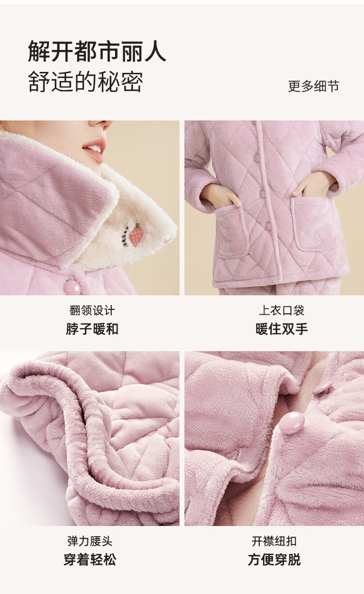 都市丽人内衣三层夹棉睡衣女加绒加厚保暖法兰绒长袖秋冬家居服套装2H30C6