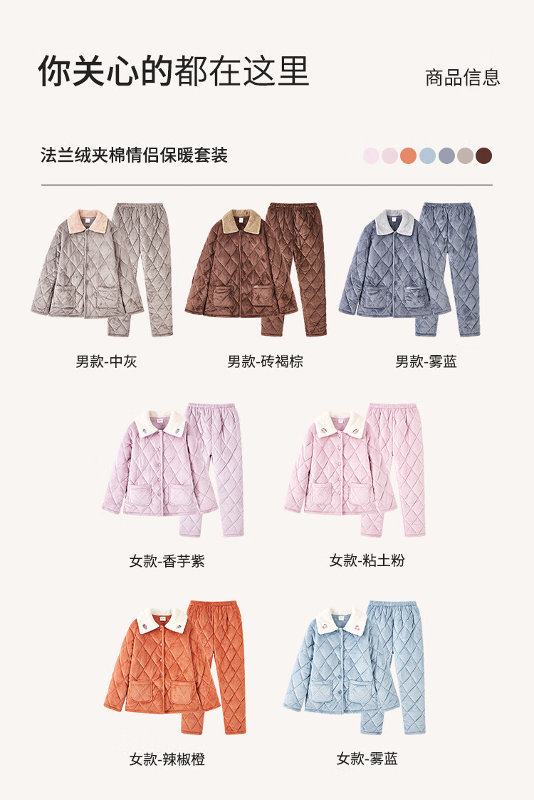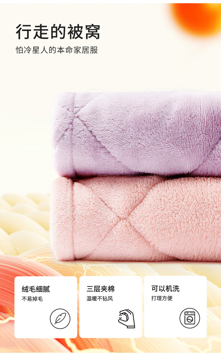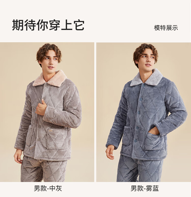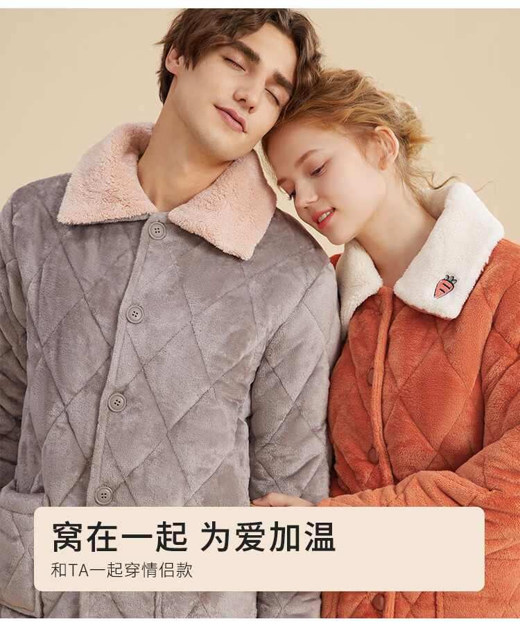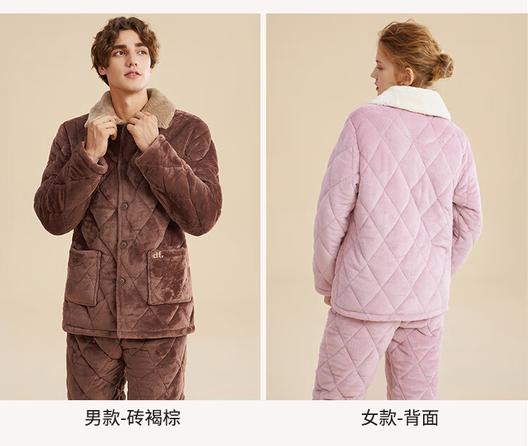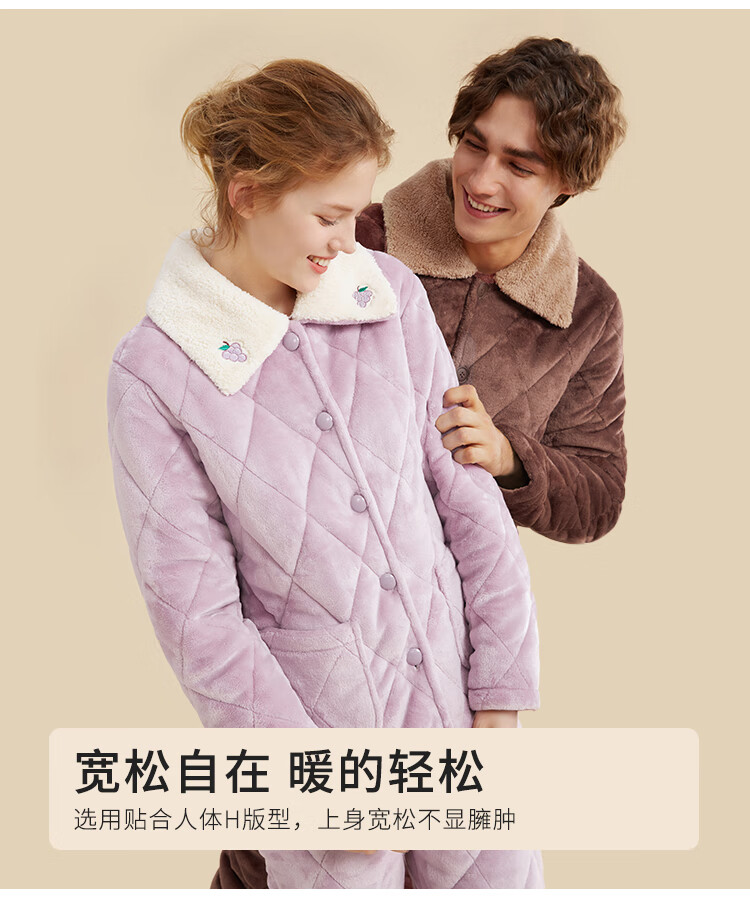 都市丽人内衣三层夹棉睡衣女加绒加厚保暖法兰绒长袖秋冬家居服套装2H30C6