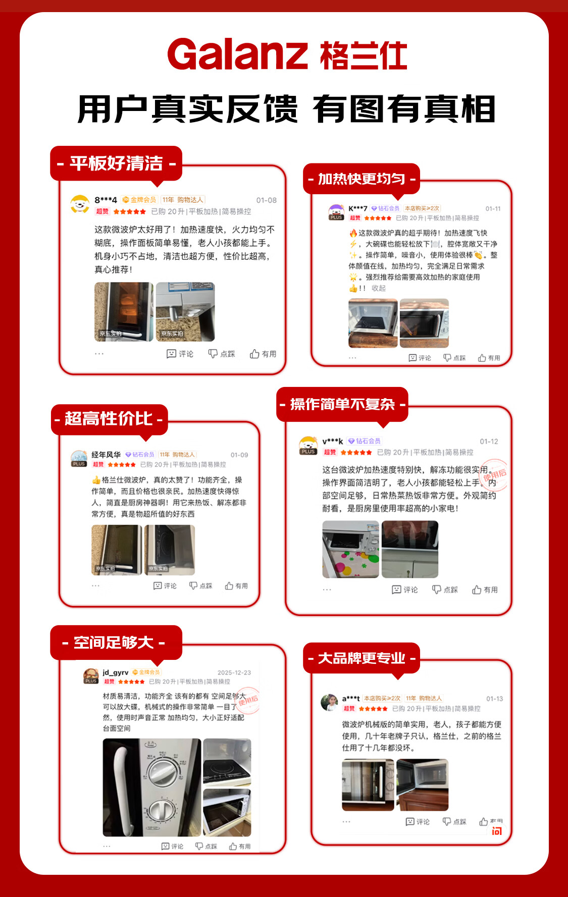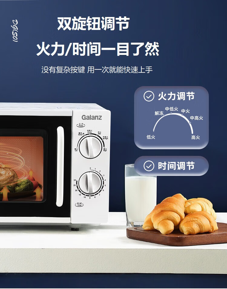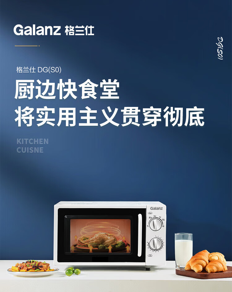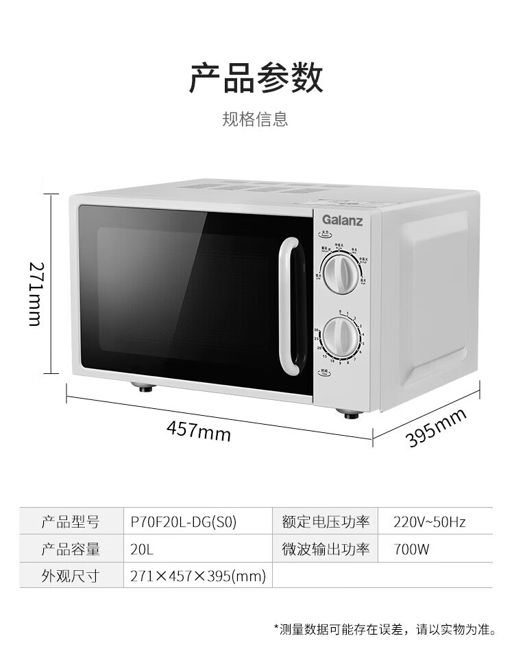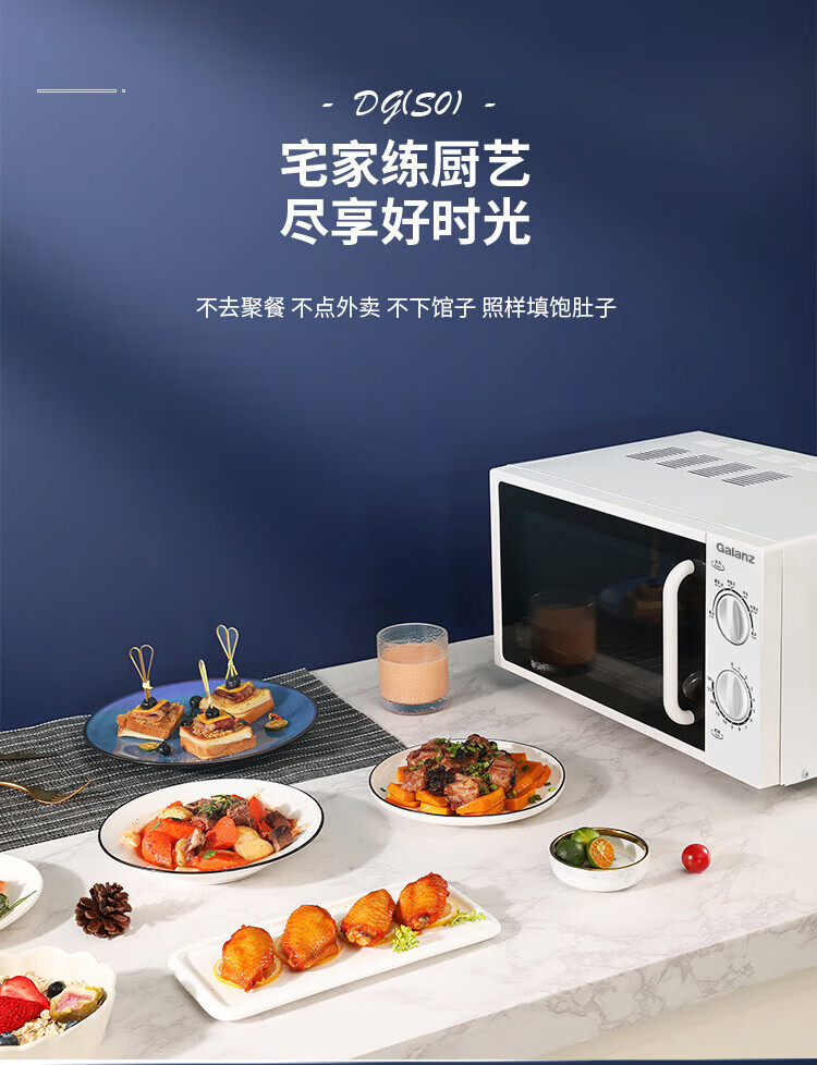 格兰仕(Galanz)平板式小型家用微波炉20升700W精准温控旋钮操作更便捷DG(S0)