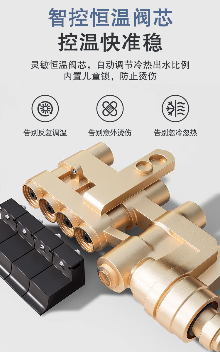 1号会员店One's Member 恒温数显花洒套装 钢琴键增压贴墙 枪灰色包安装