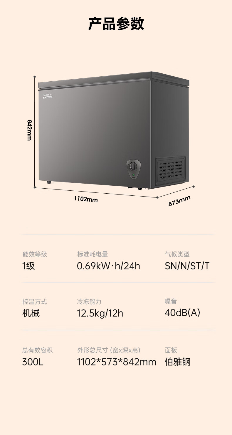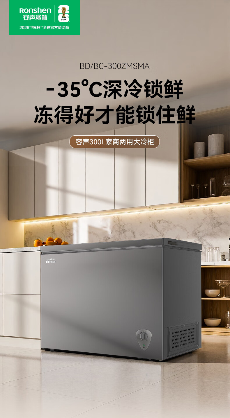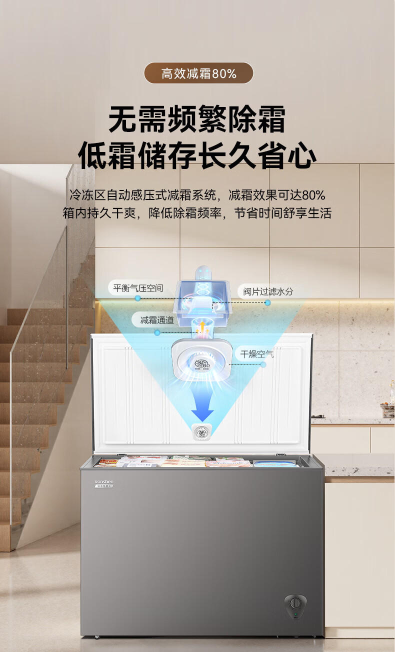 容声(Ronshen)300L单温家用冰柜冰箱PCM防腐内胆大容量可囤约430斤肉减霜冰柜冰箱BD/BC-300ZMSMA