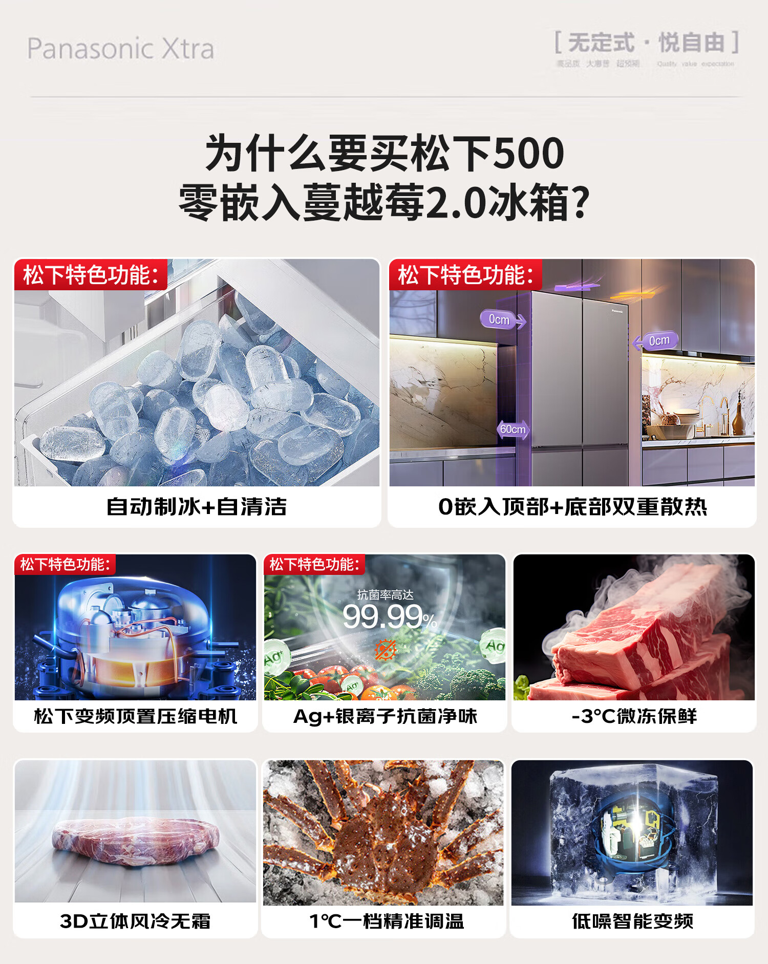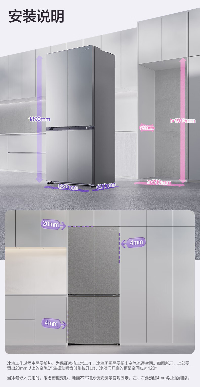 松下(Panasonic)Xtra蔓越莓2.0十字门500L冰箱四开门家用超薄零嵌入自动制冰一级能效NR-XD50C5B-H【国家补贴】