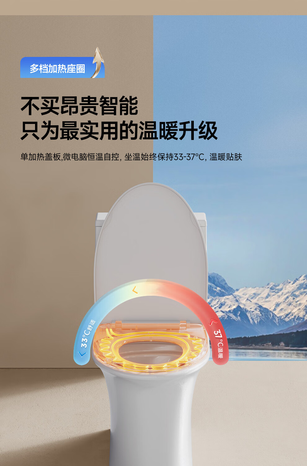箭牌(ARROW)T51H抽水马桶虹吸坐便器普通座便坐厕加热盖板AEB12653M 305坑距
