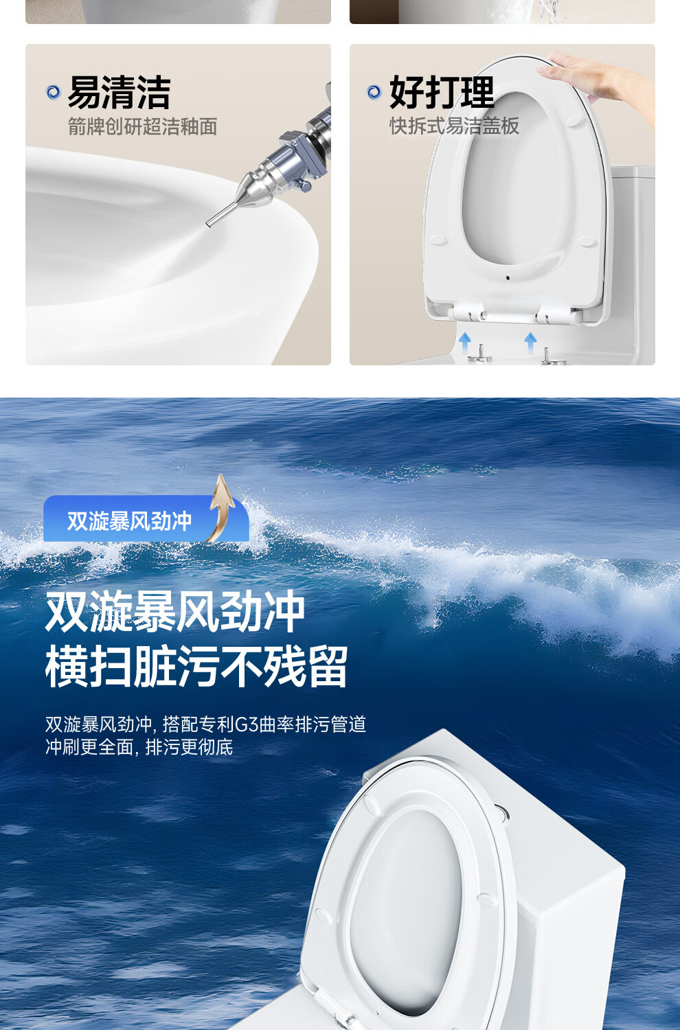 箭牌(ARROW)智能马桶京东联合旋风冲J1Pro旋风魔力泡自动翻盖1208-PM 305坑距