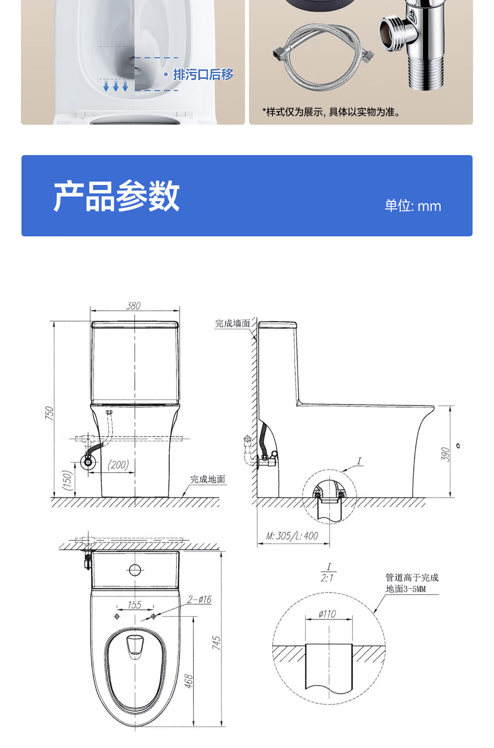 九牧(JOMOO)马桶 家用虹吸式马桶大冲力节水坐便器 防臭瞬冲 易洁抗菌马桶 易洁无棱-双旋暴风冲11396-400坑