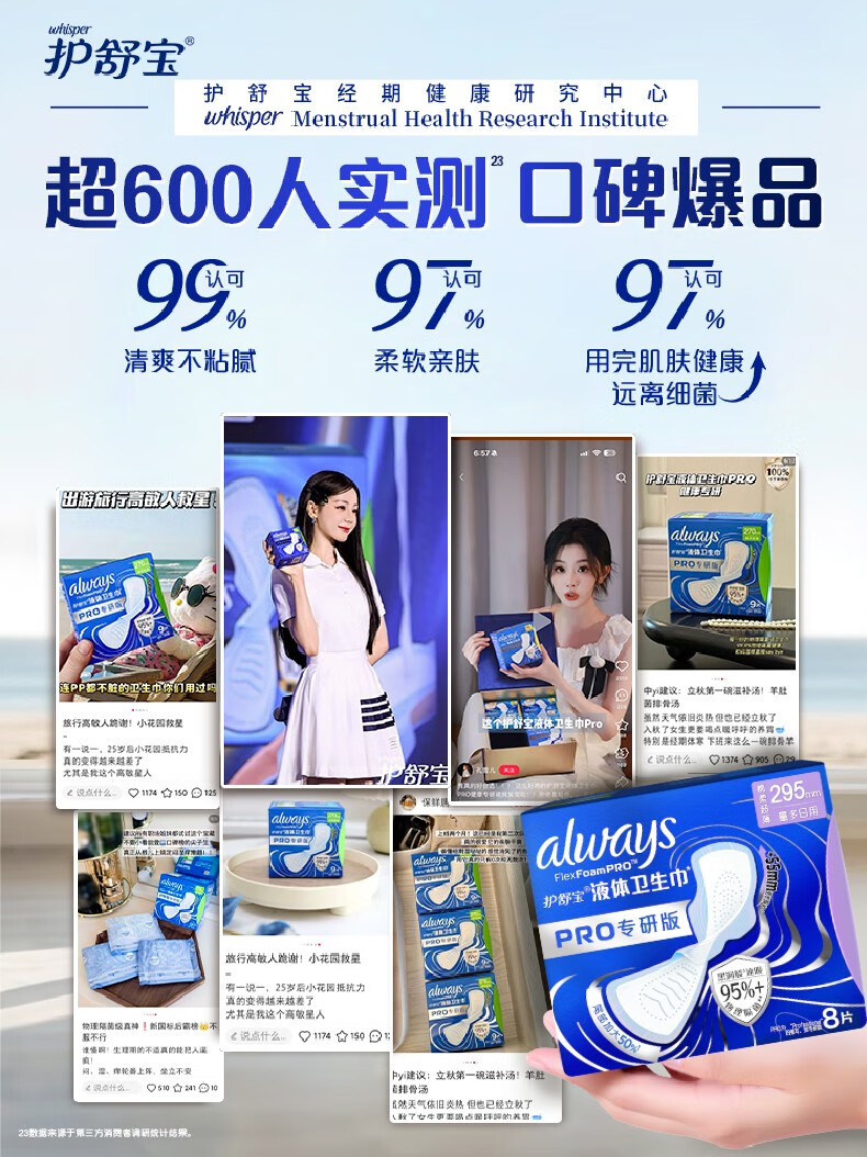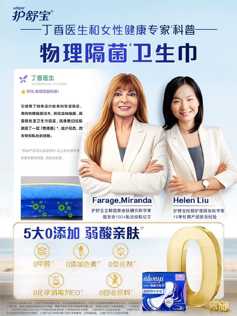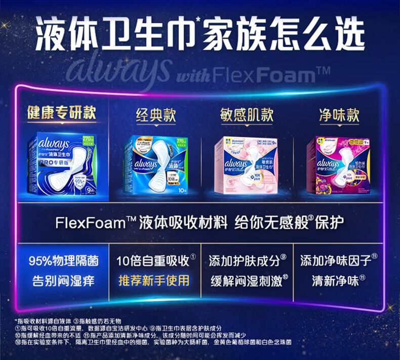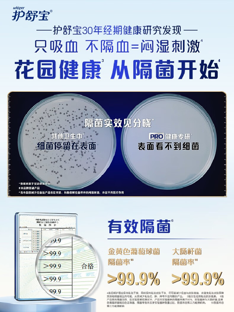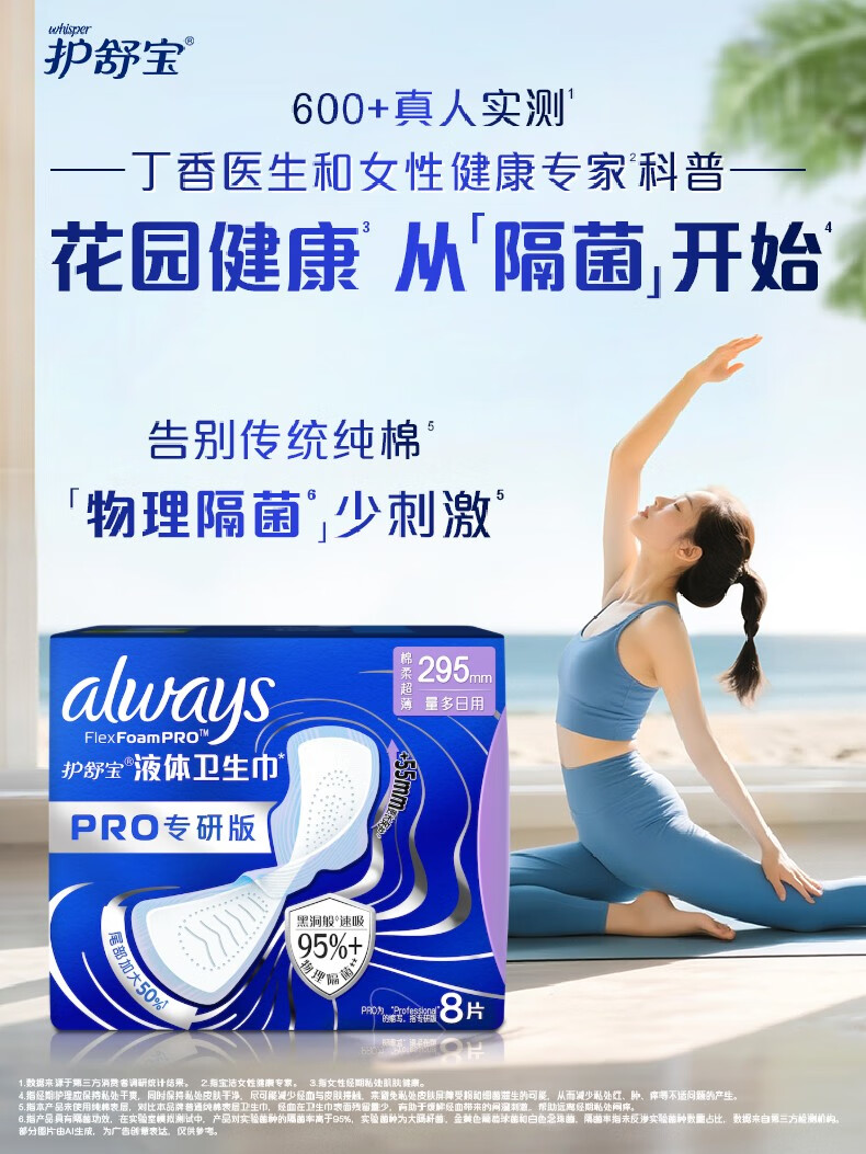 护舒宝95%物理隔菌卫生巾加长日用295mm8片液体卫生巾PRO姨妈巾京东自营