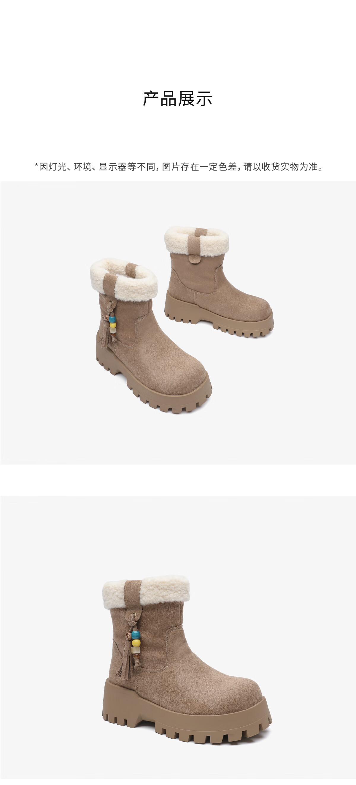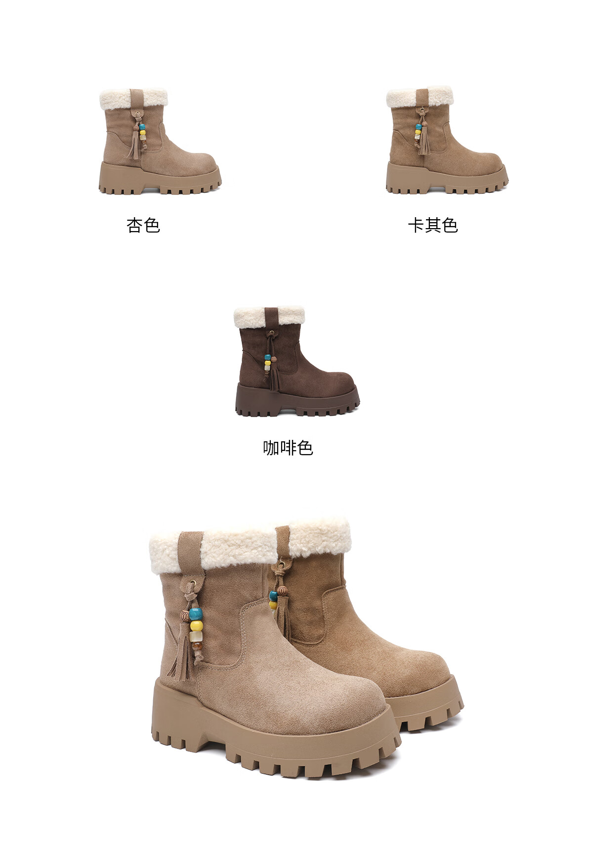 星期六毛绒雪地靴女款冬季加绒2025新款女鞋东北短筒棉鞋厚底保暖面包鞋 卡其色 【冬季保暖】跟高3cm 38