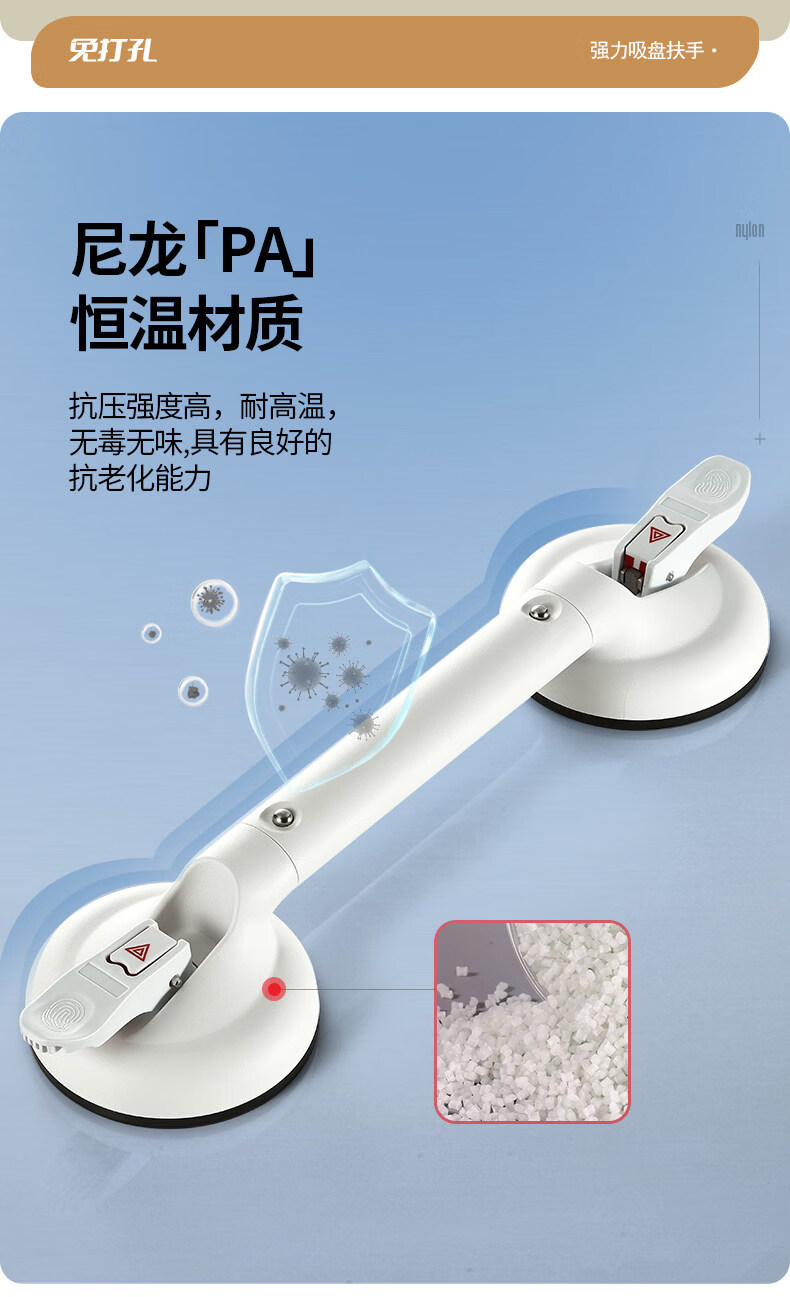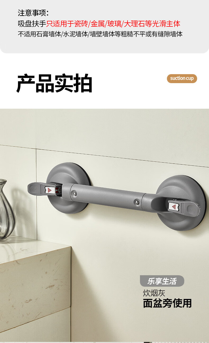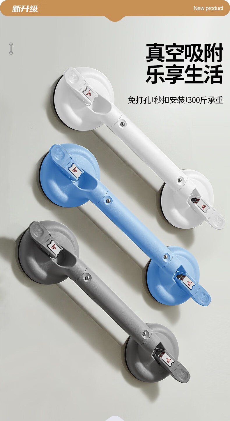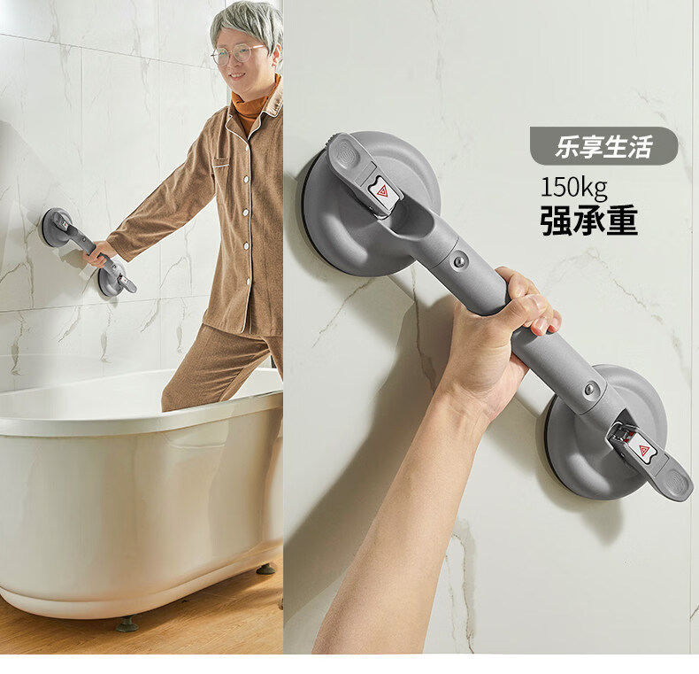家文化(JIAWENHUA)浴室扶手免打孔卫生间马桶安全拉手无障碍残疾人老人厕所防滑栏杆 免打孔430MM真空扶手标准杆银灰
