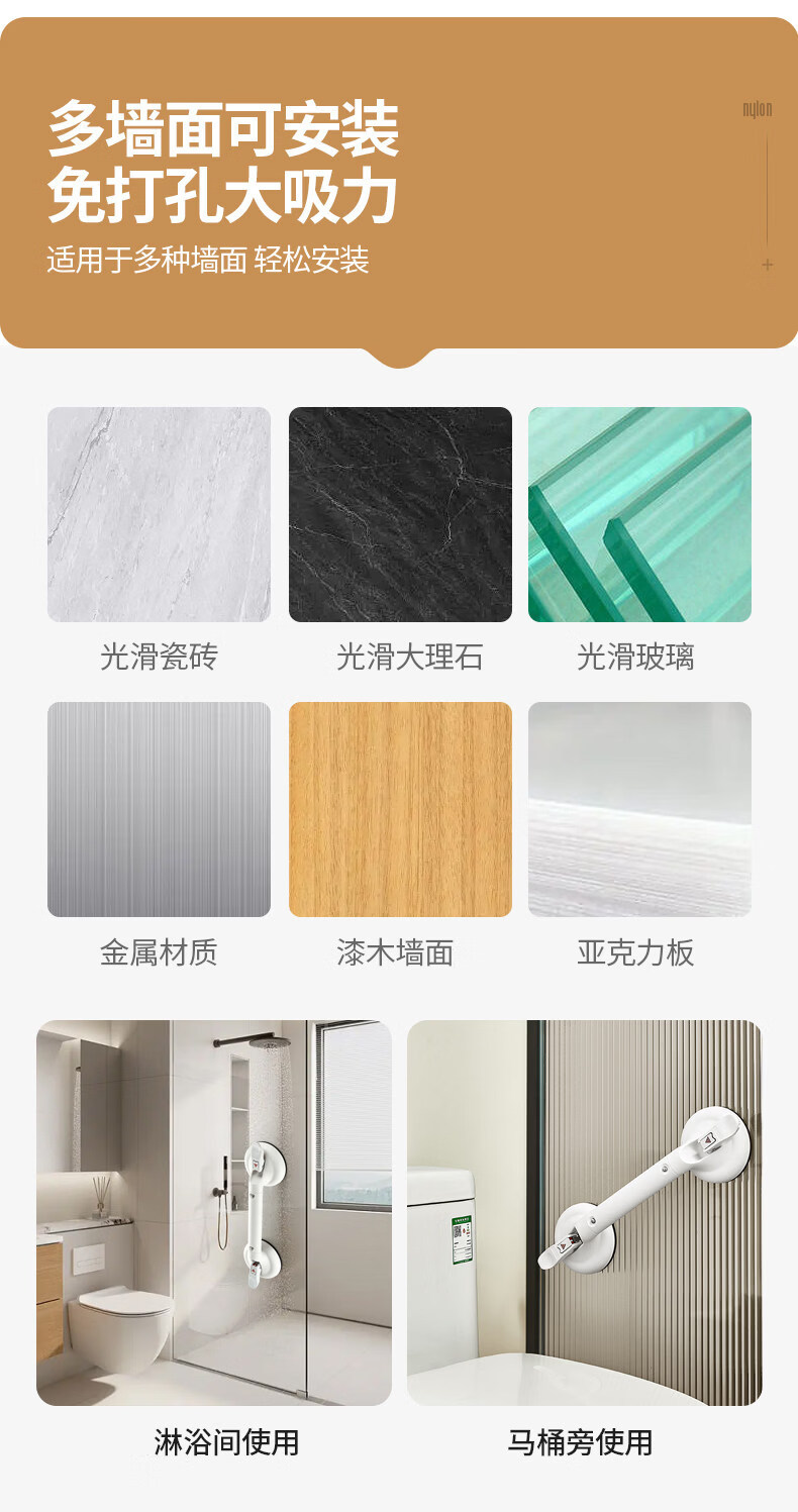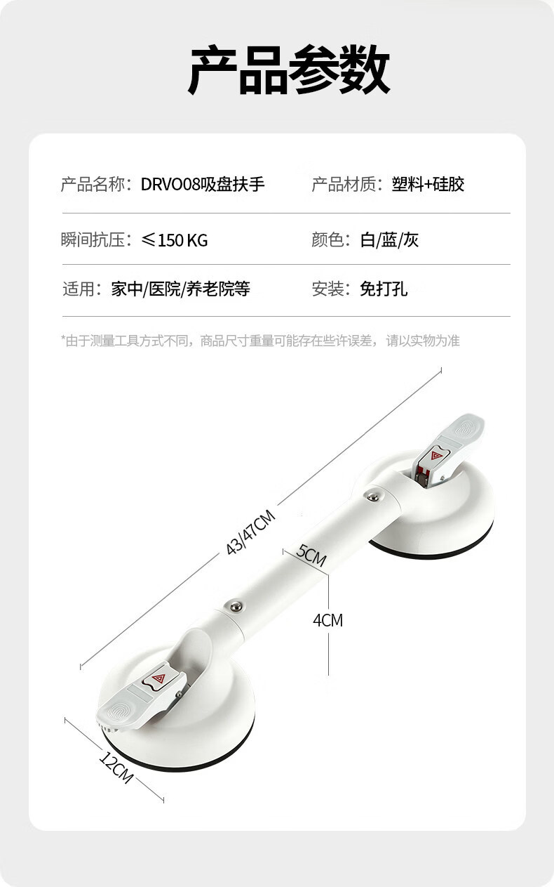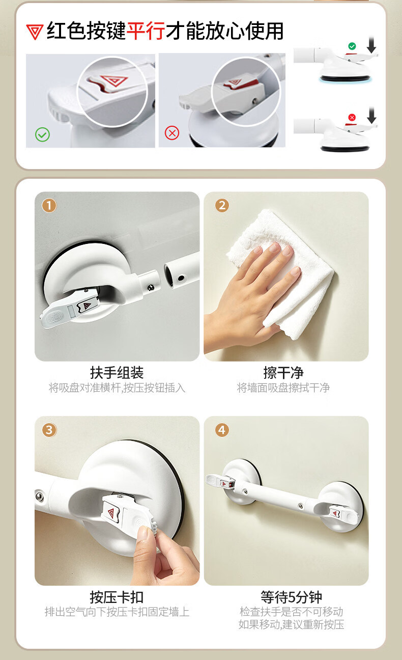 家文化(JIAWENHUA)浴室扶手免打孔卫生间马桶安全拉手无障碍残疾人老人厕所防滑栏杆 免打孔430MM真空扶手标准杆银灰