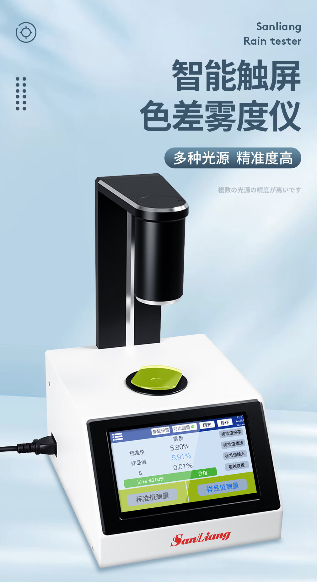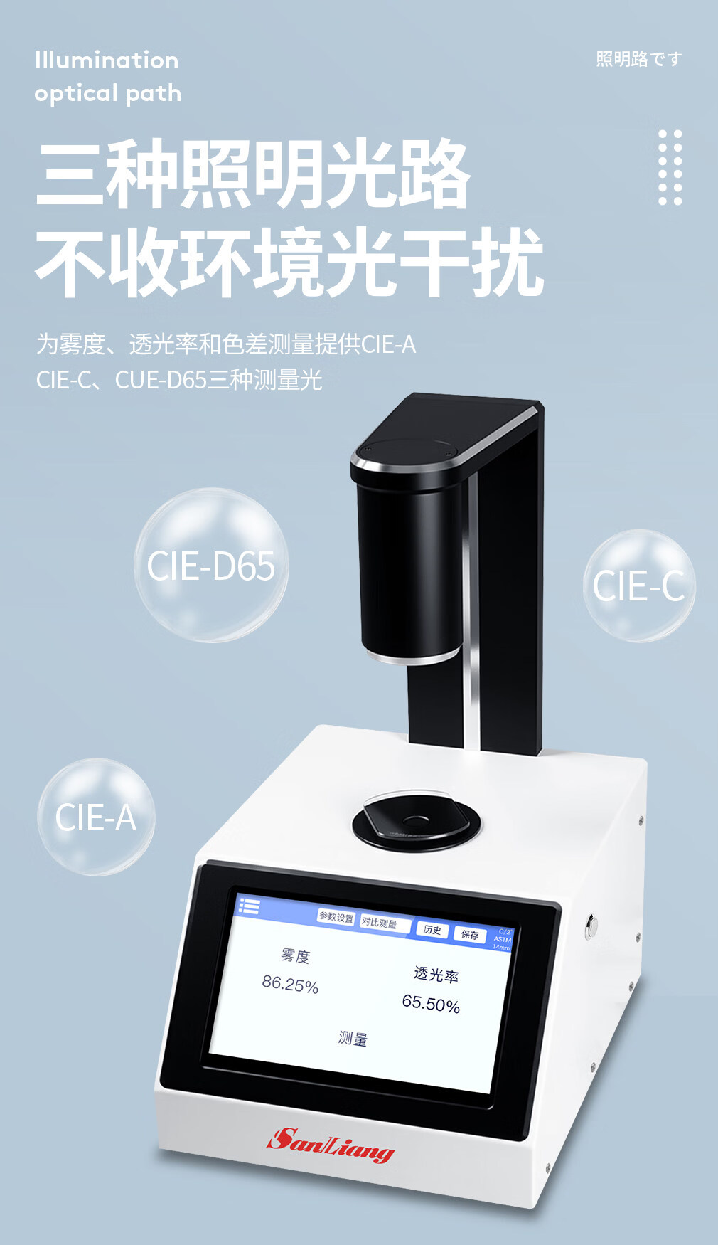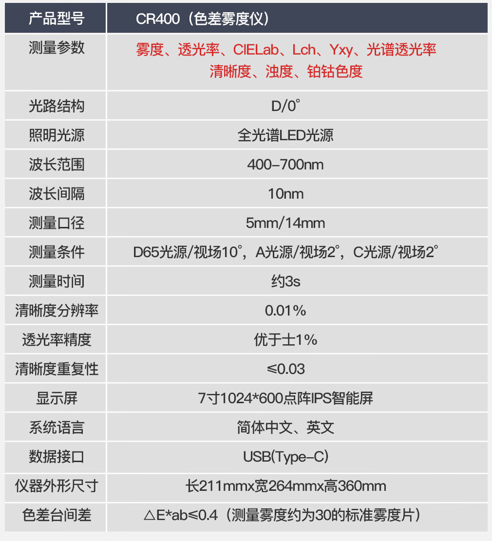 三量(sanliang)日本三量智能触屏色差雾度仪塑料透光率雾度仪液体色差雾度测试仪 CR400色差雾度仪(多功能,可测液体等透明半透明材料 无规格