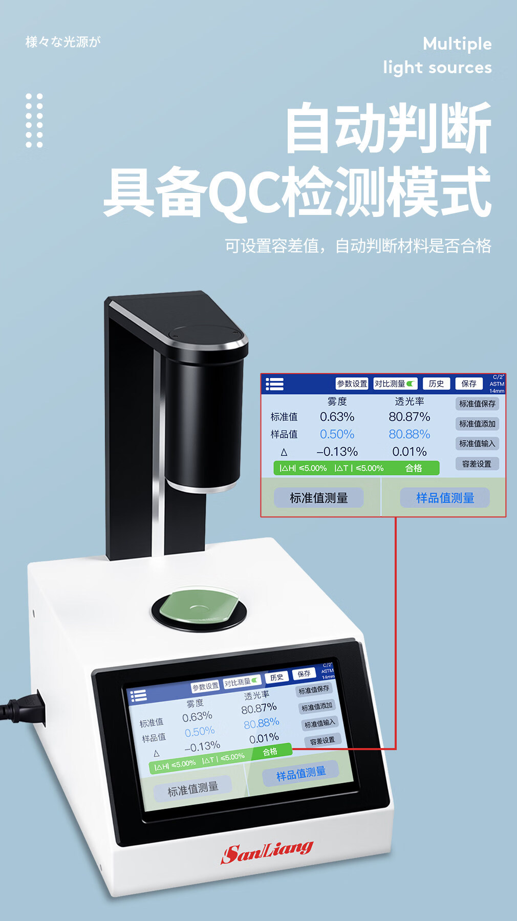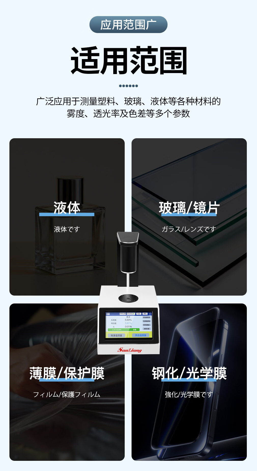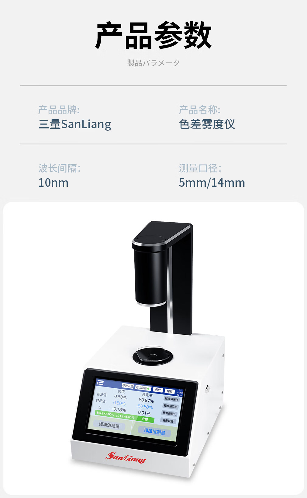 三量(sanliang)日本三量智能触屏色差雾度仪塑料透光率雾度仪液体色差雾度测试仪 CR400色差雾度仪(多功能,可测液体等透明半透明材料 无规格