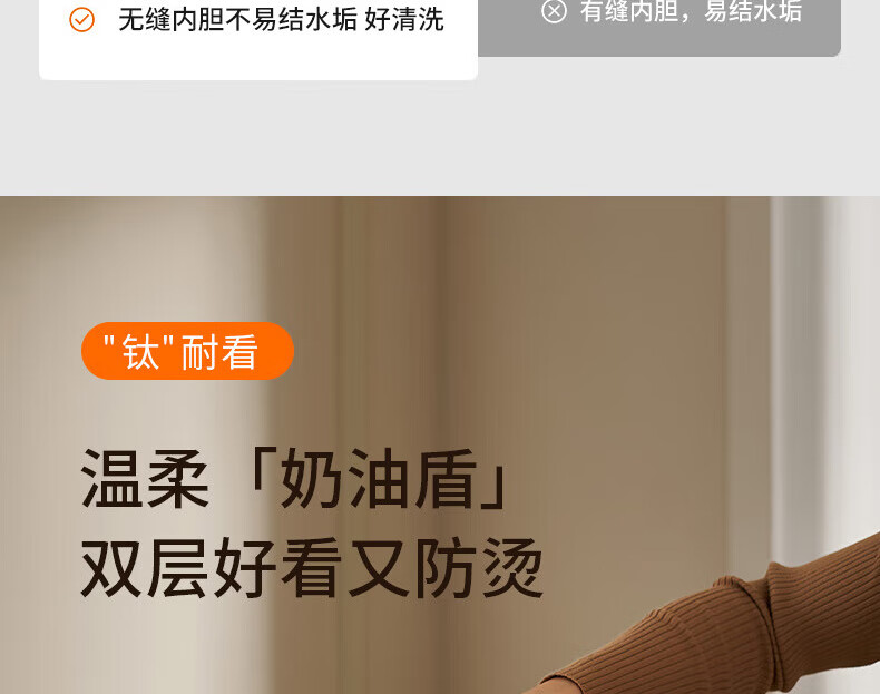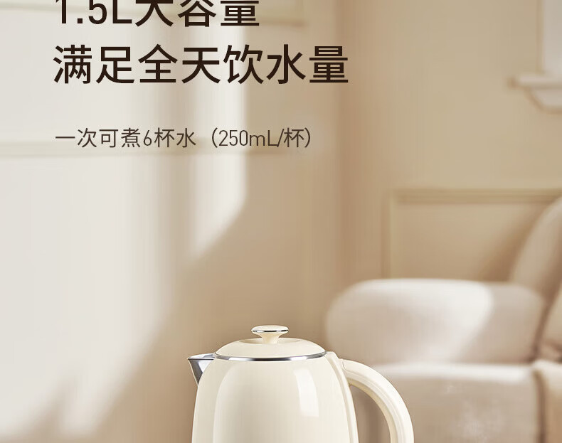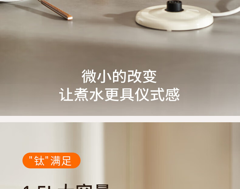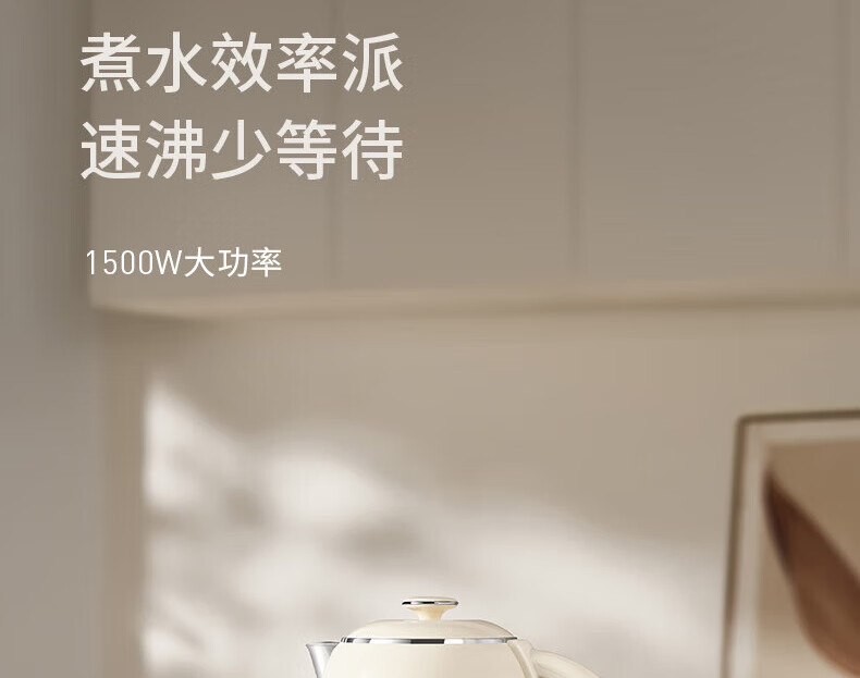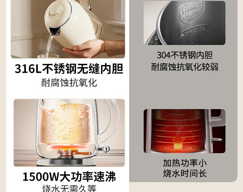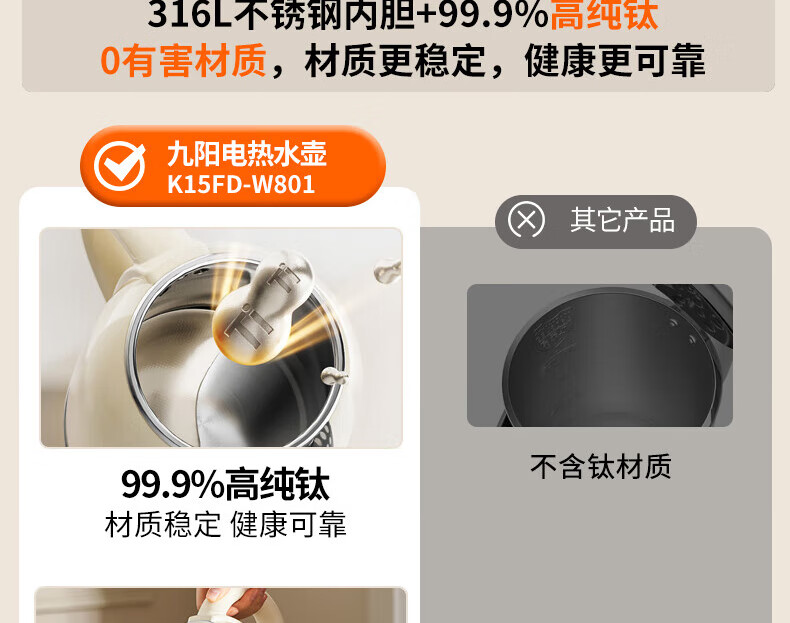 九阳电热水壶家用电水壶烧水壶食品级316不锈钢无缝一体 99.9%高纯钛 1500W快速沸腾烧水壶 1.5L