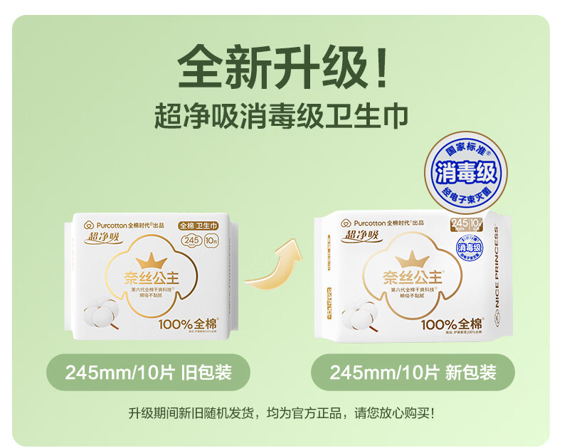 全棉时代奈丝公主医护级超净吸纯棉日用卫生巾3包(245*30p)京东自营