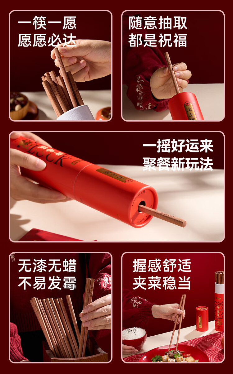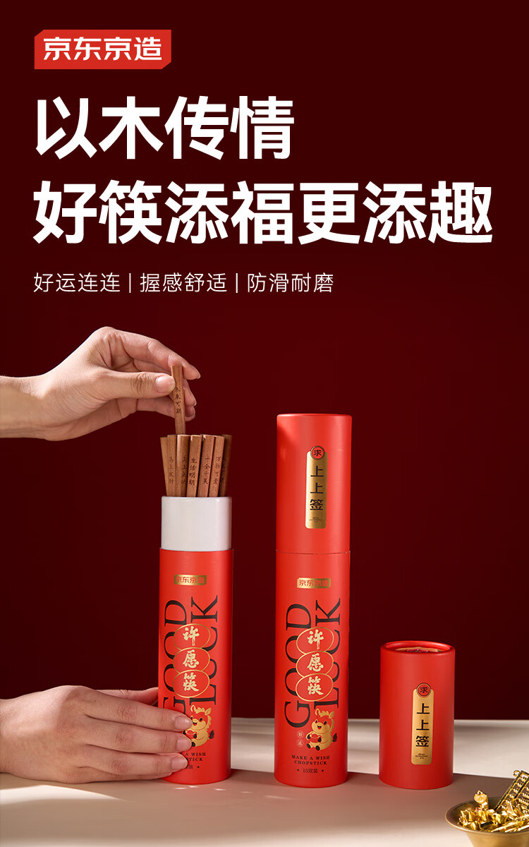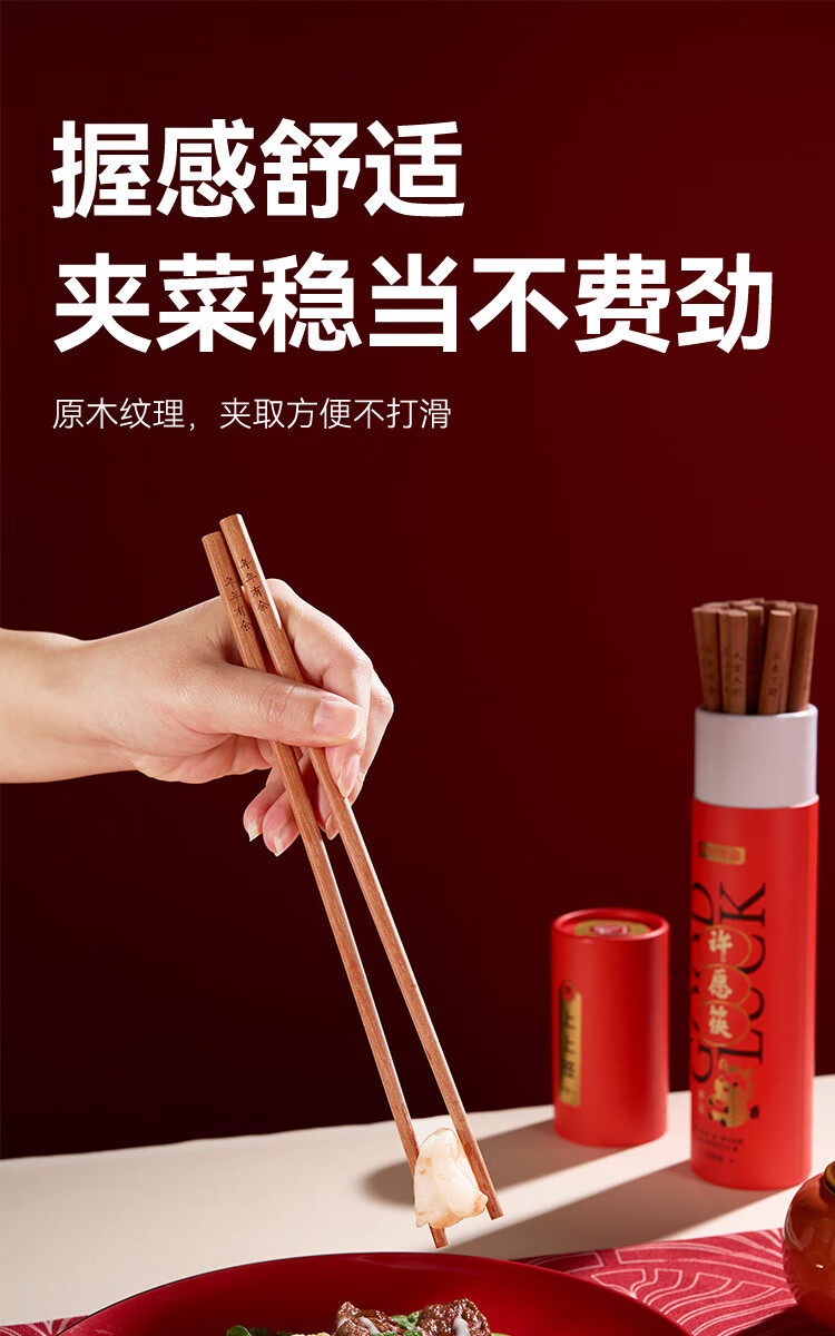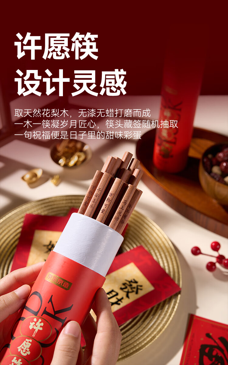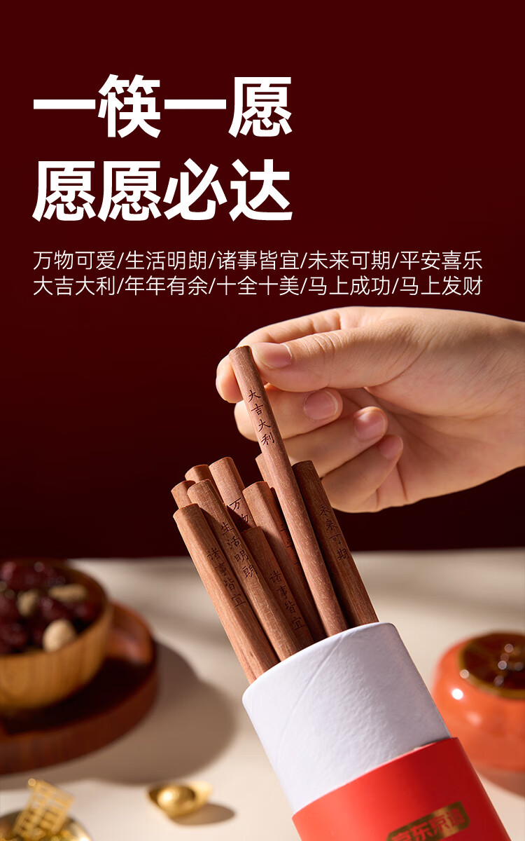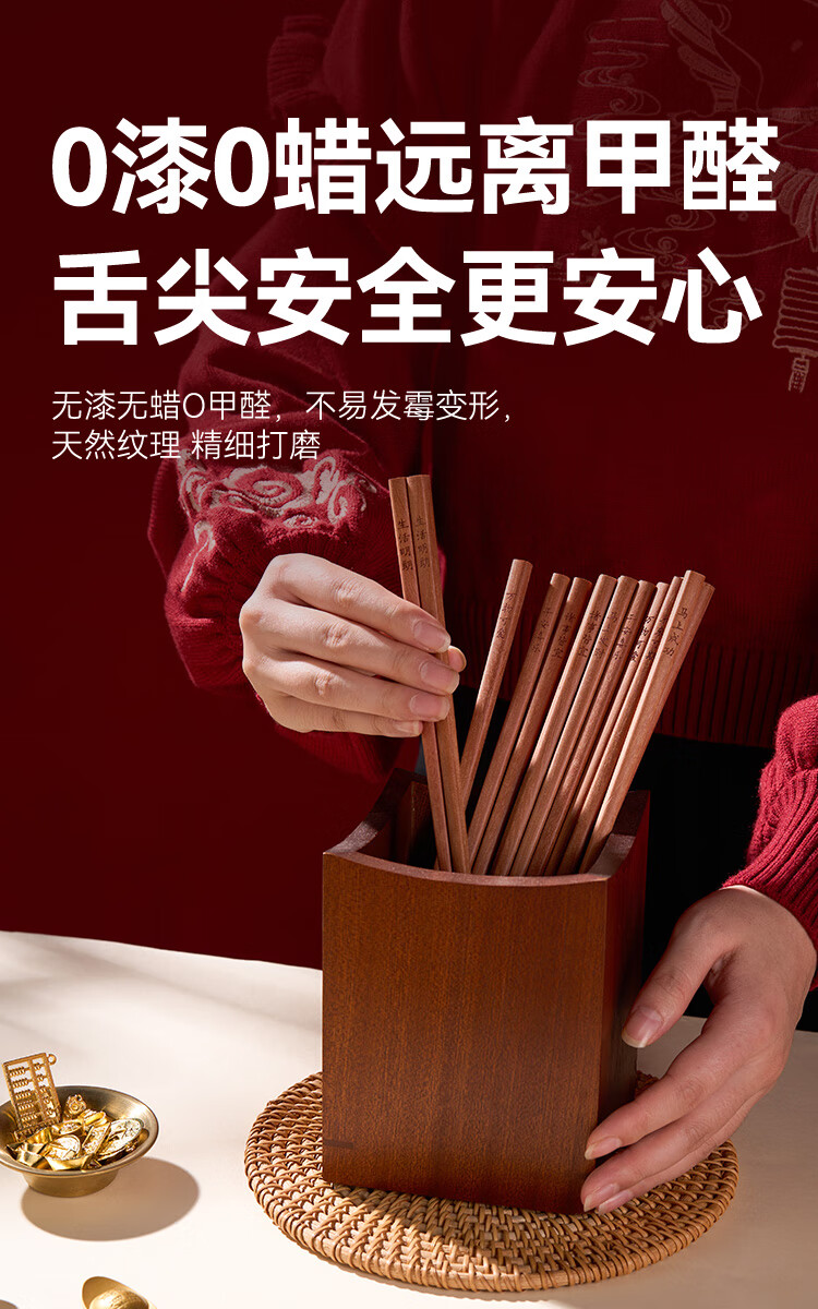 京东京造 筷子 花梨木许愿筷天然实木一人一双家用套装【无漆无蜡】10双装