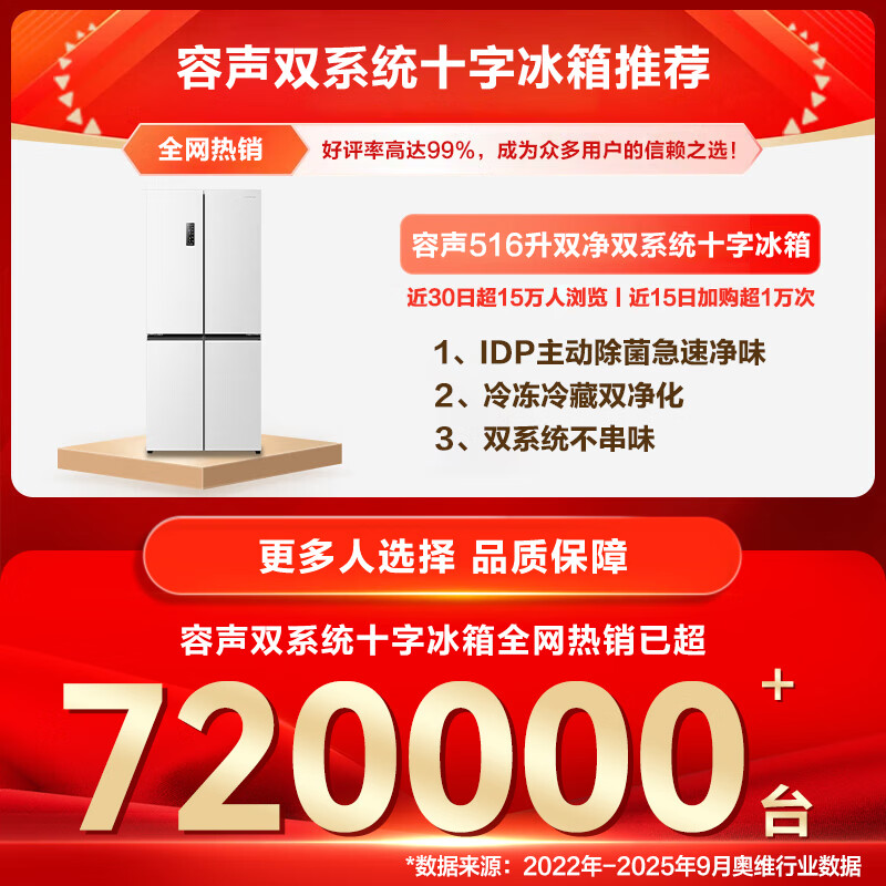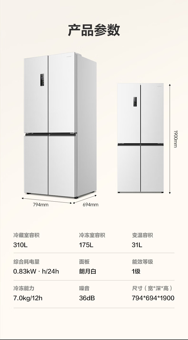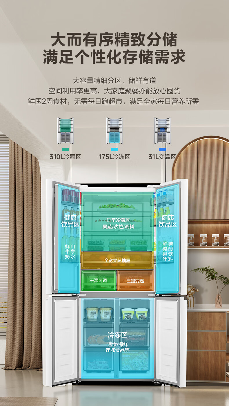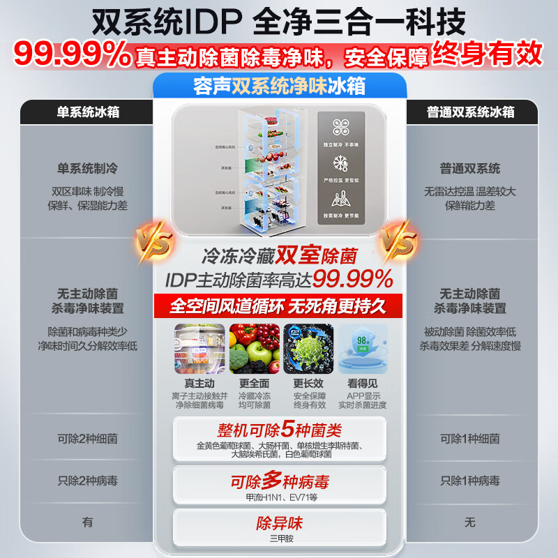 容声双净516L十字门冰箱双系统双循环一级能效风冷无霜变频以旧换新大容量白BCD-516WD1FPA国家补贴