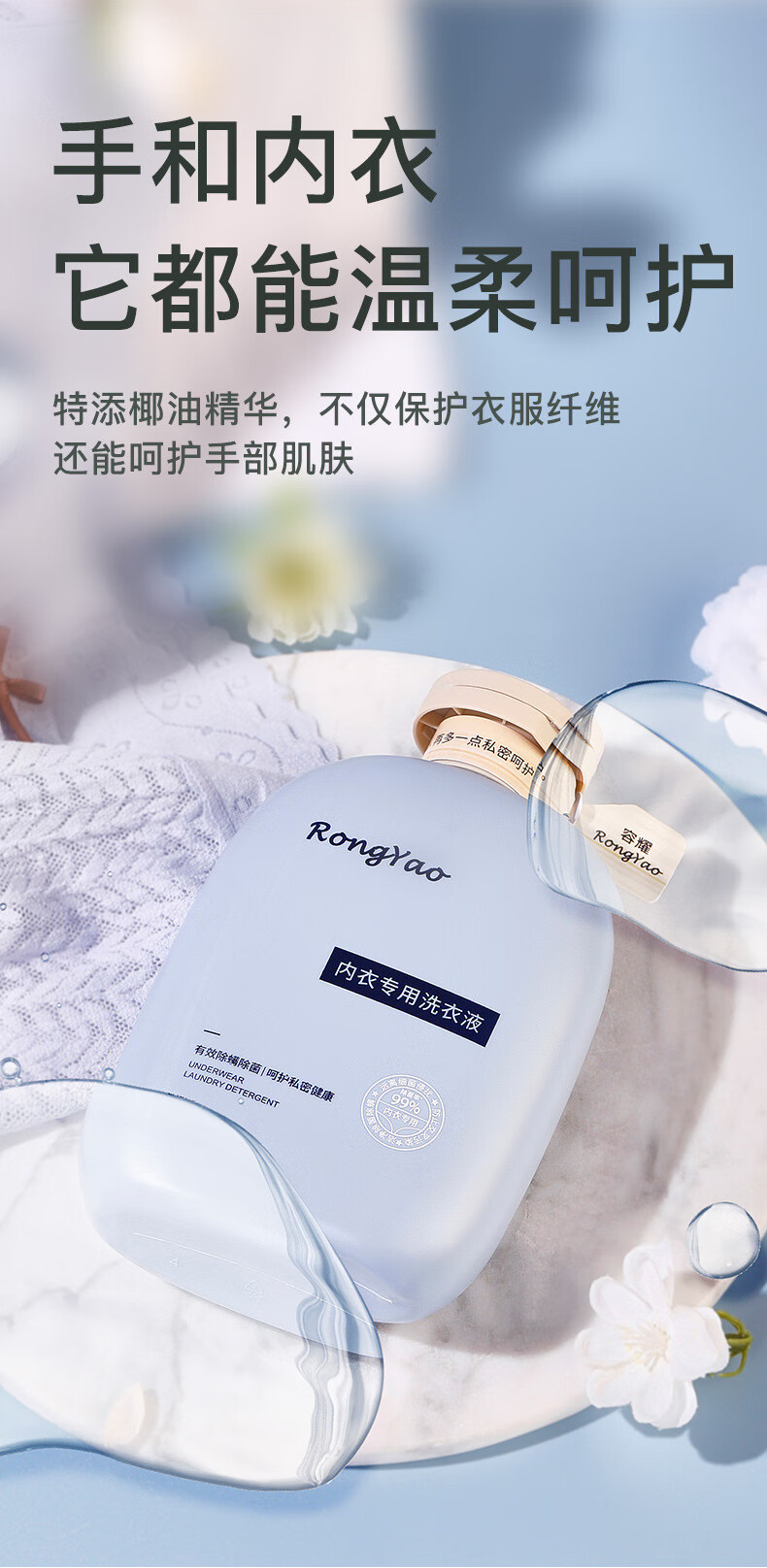 容耀(RONGYAO)内衣专用洗衣液清洗液除菌女士专用杀菌除异味300ml 内衣洗衣液蓝色