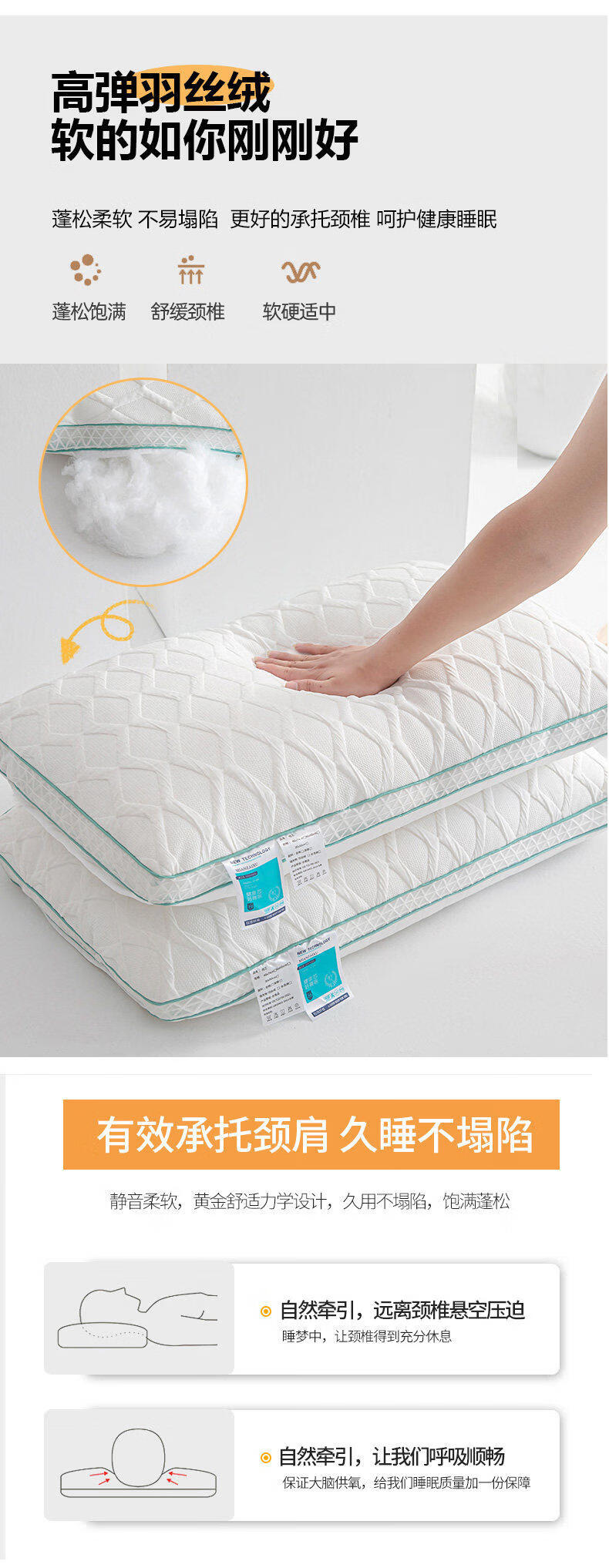 猫人(MiiOW)3D透气护颈椎助睡眠枕头成人家用酒店专用单人一只装一对装枕芯 3d透气针织羽丝绒枕【低枕-一只装】 无规格