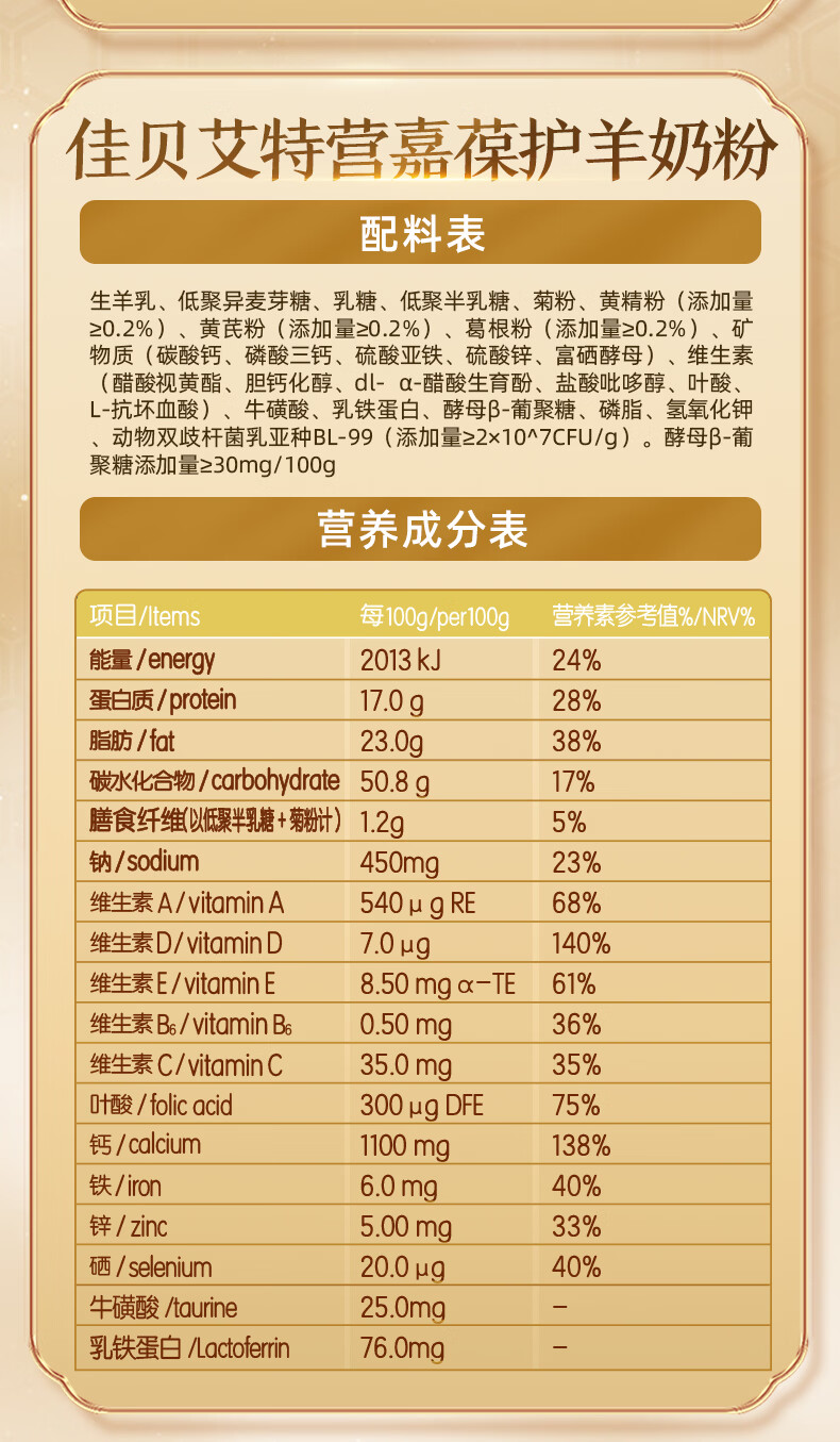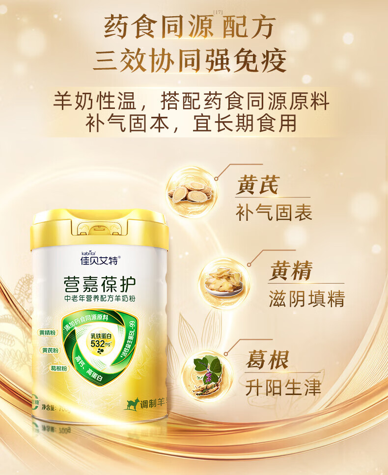 佳贝艾特(Kabrita)中老年羊奶粉低GI高钙乳铁蛋白 生羊乳0蔗糖 700g 营嘉葆护 送礼 【新日期25年7月】700g*1罐
