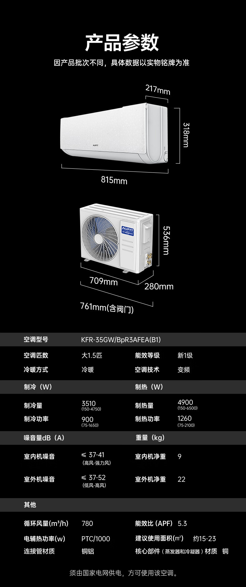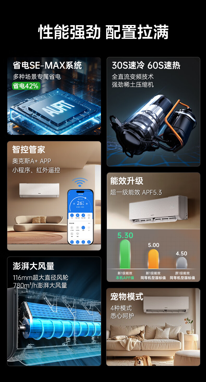 AUFIT空调奥克斯出品大1.5匹空调新一级能效空调变频空调冷暖空调卧室壁挂式防直吹除菌自清洁以旧换新 25款 大1.5匹 一级能效