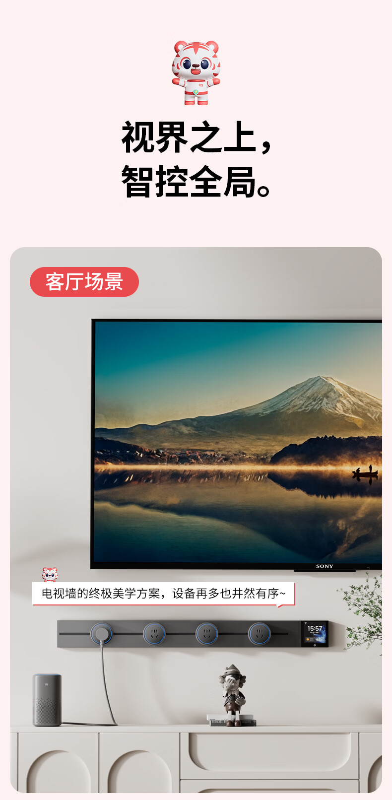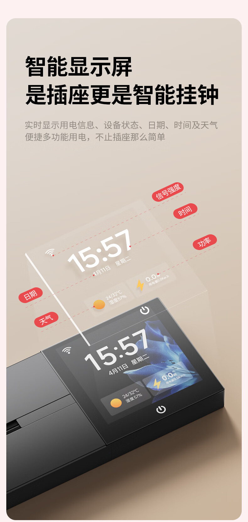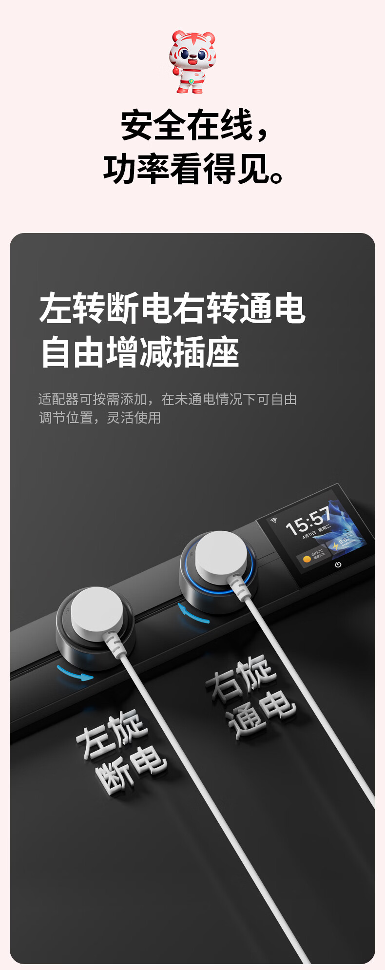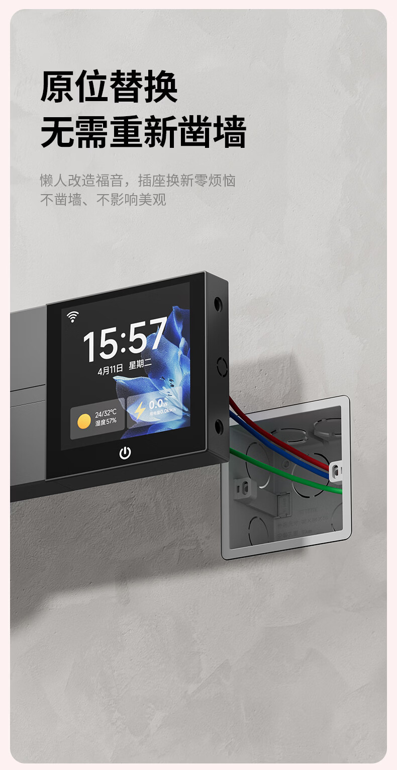 国际电工智能轨道式插座数显屏大功率过载保护移动语音远程已接入米家APP 支持小爱同学控制【高级黑】 智能屏轨道 60cm +4个五孔+1个USB