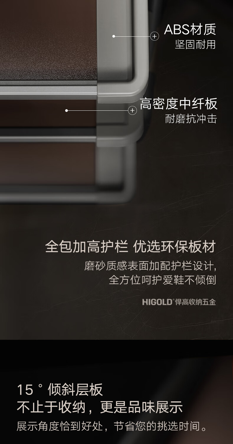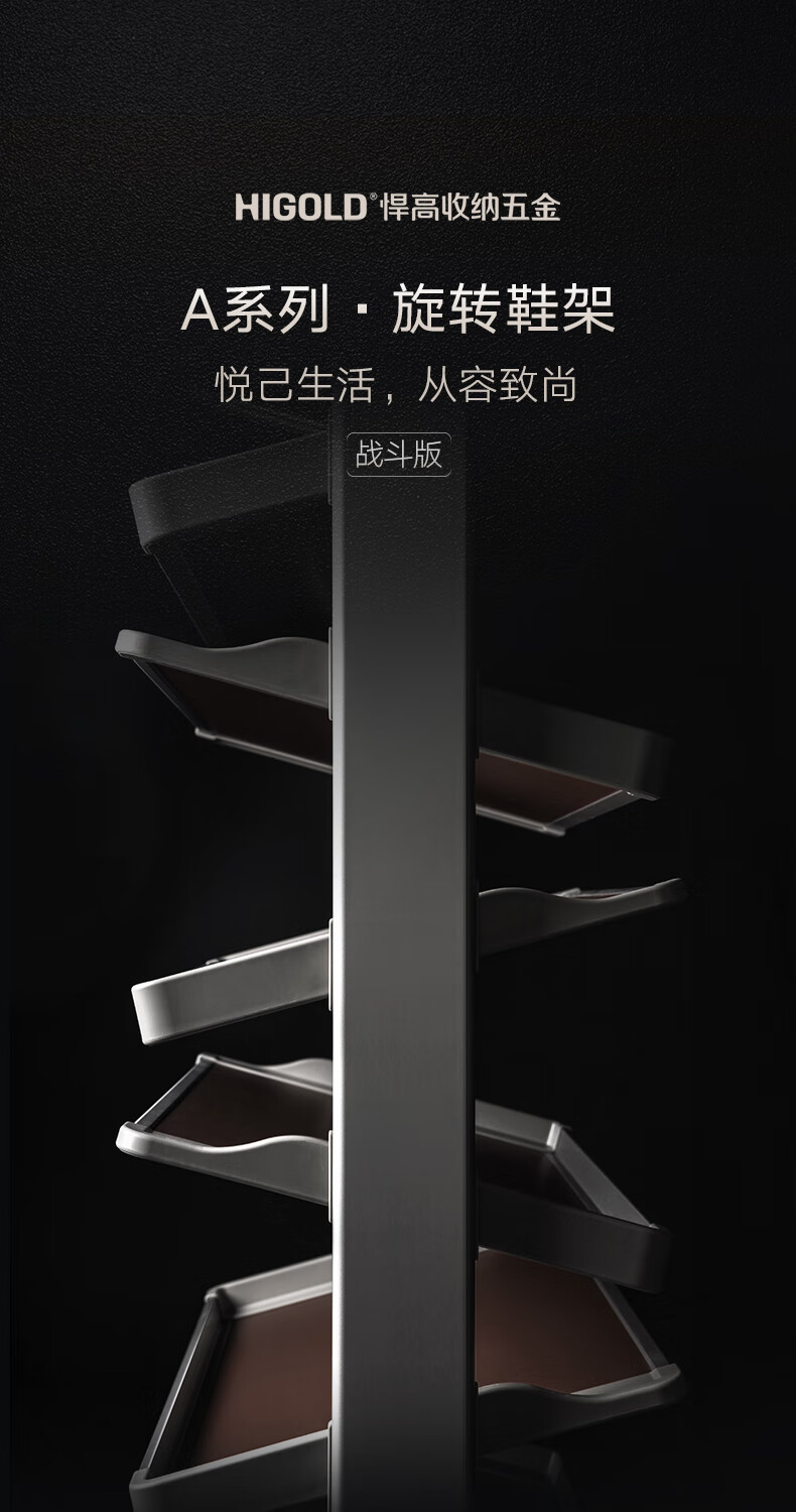 悍高(HIGOLD)家用旋转鞋架高度可调多功能多层鞋架子入户门旋转折叠鞋柜 A系列【高级灰+深咖色】4层铝合金豪华款|阻尼导轨