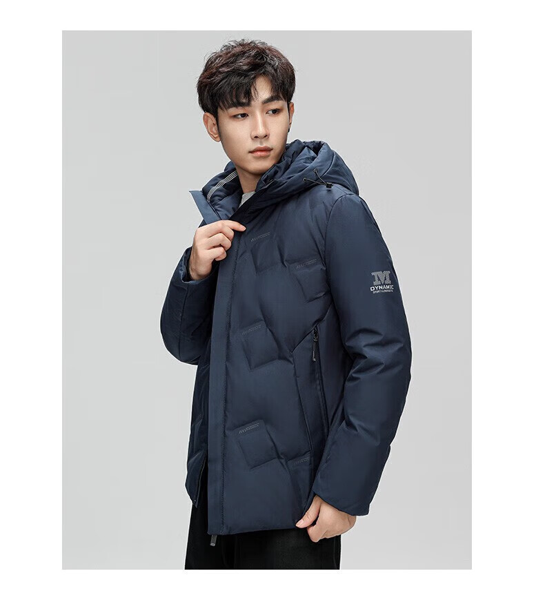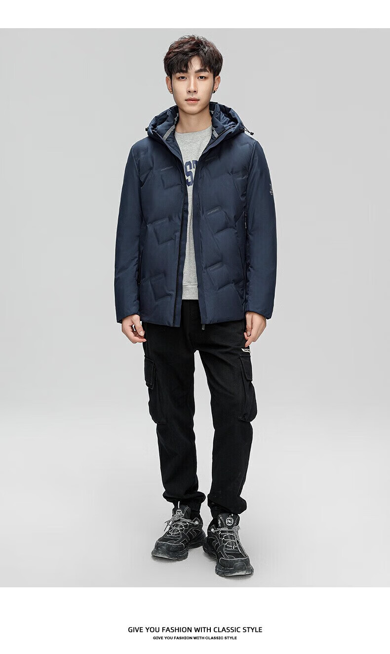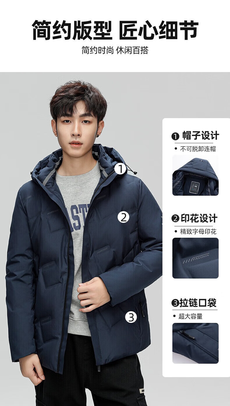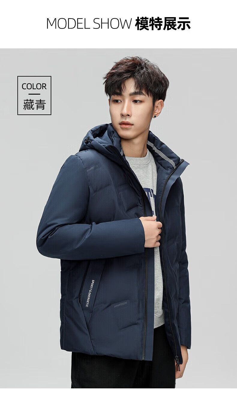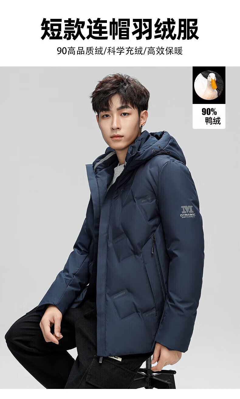 鸭鸭(YAYA)羽绒服男短款连帽立领厚款保暖青年冬季新年工装外套 藏青 2XL 185 (建议140-155斤)