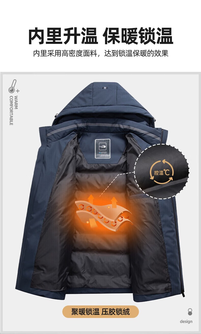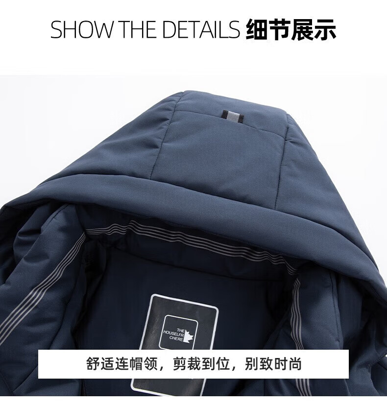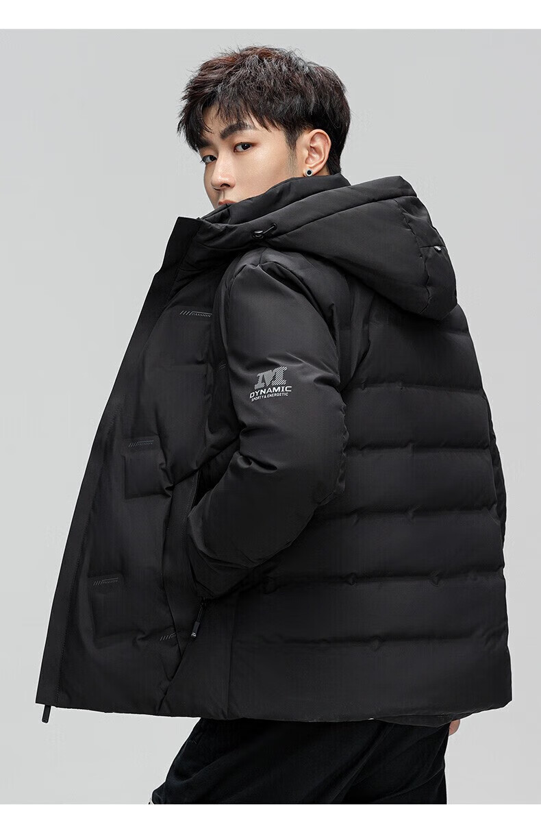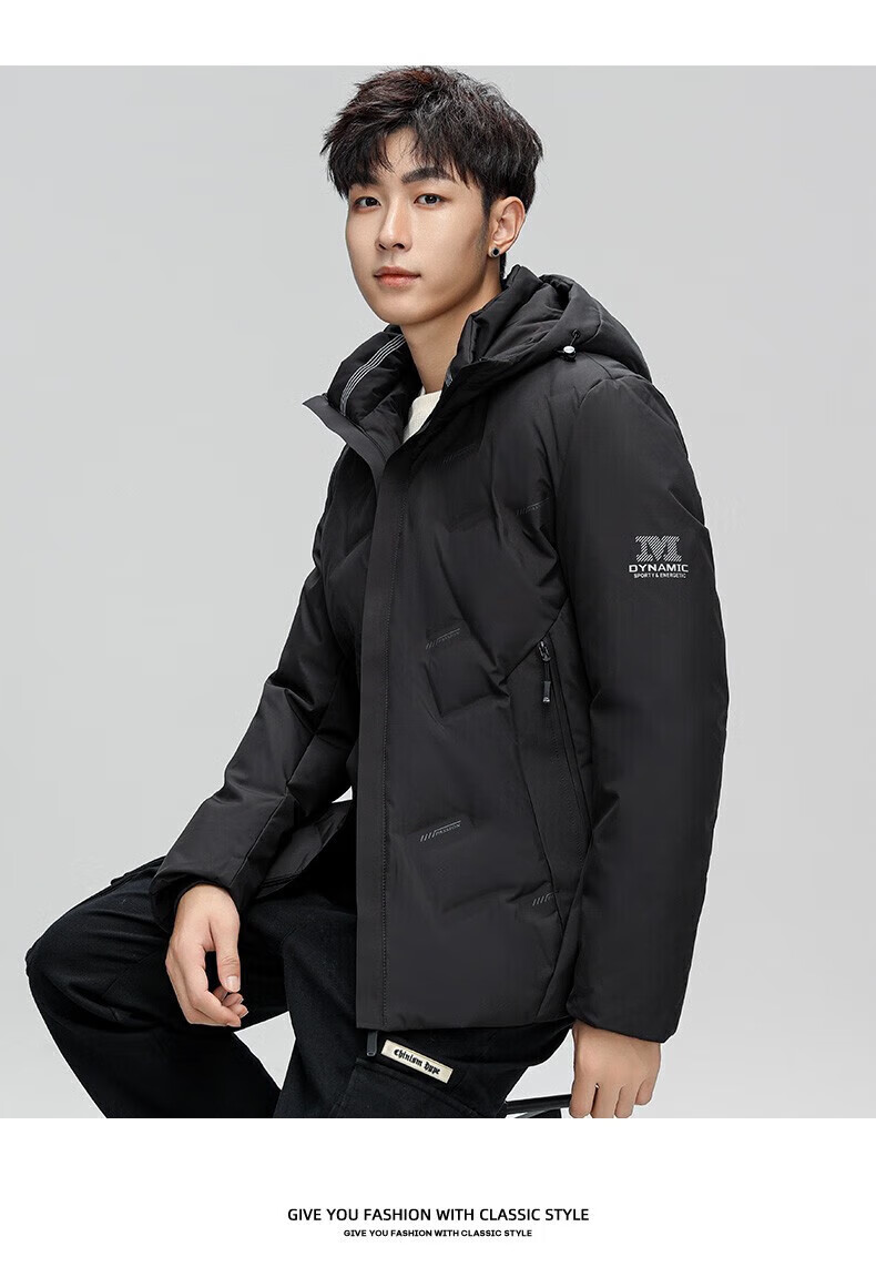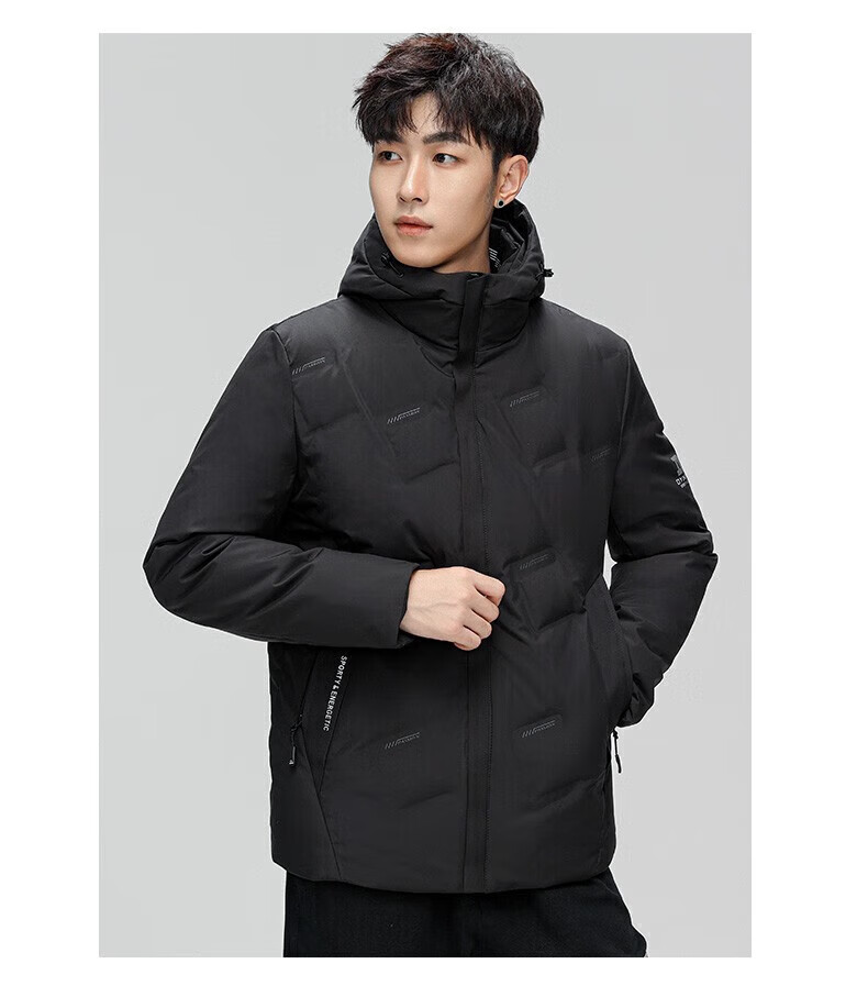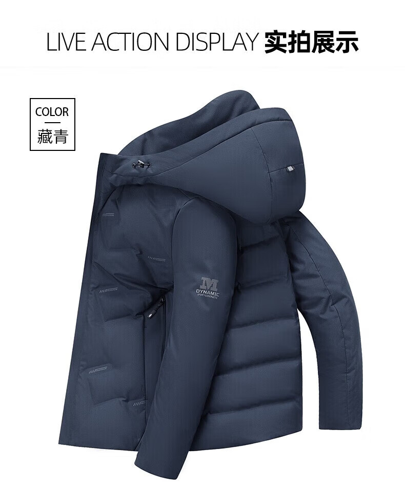 鸭鸭(YAYA)羽绒服男短款连帽立领厚款保暖青年冬季新年工装外套 藏青 2XL 185 (建议140-155斤)