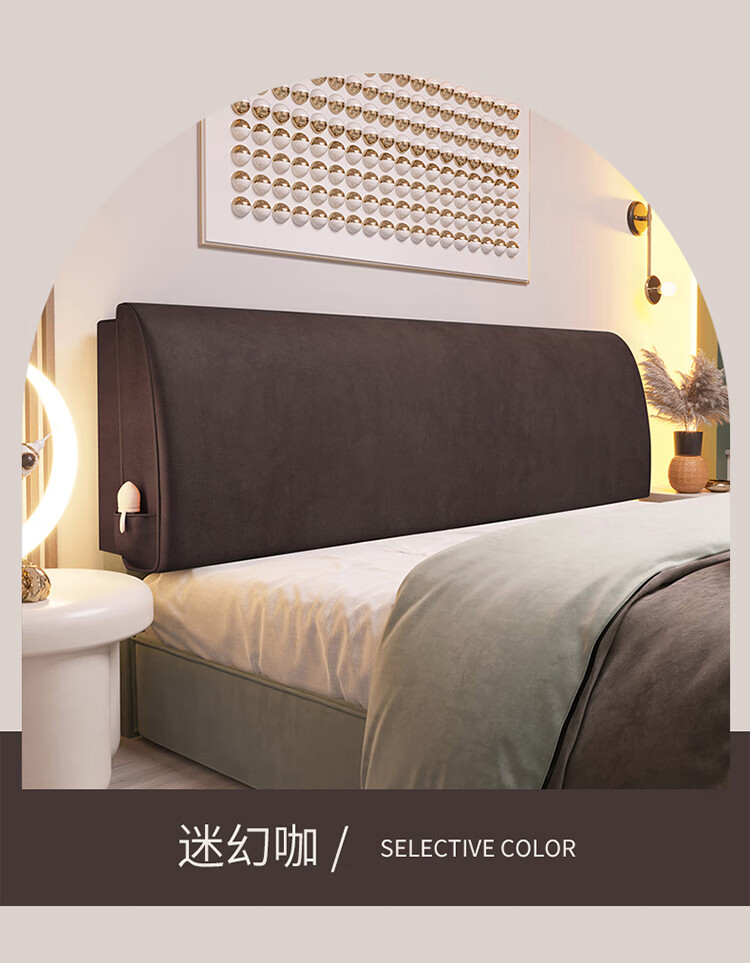 眷耐科技布床头靠垫软包高档床上自粘弧形大靠背榻榻米无床头靠枕免洗 迷幻咖 1cm*1cm*1cm 含枕芯 有无床头备注