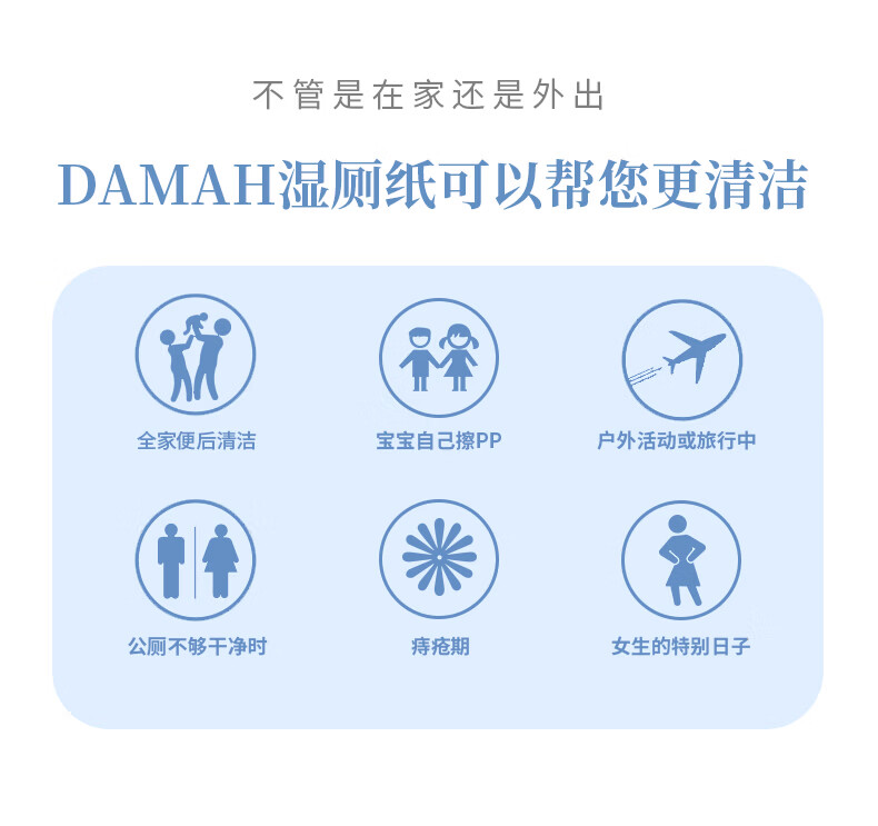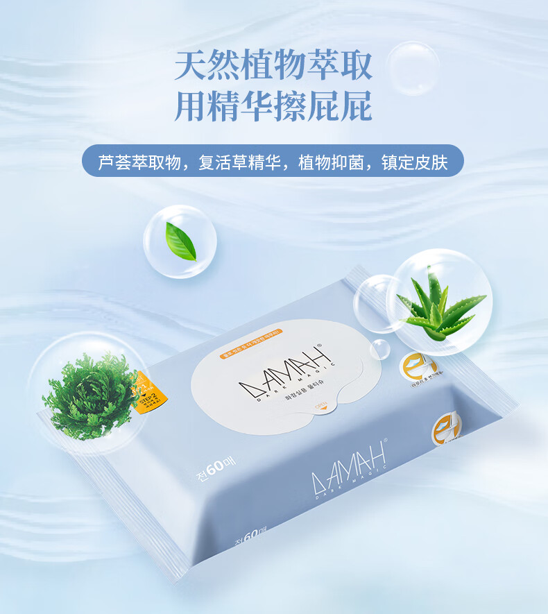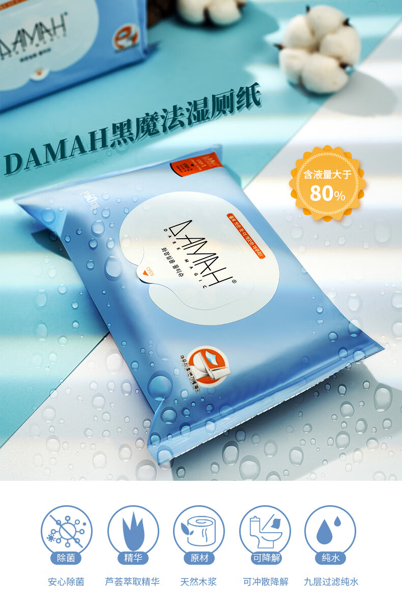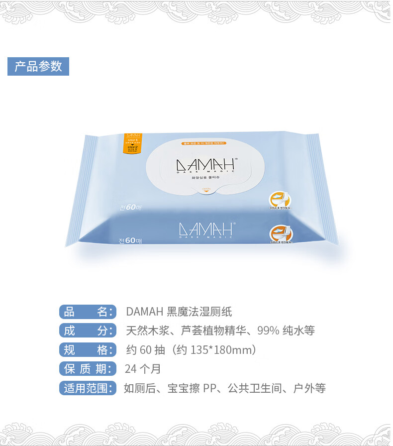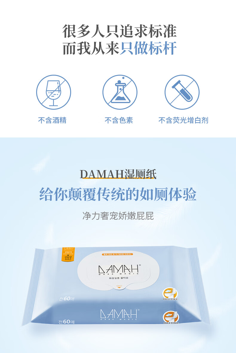 DAMAH DARK MAGIC孕妈妈可用便携装湿厕纸洁厕湿巾湿纸巾 60抽*3包湿厕纸