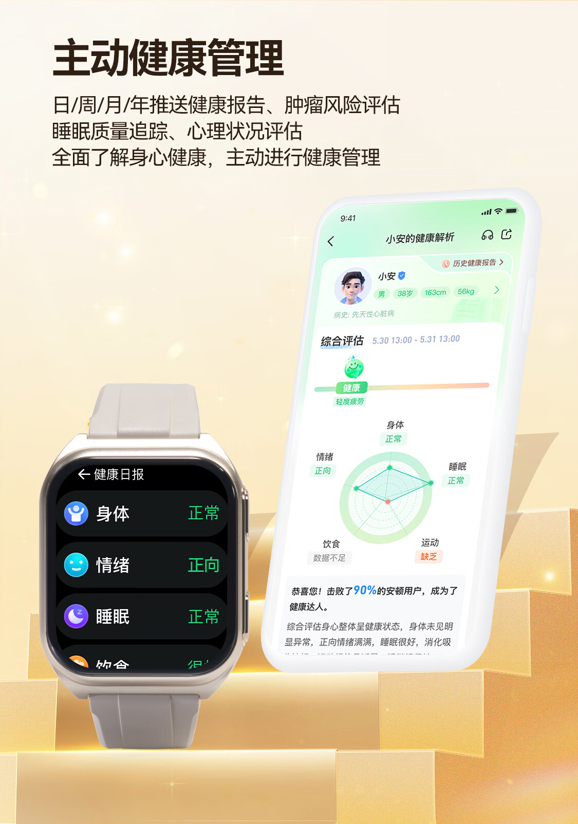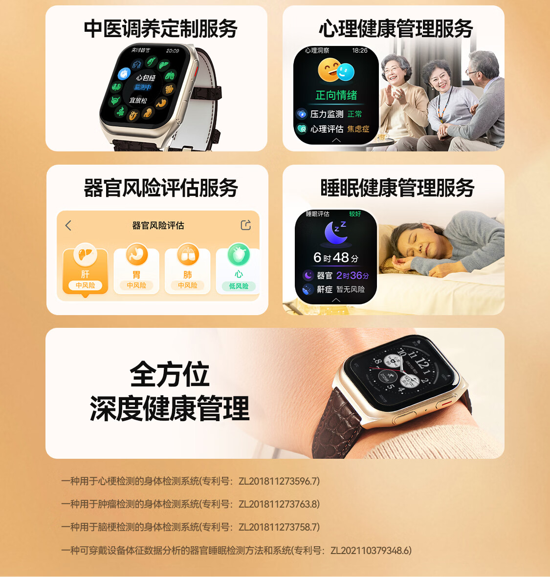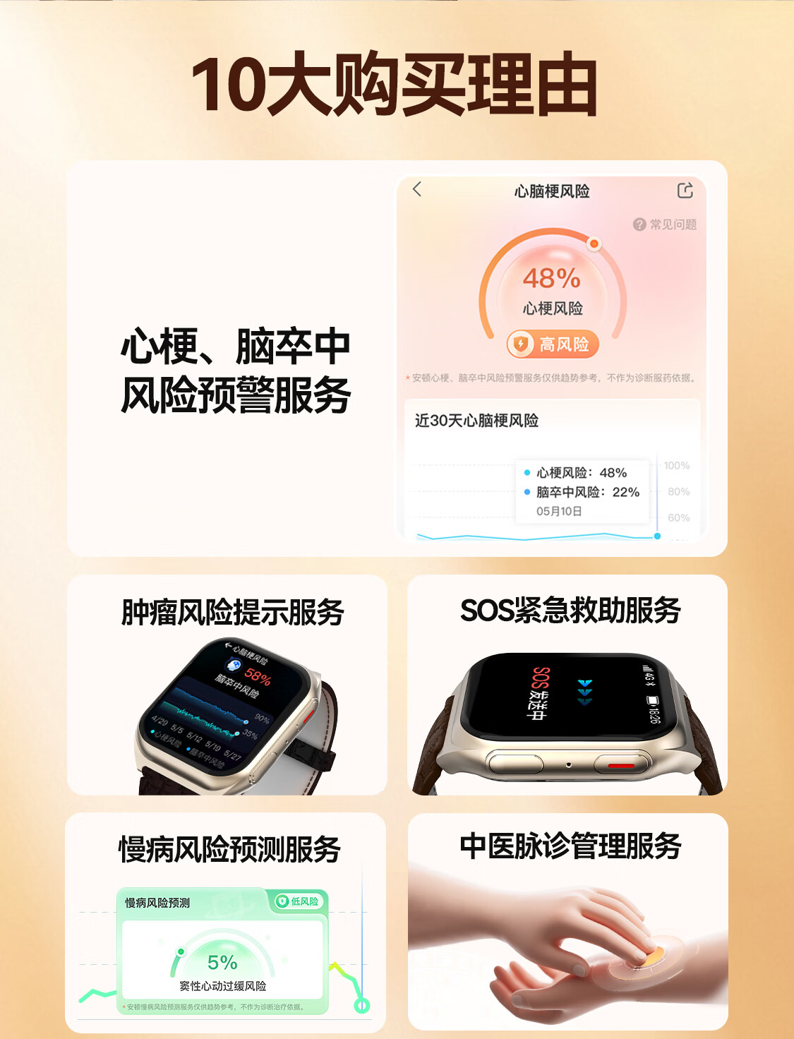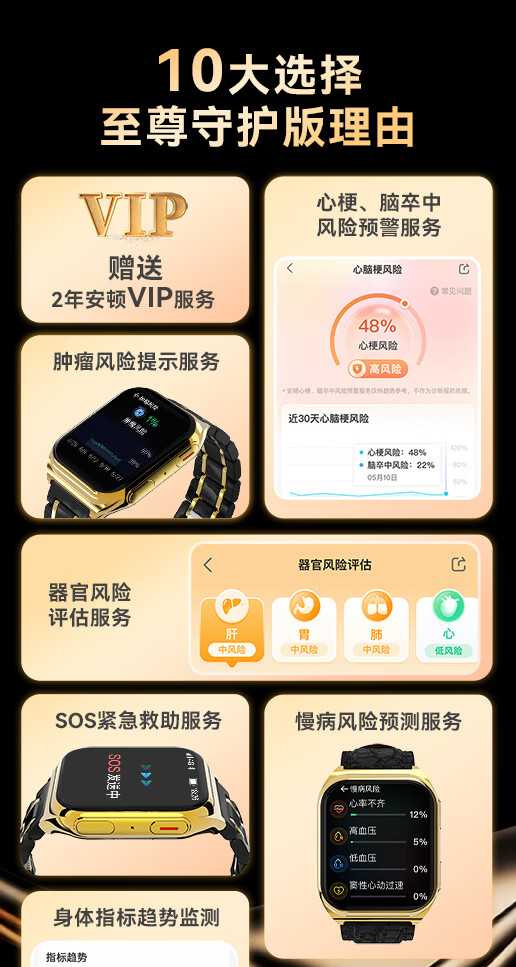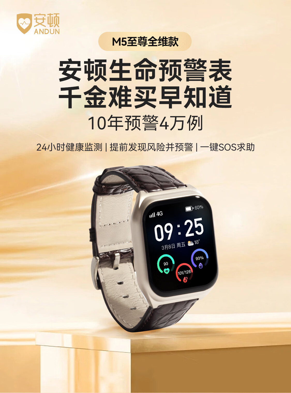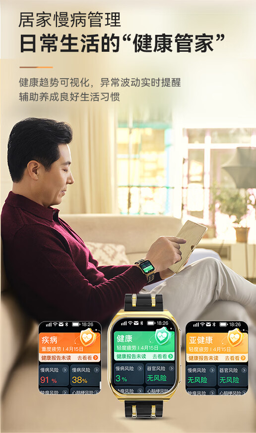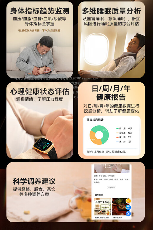 安顿智能手表手环血压血糖趋势监测手表心率血氧血脂心梗脑卒中预警手表送礼父母长辈节日礼物M5 【新年礼盒款】全维版-女款