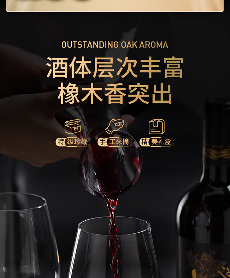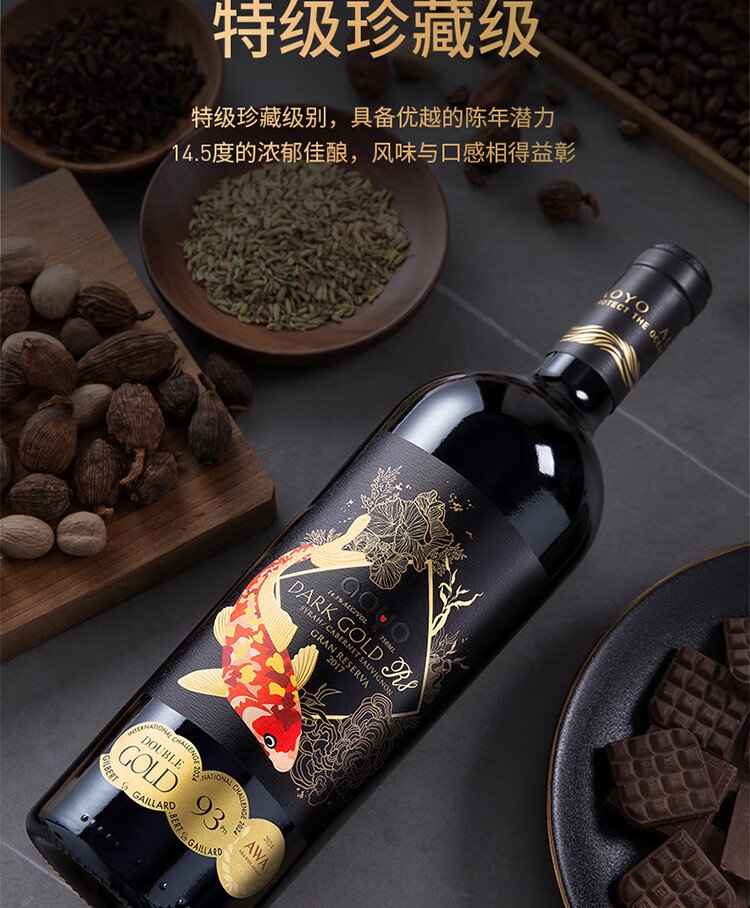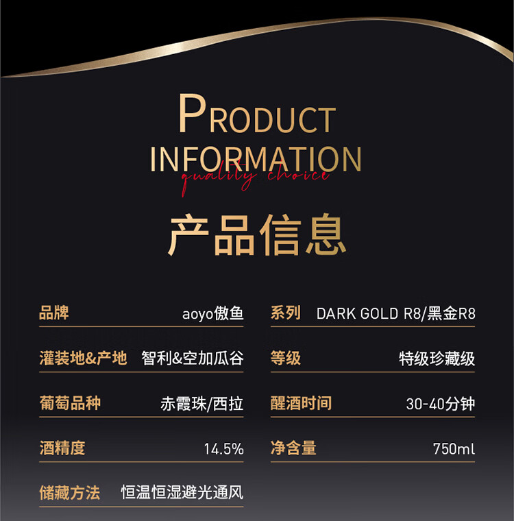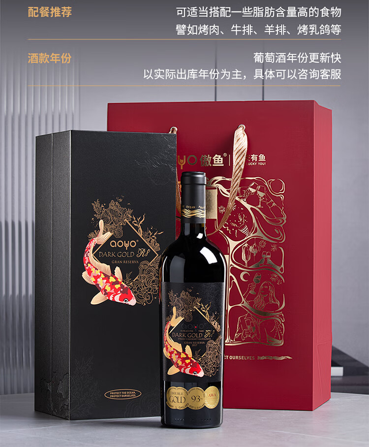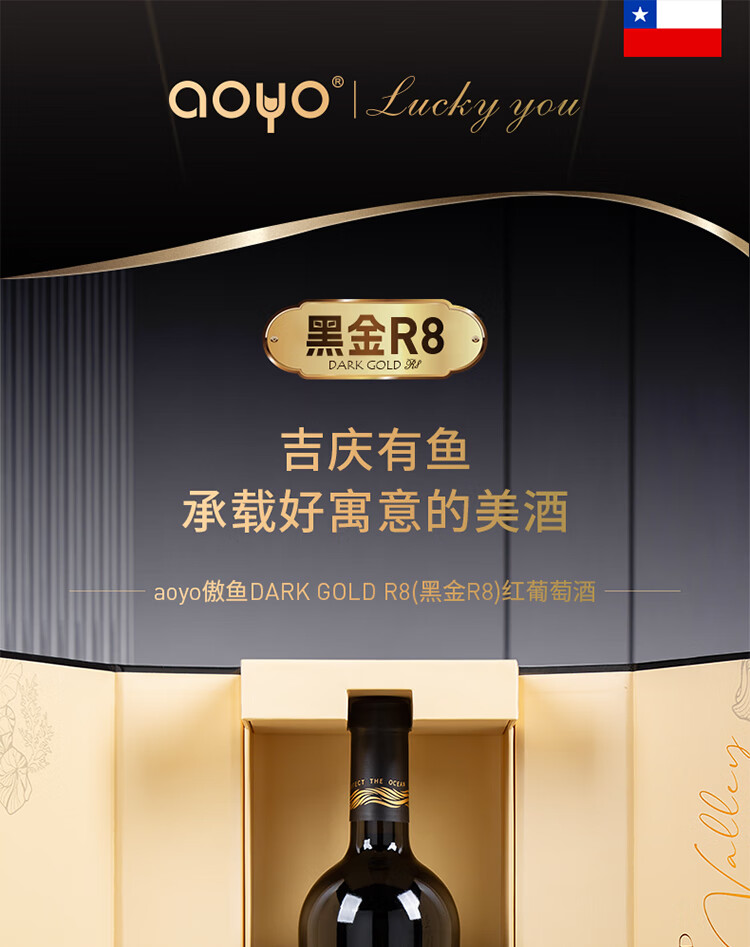 傲鱼黑金R8赤霞珠西拉智利原瓶原装进口高端干红葡萄酒14.5度节日送礼 750ml*6瓶