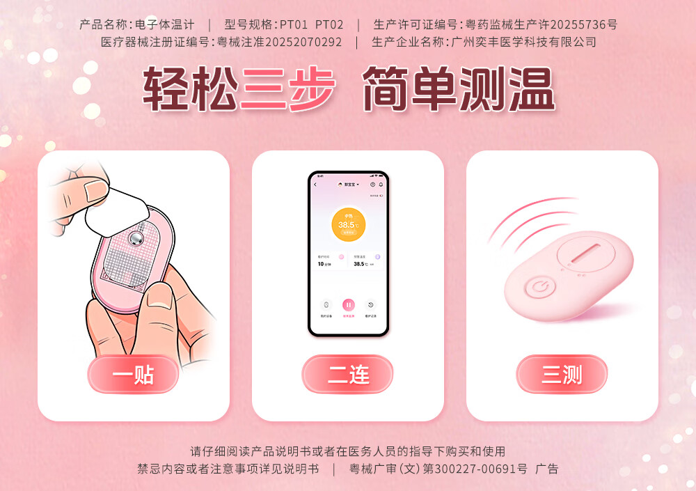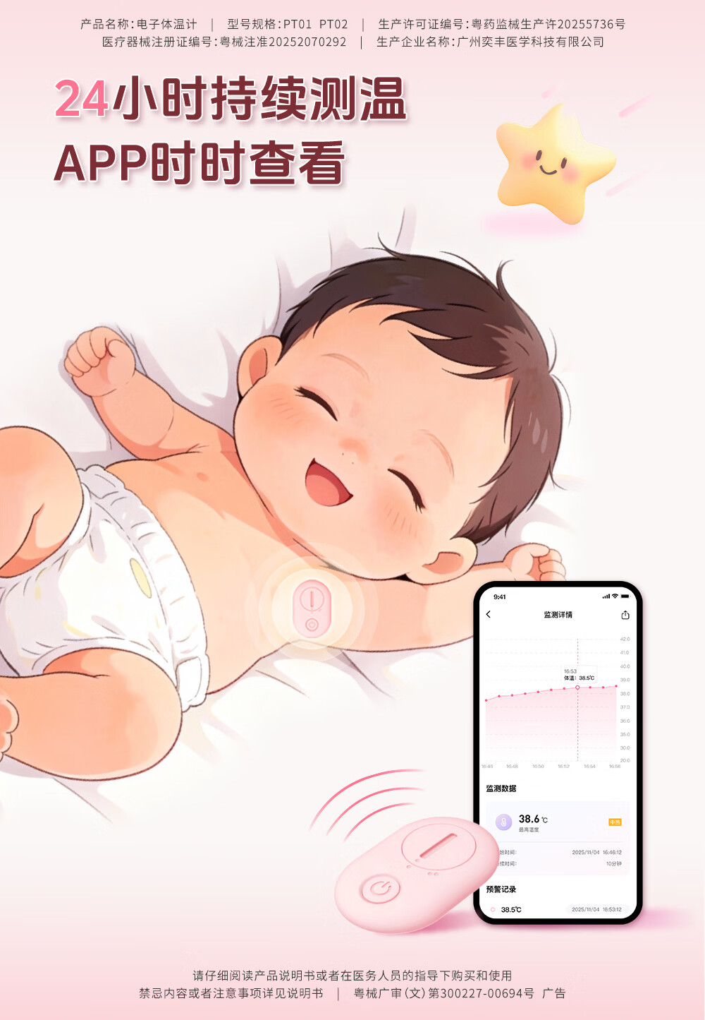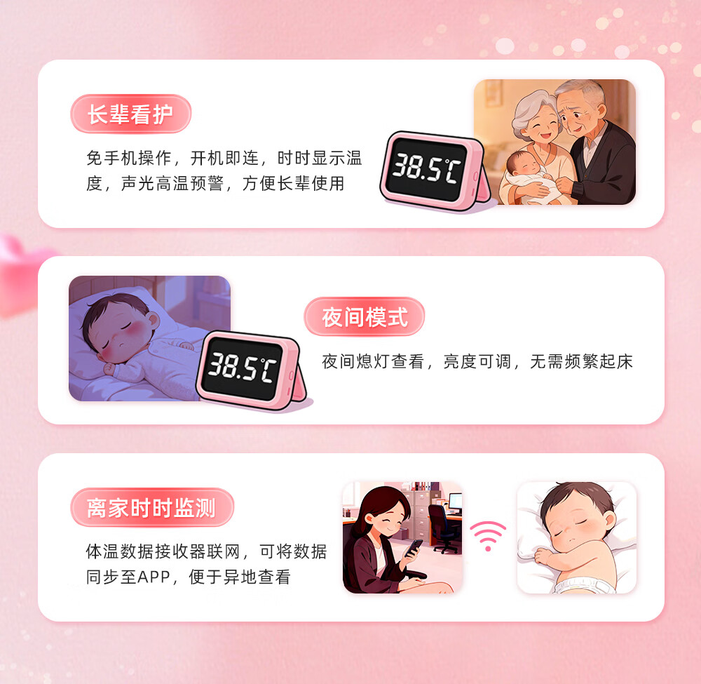 姗宝电子体温计 婴幼儿发烧智能电子测温贴医用级家用实时远程监测 【姗宝电子体温计+体温数据接收器】【远程体温监测】