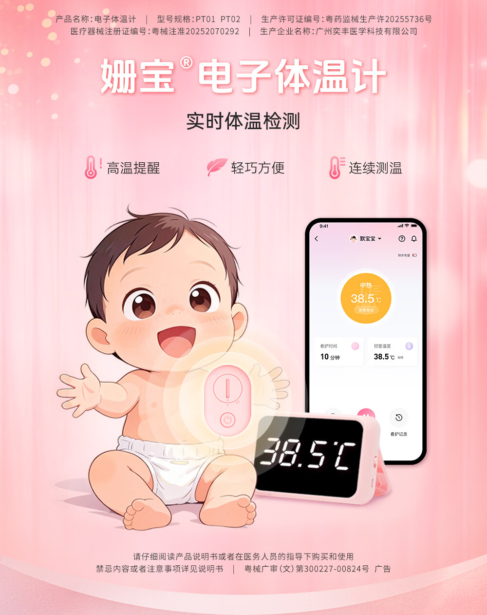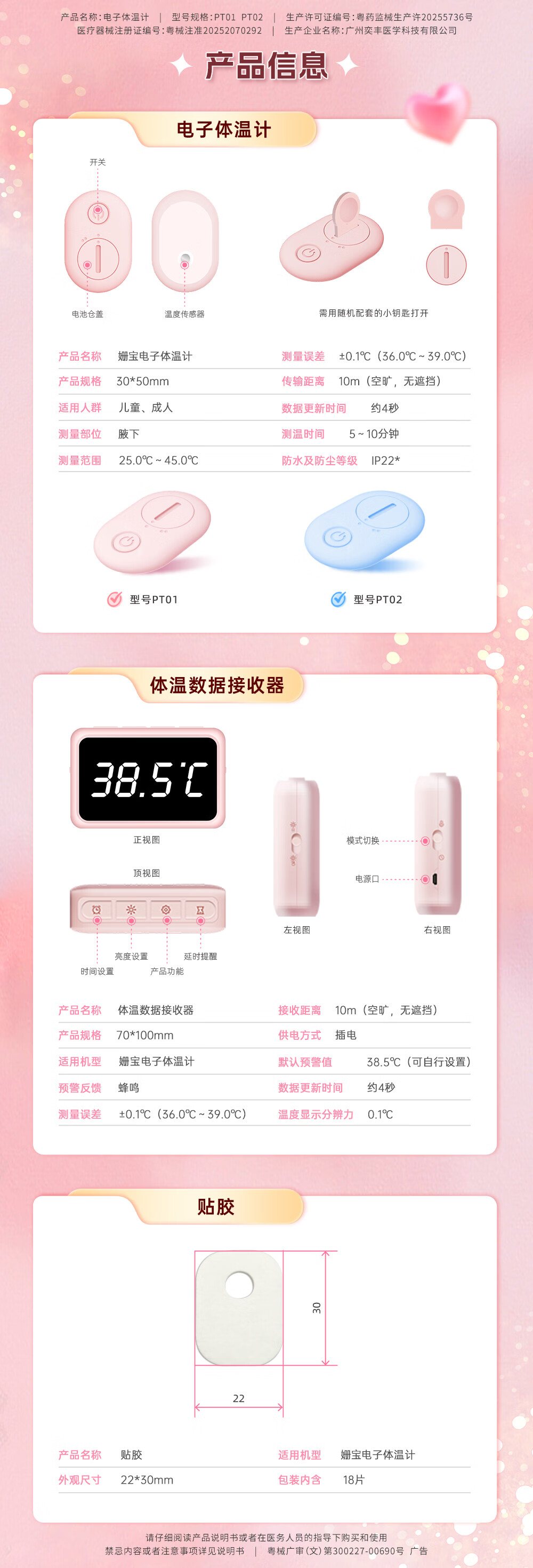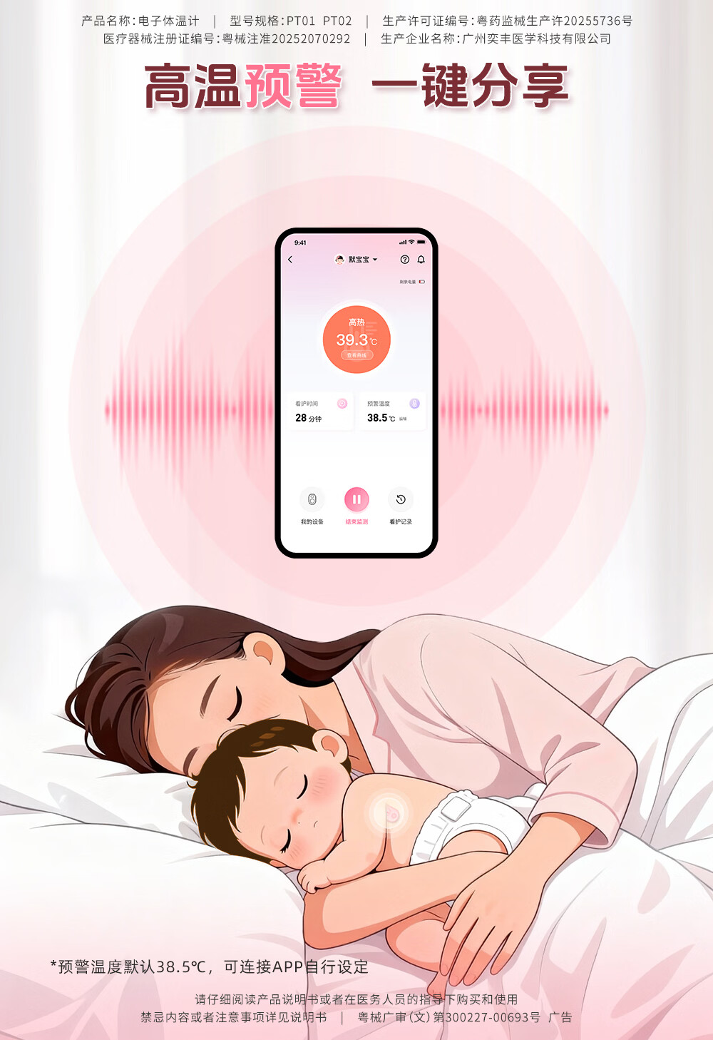 姗宝电子体温计 婴幼儿发烧智能电子测温贴医用级家用实时远程监测 【姗宝电子体温计+体温数据接收器】【远程体温监测】