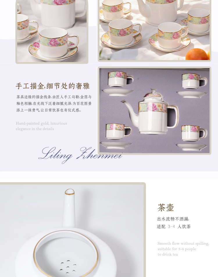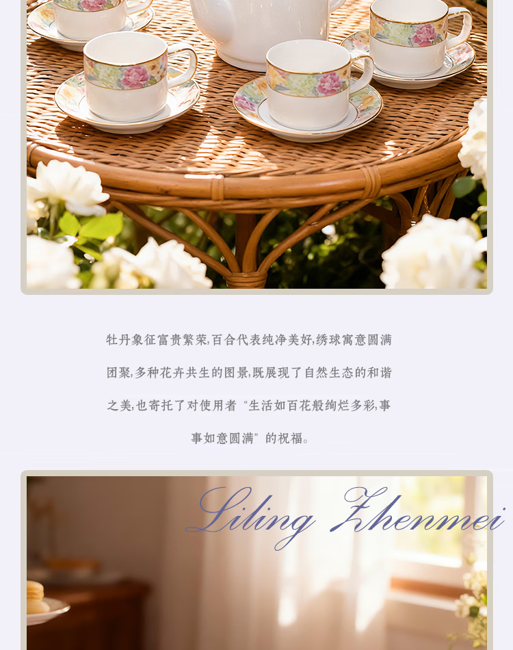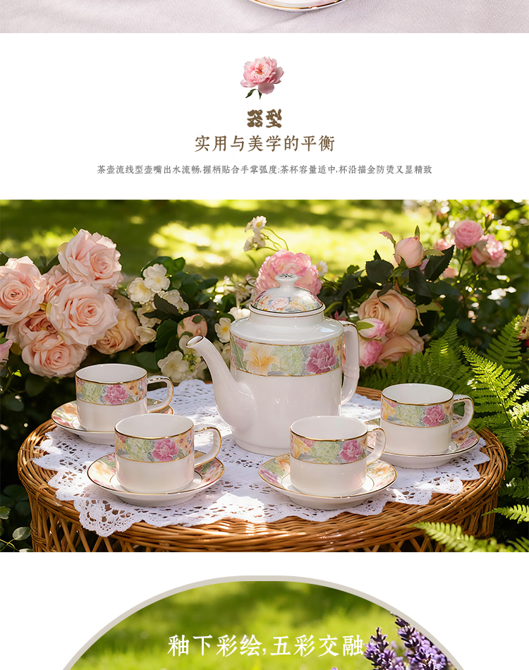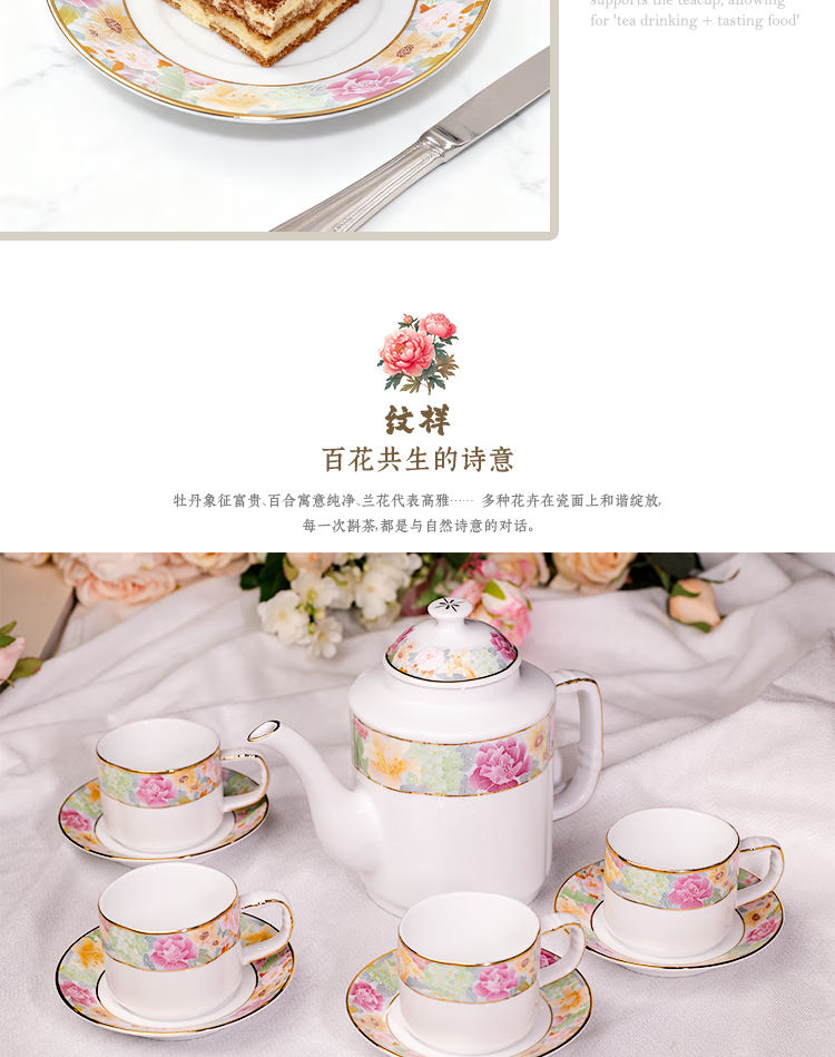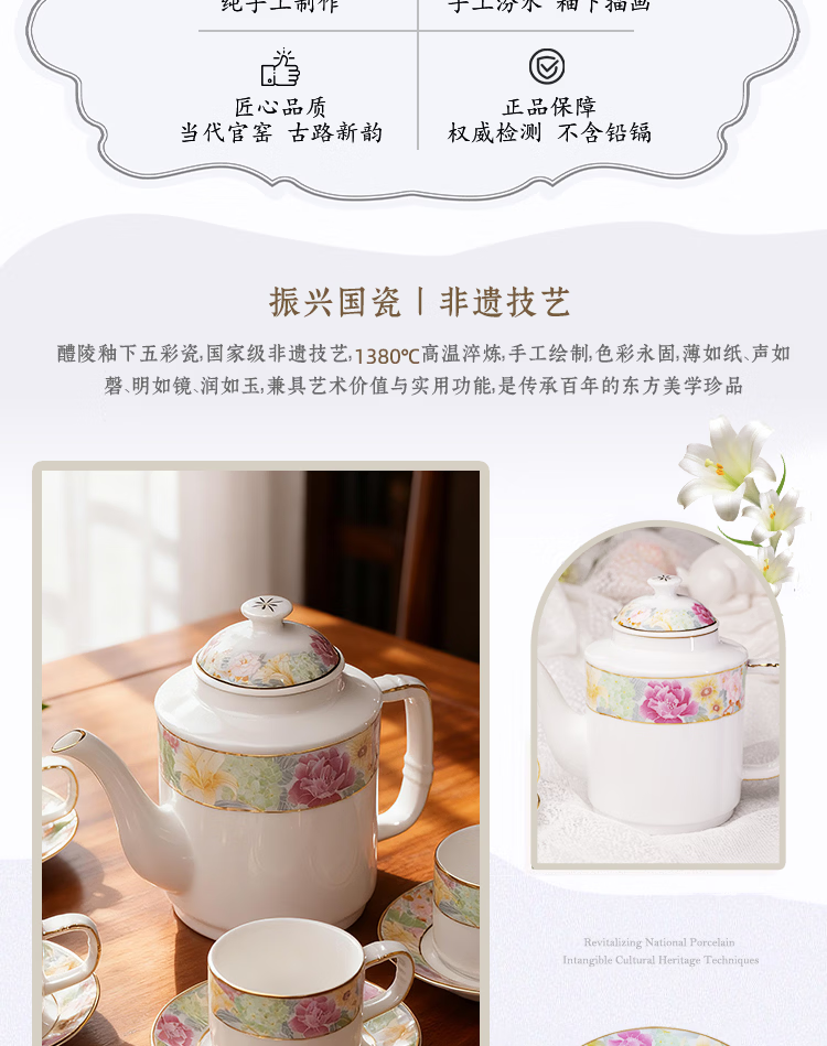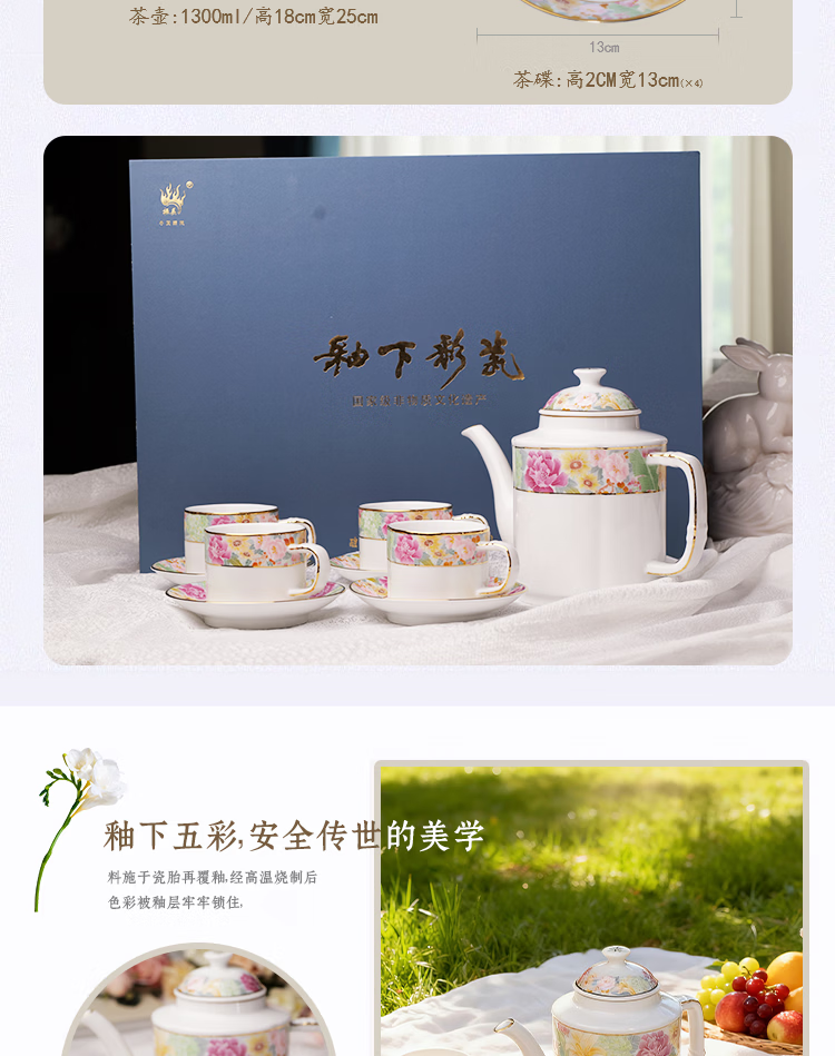 振美如意系列百花齐放茶具 国瓷套装家用陶瓷 新中式茶壶茶杯整套礼物 百花齐放茶具套装