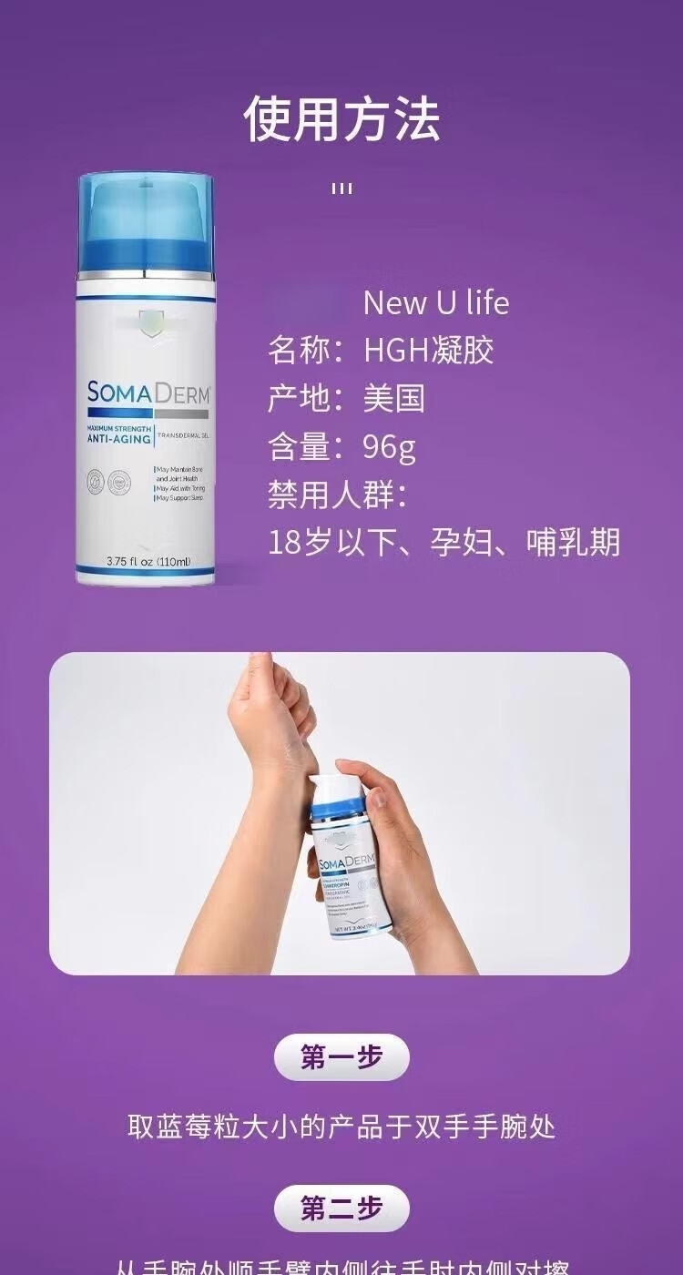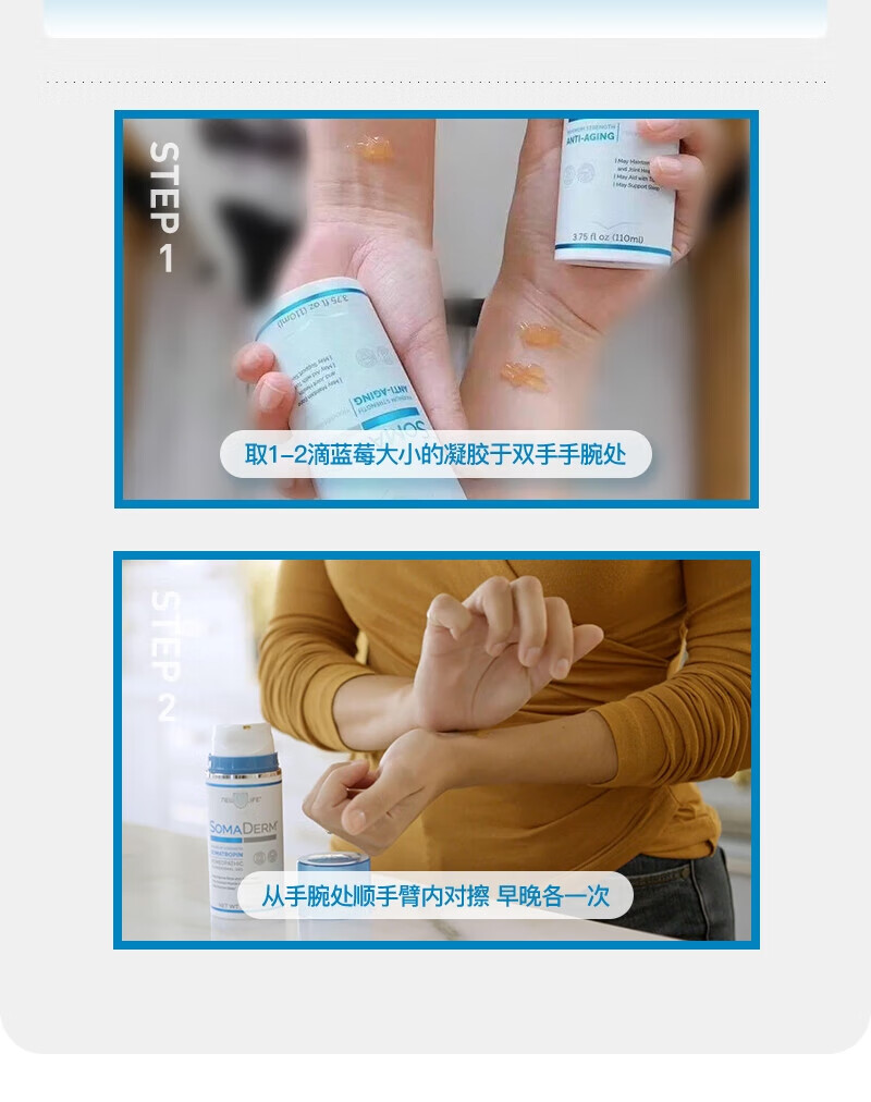 SOMADERM新生命凝胶美国小蓝瓶原装正品hgh荷尔蒙生长素保湿凝胶睡眠抑衰 小绿瓶2.5g散装*1片【试用验真】