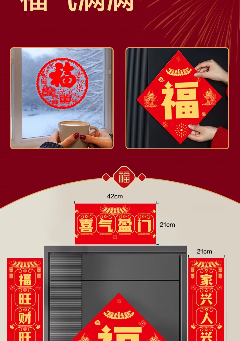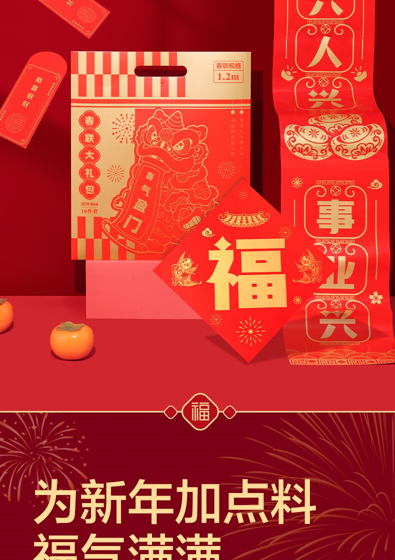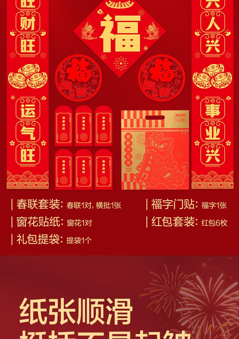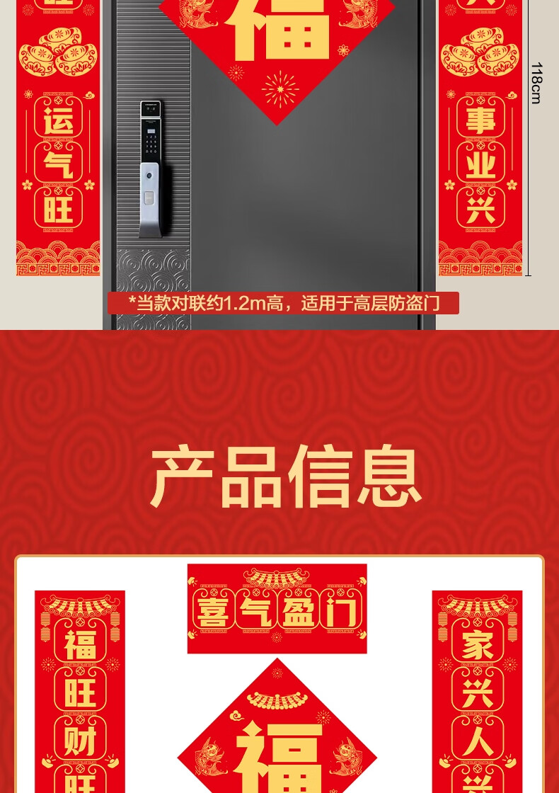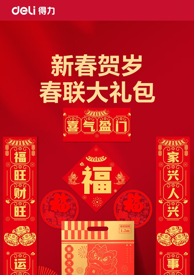 得力(deli)对联大礼包2026马年春节装饰品套装 春节家用过年大门春联福字斗方红包窗花年货-1.2米 喜气盈门