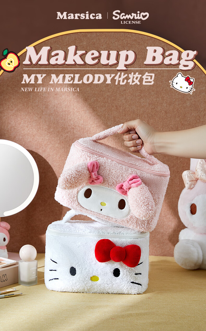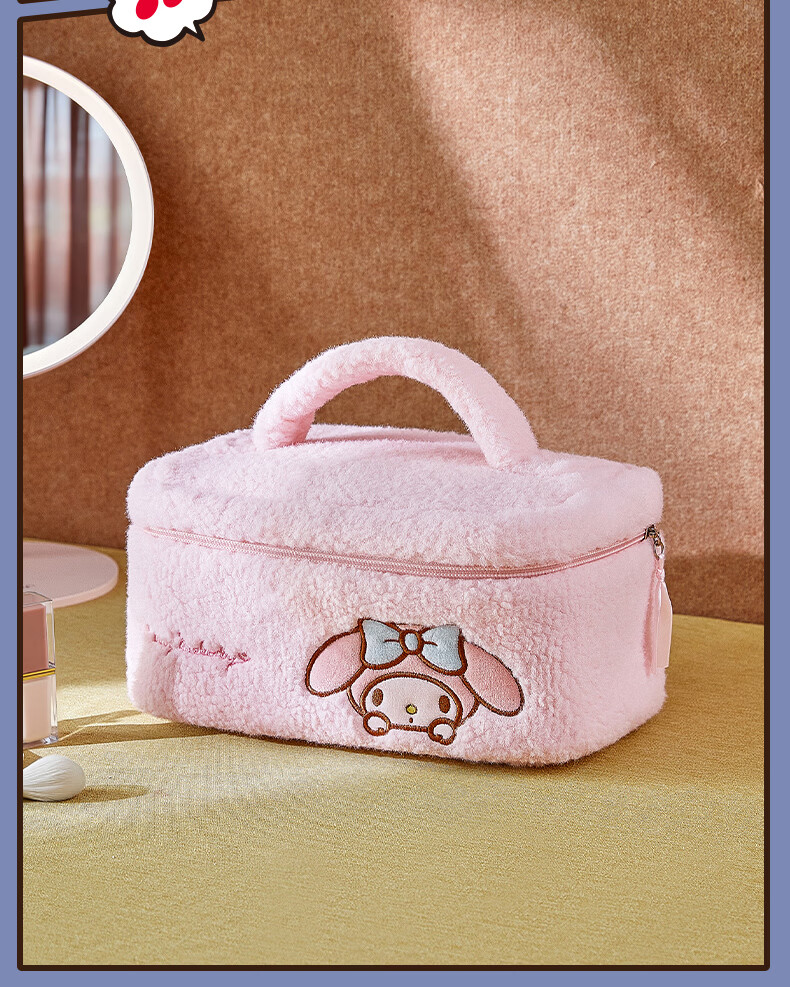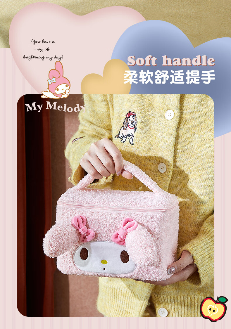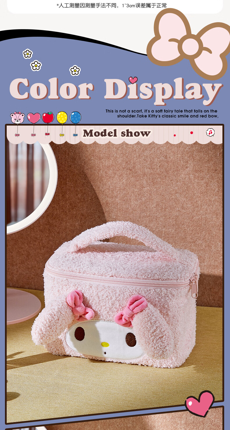 MARSICA三丽鸥毛绒化妆包女生旅行便携收纳包大容量手提收纳袋2025新款 【官方正版 加大容量】毛绒绒化妆包-美乐蒂
