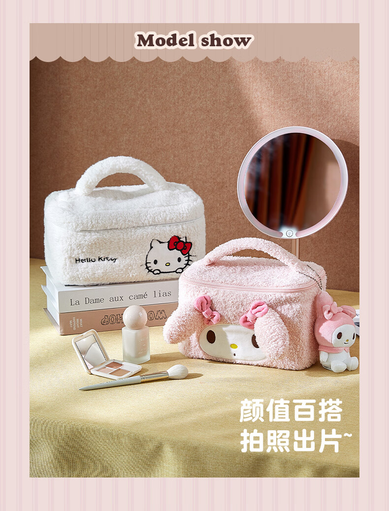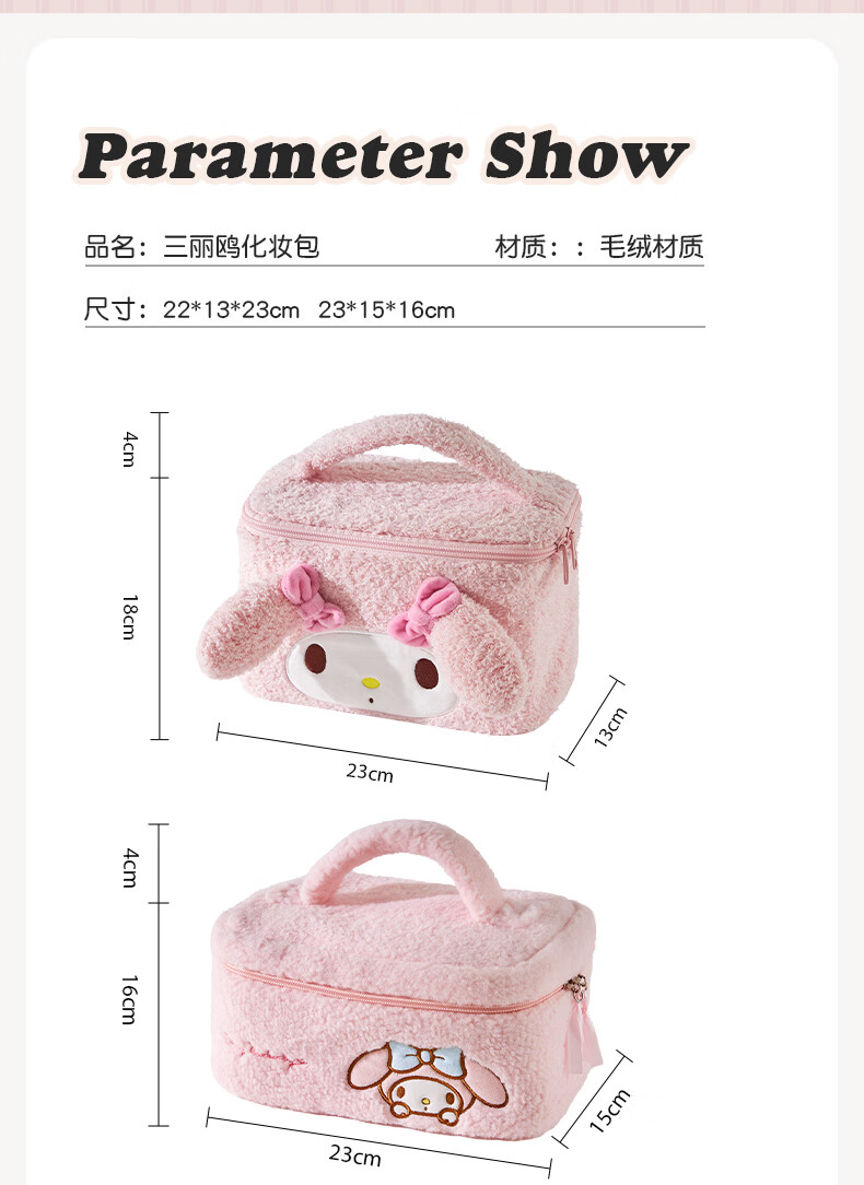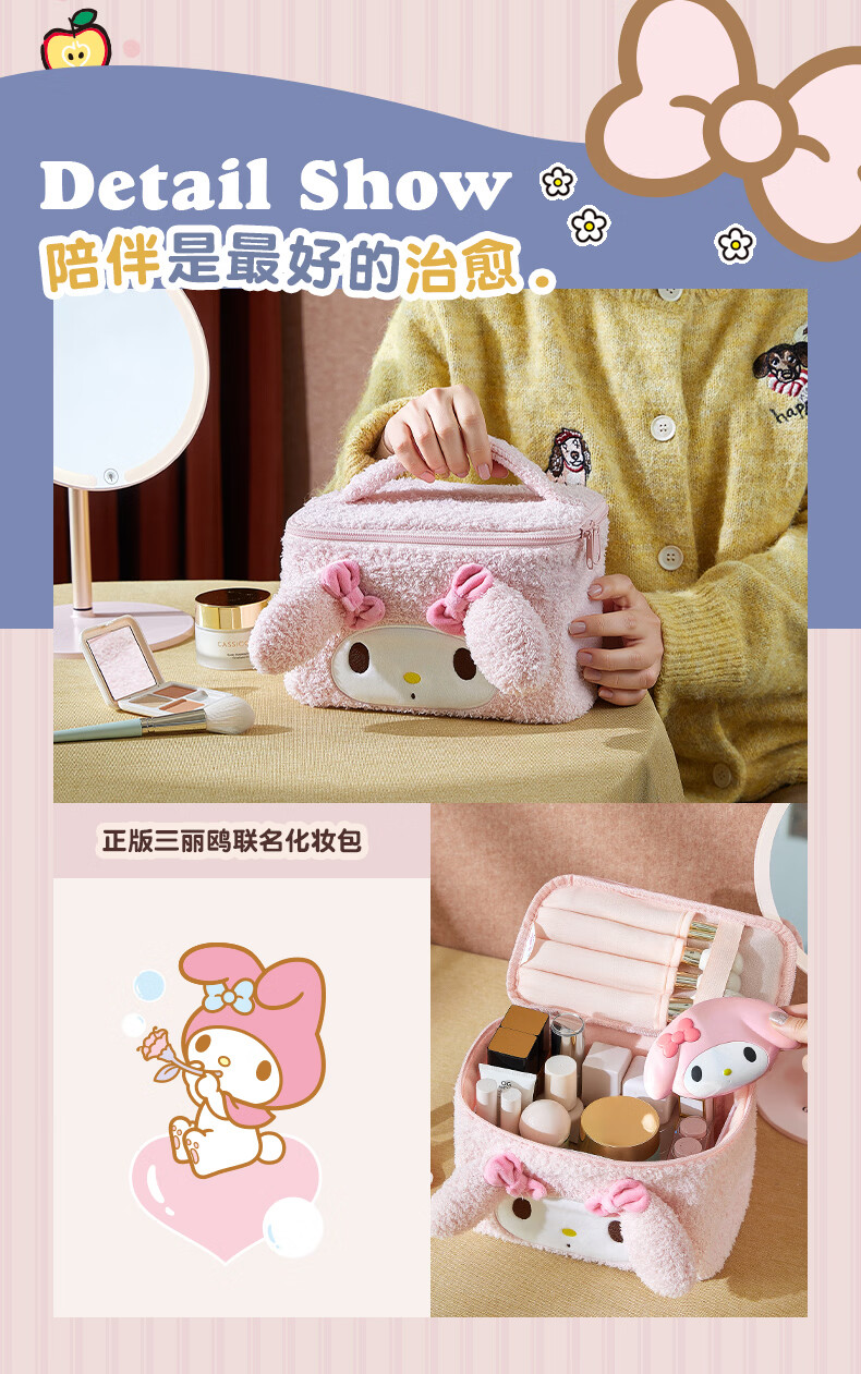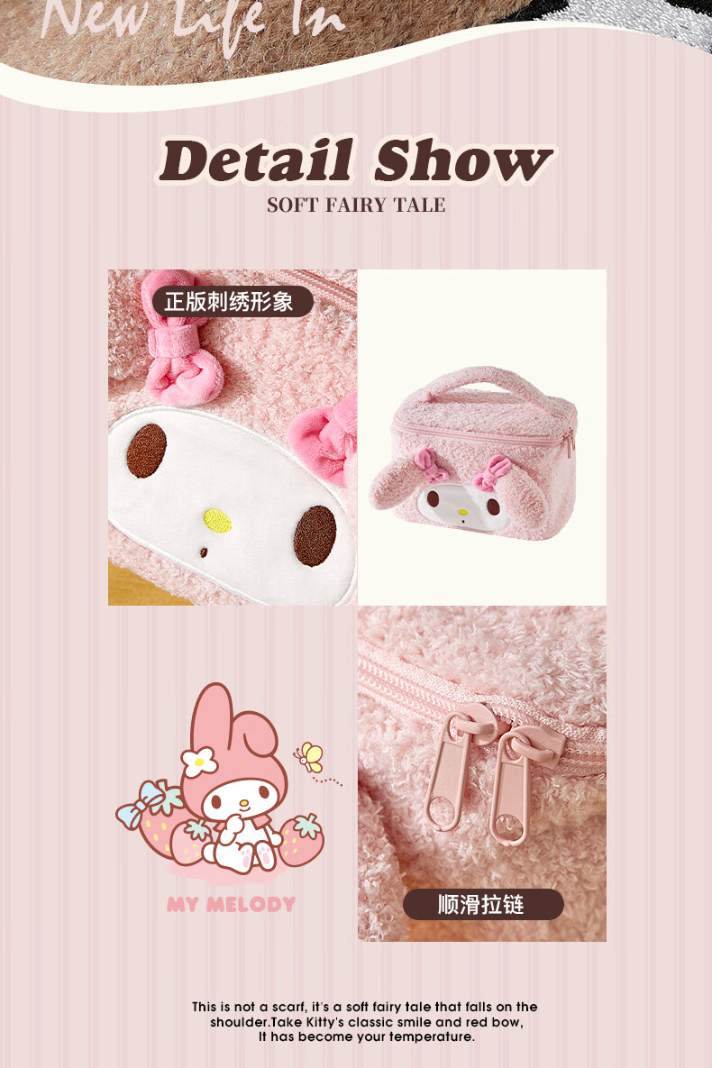MARSICA三丽鸥毛绒化妆包女生旅行便携收纳包大容量手提收纳袋2025新款 【官方正版 加大容量】毛绒绒化妆包-美乐蒂