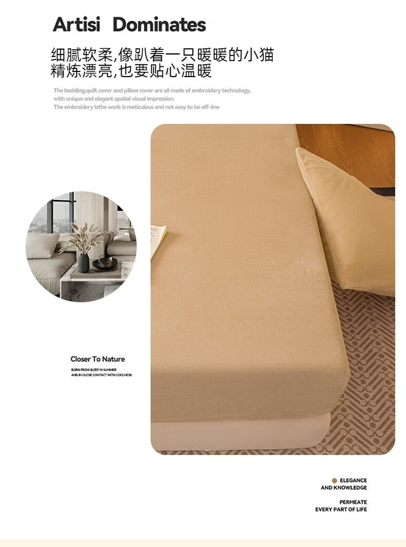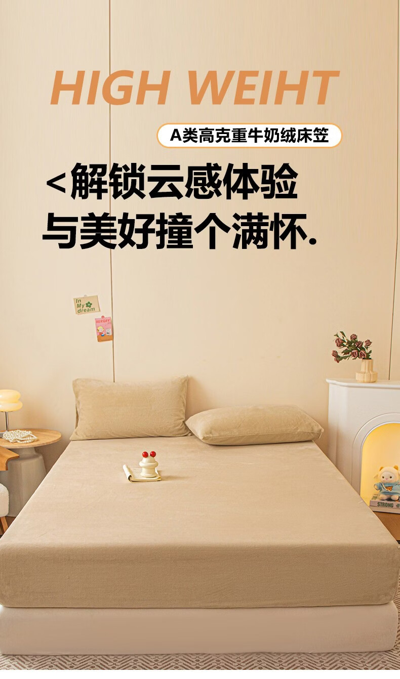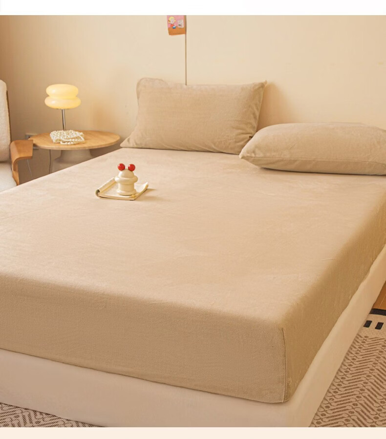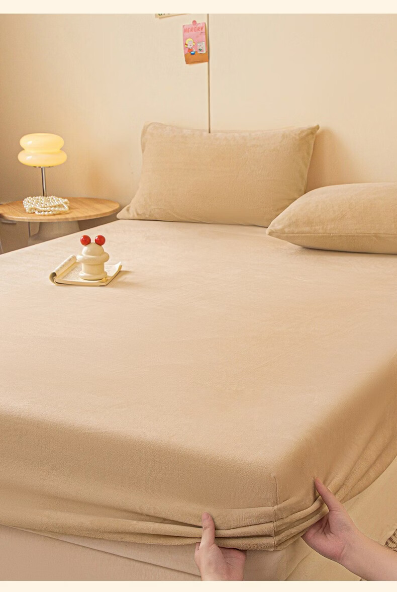 红蜻蜓(RED DRAGONFLY)牛奶绒床笠1.8x2米床垫保护套家用单双人加厚加绒全包床套罩 卡其【加厚保暖 触感细腻】 180x200cm【单床笠】