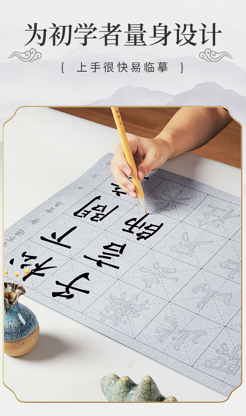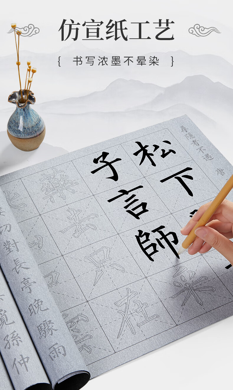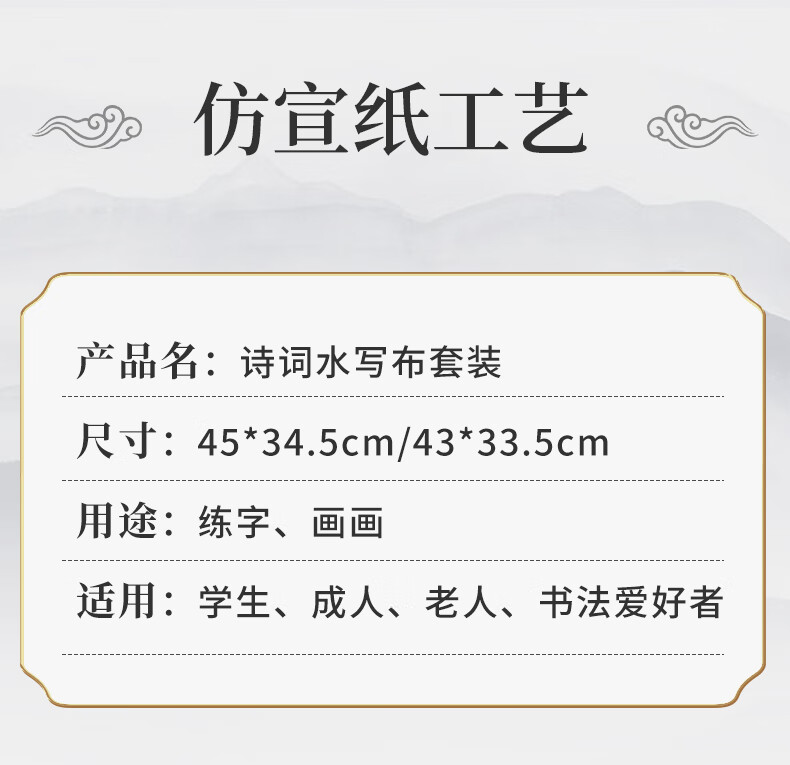 六品堂 毛笔水写布 练字书法纸套装字帖初学者练习临摹文房第五宝用品万次加厚仿宣米字格18件套热门商品