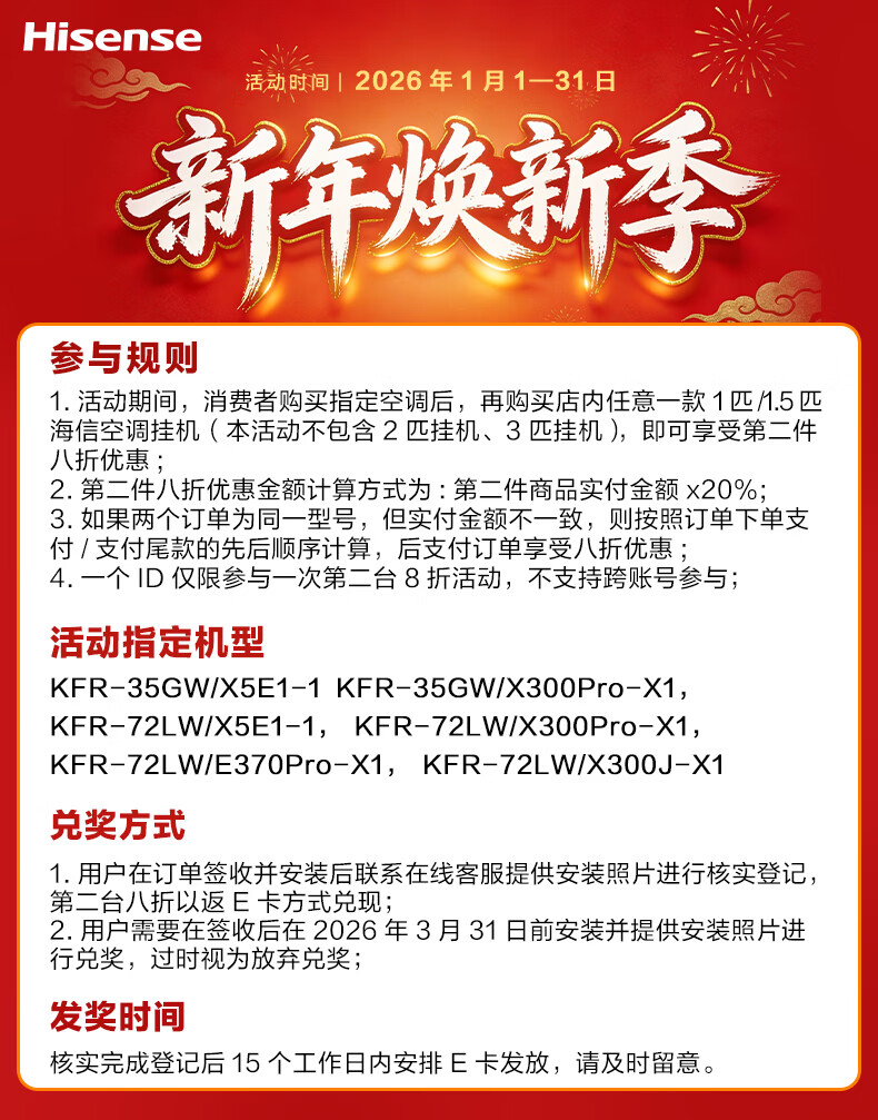 海信新风空调深睡宝X3Pro 大1.5匹 增氧新风 AI省电 双排铜管 1级能效挂机KFR-35GW/X300Pro-X1