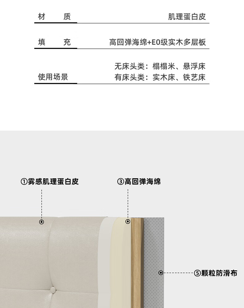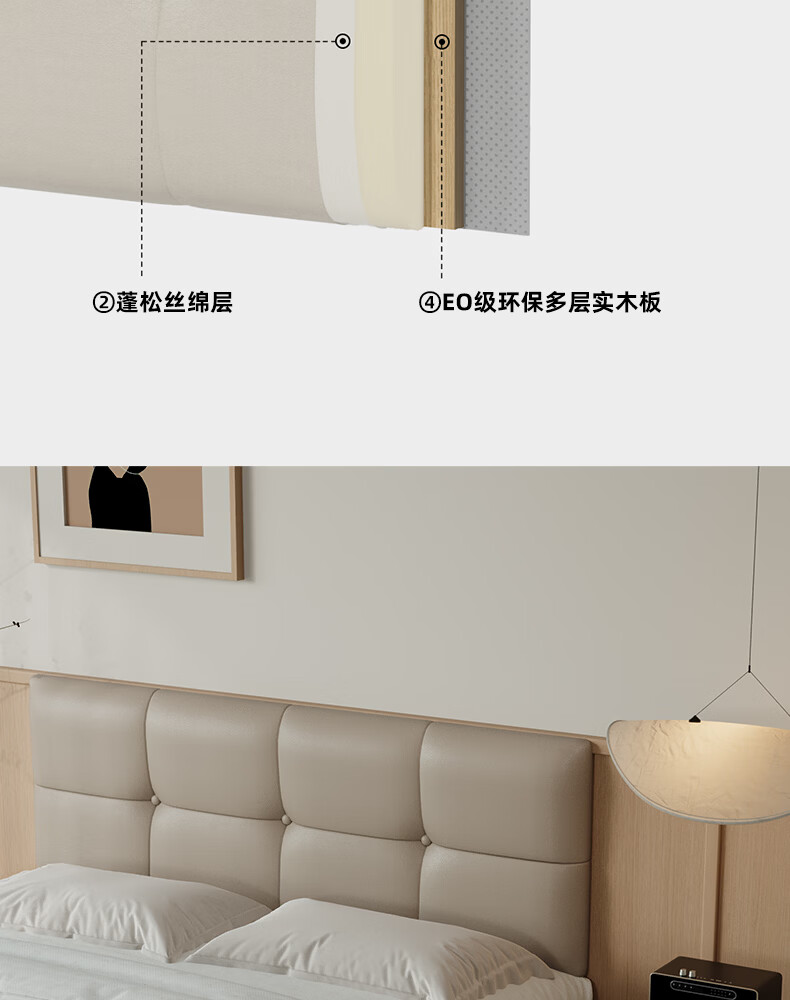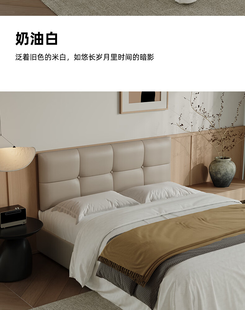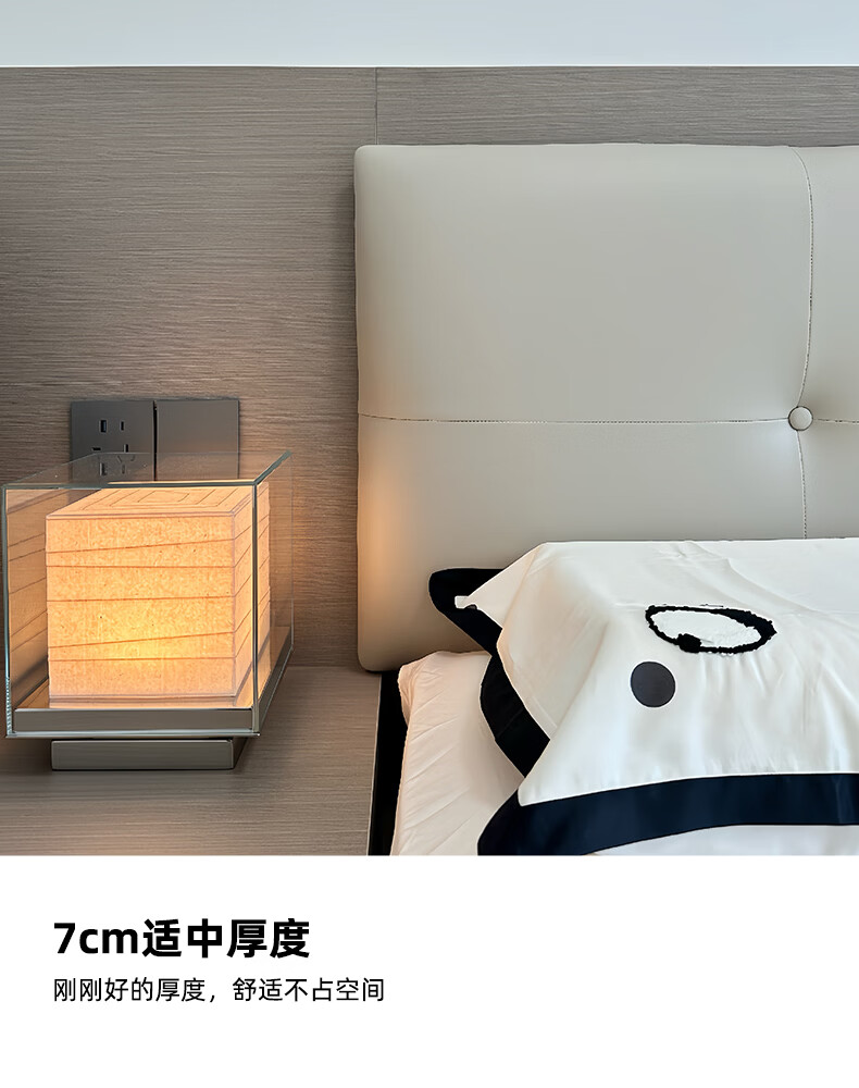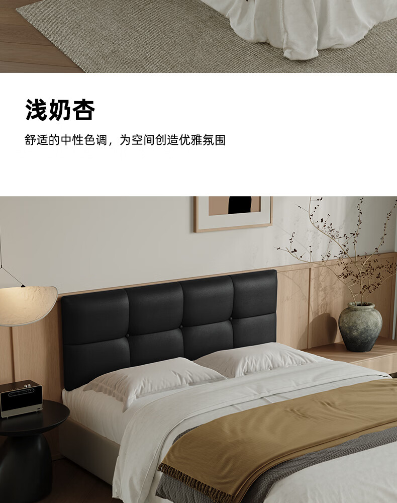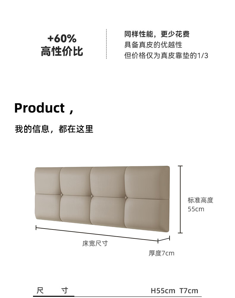 之于间薄款床头靠垫榻榻米墙围防撞悬浮床床围免洗无床头软包靠背垫皮质 浅奶杏 120cm*55cm*7cm 含枕芯 无床头