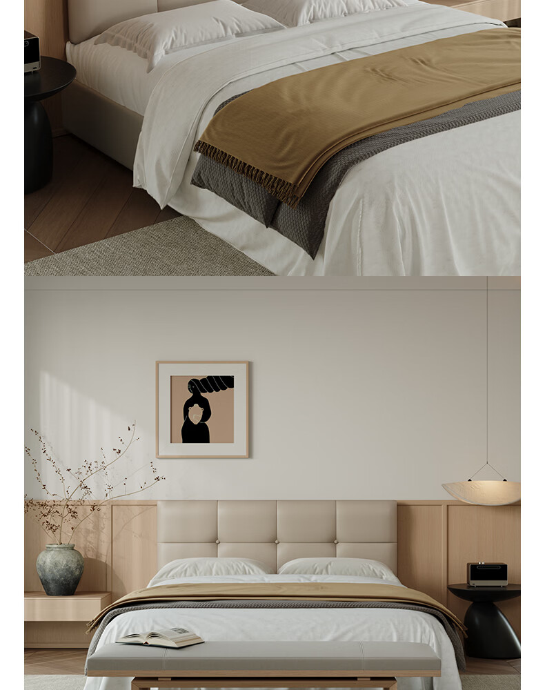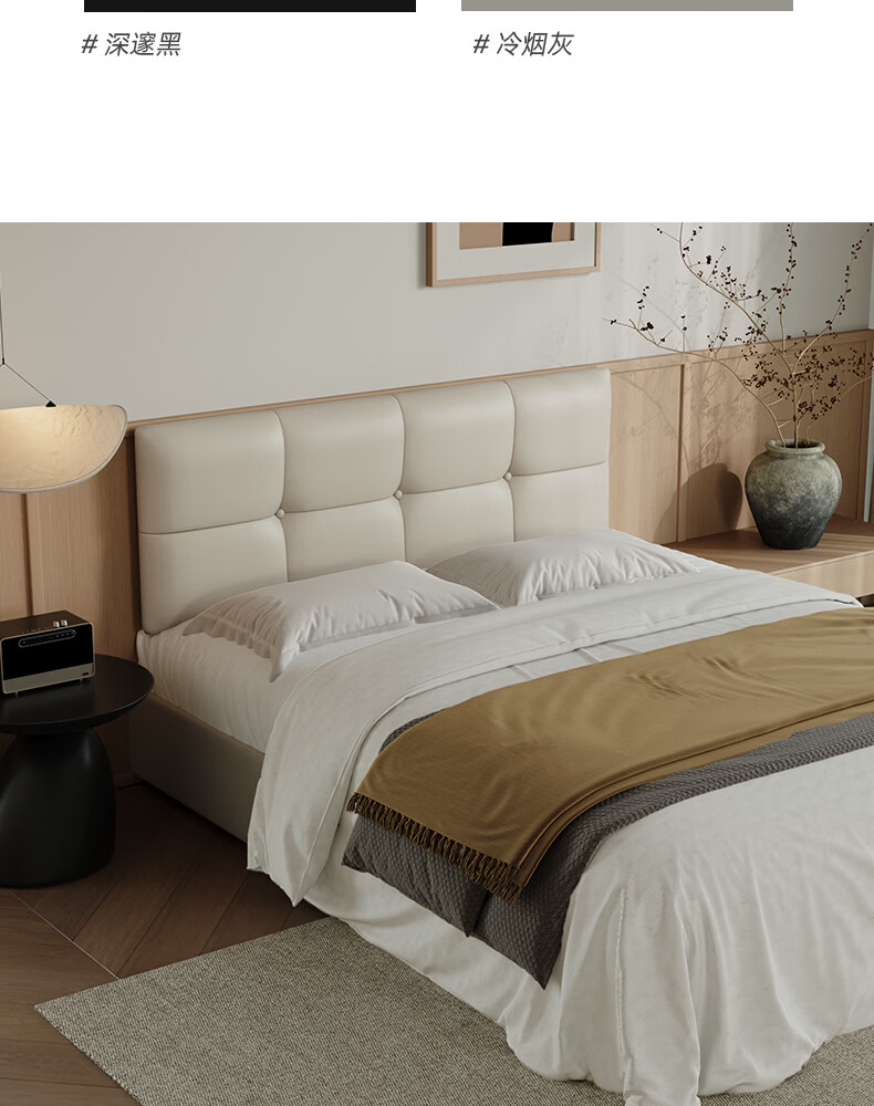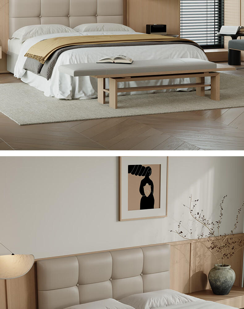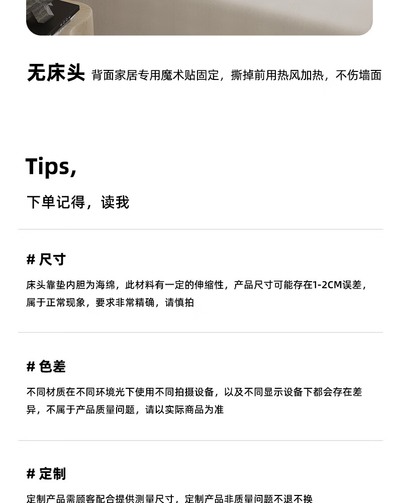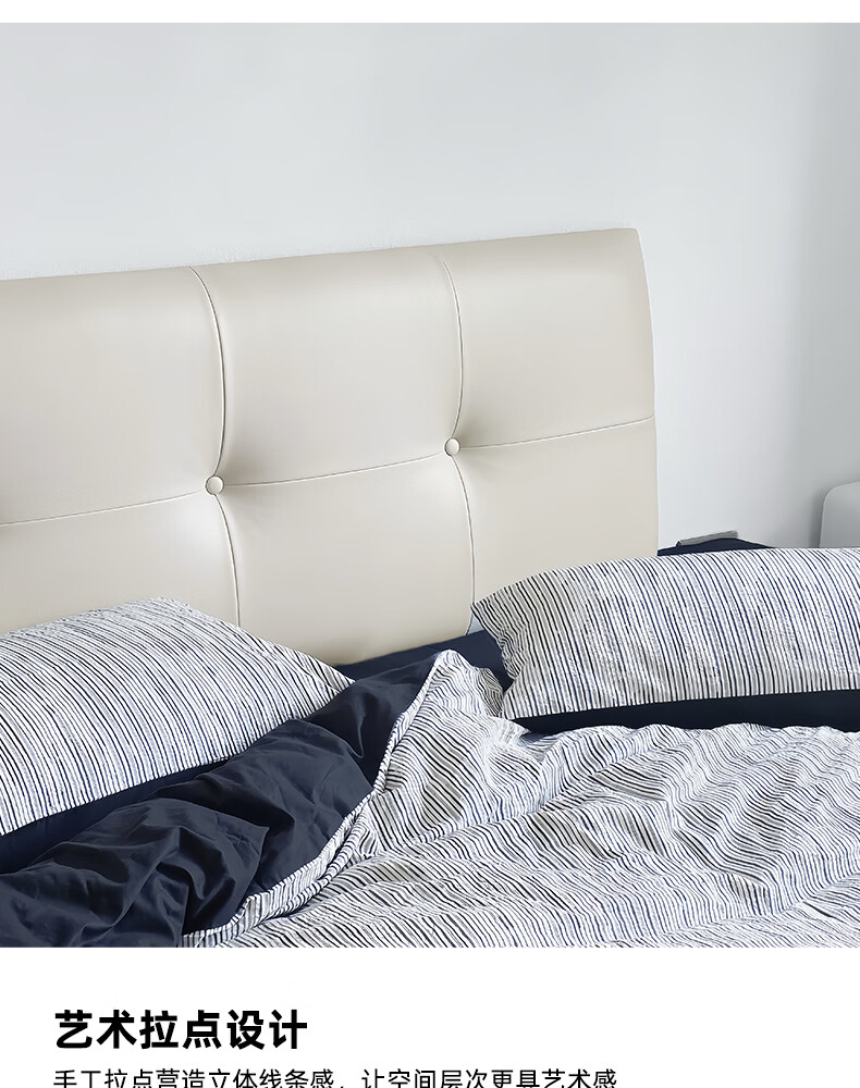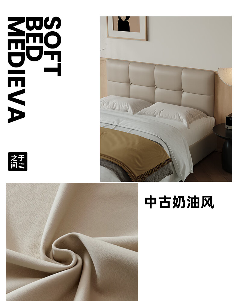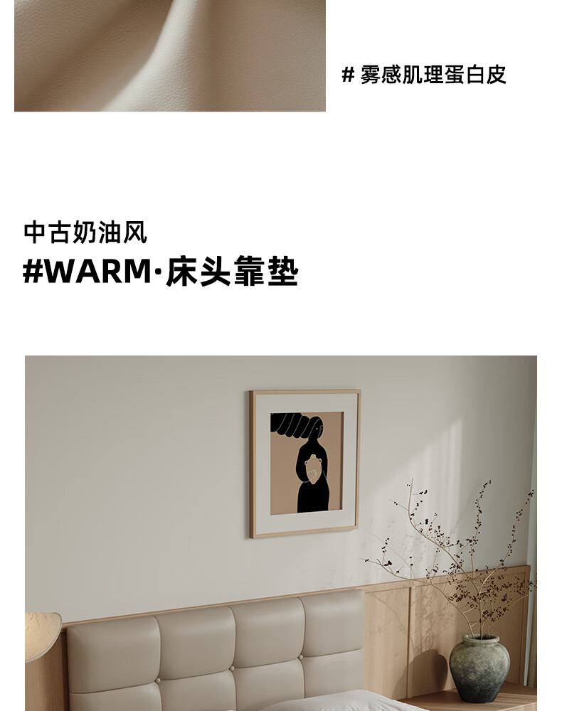 之于间薄款床头靠垫榻榻米墙围防撞悬浮床床围免洗无床头软包靠背垫皮质 浅奶杏 120cm*55cm*7cm 含枕芯 无床头