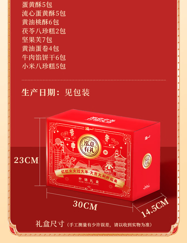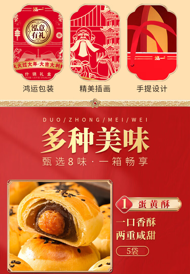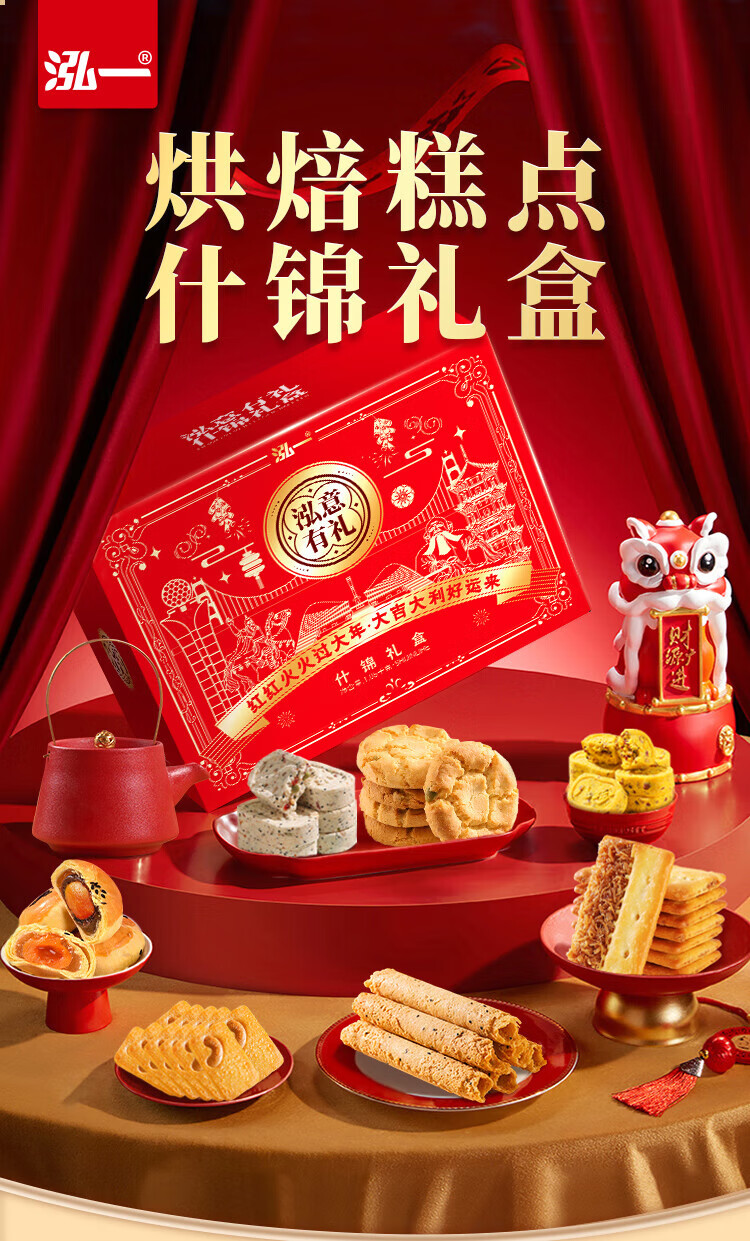泓一什锦年货礼盒1050g 蛋黄酥糕点休闲零食大礼包双层高端送礼品团购