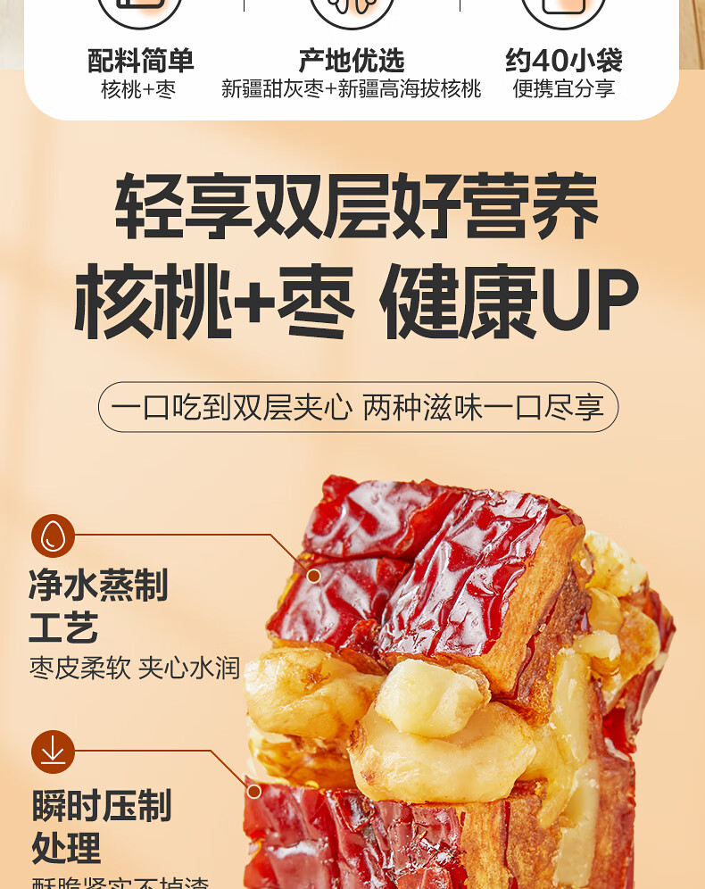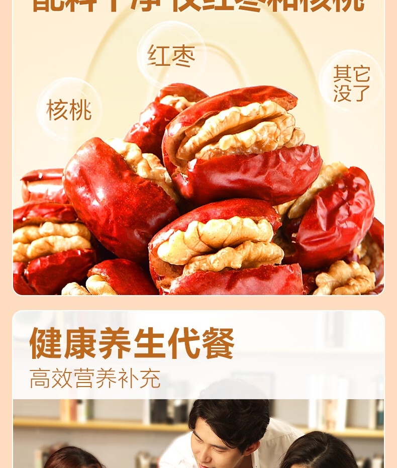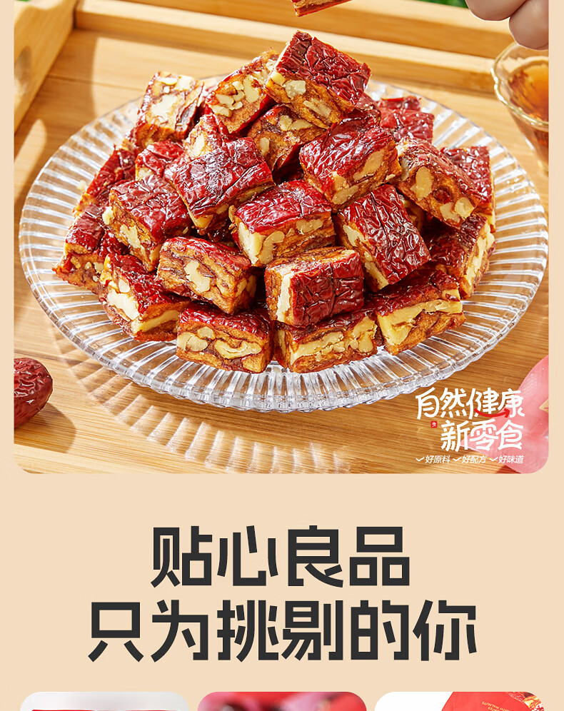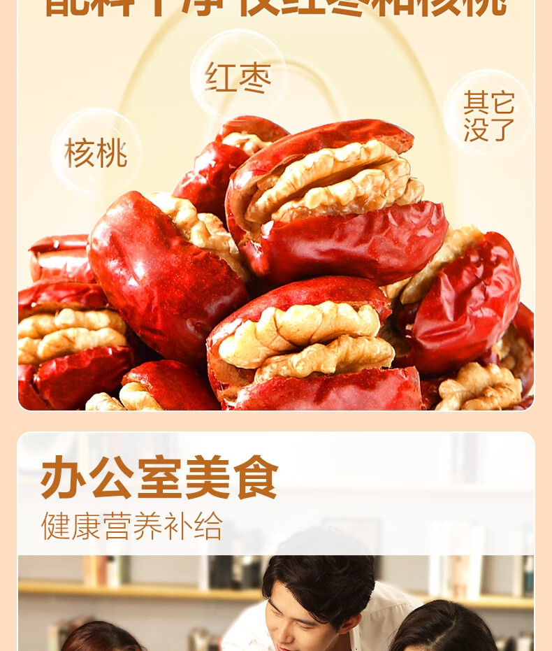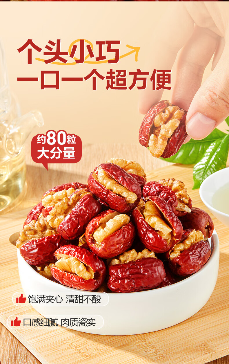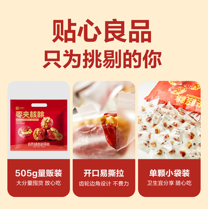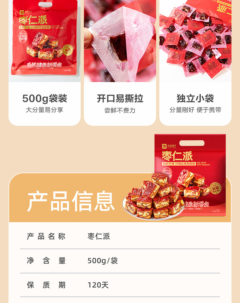 良品铺子枣夹核桃枣仁派枣类休闲零食蜜饯果干果脯 休闲零食 【约100包】枣夹核桃500g*1袋 -