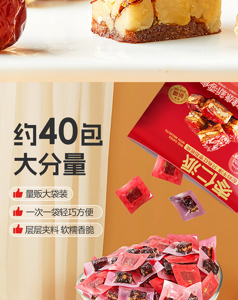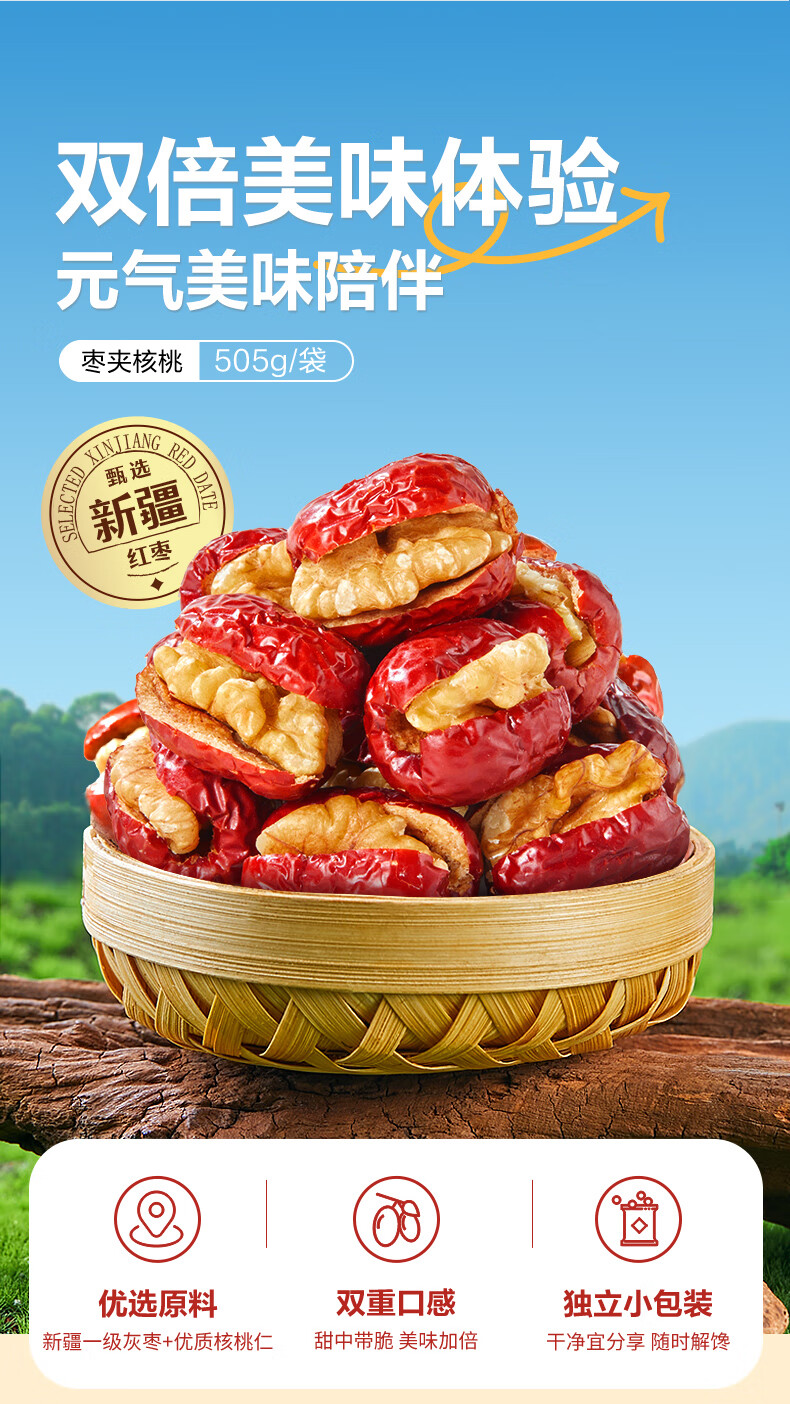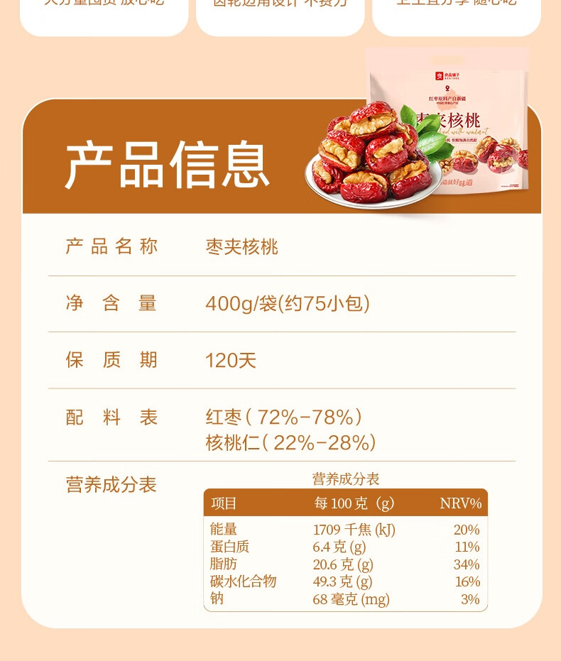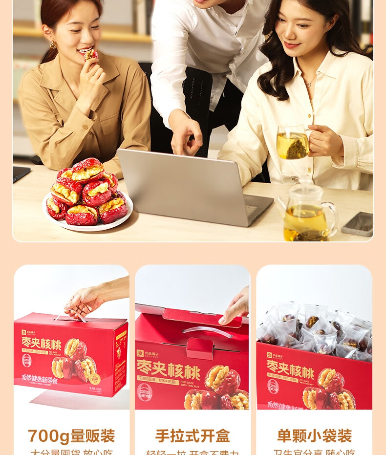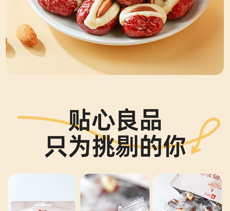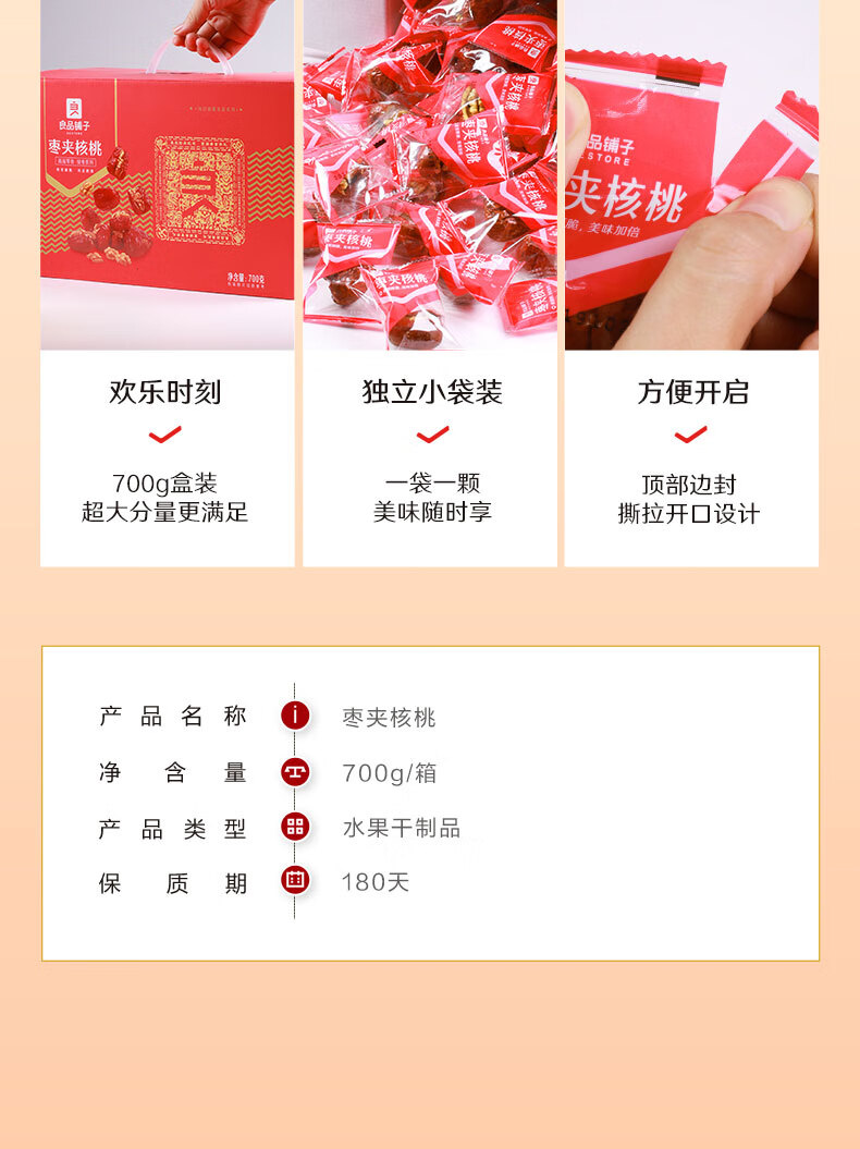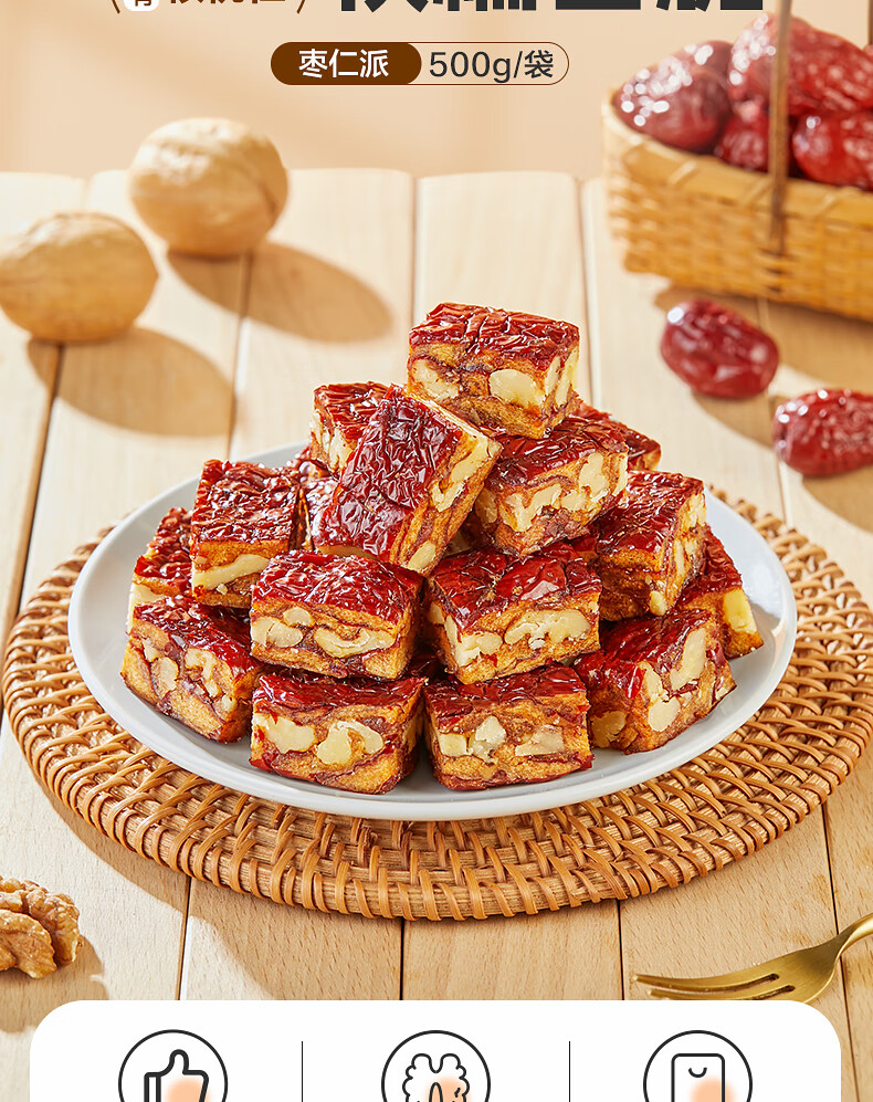 良品铺子枣夹核桃枣仁派枣类休闲零食蜜饯果干果脯 休闲零食 【约100包】枣夹核桃500g*1袋 -