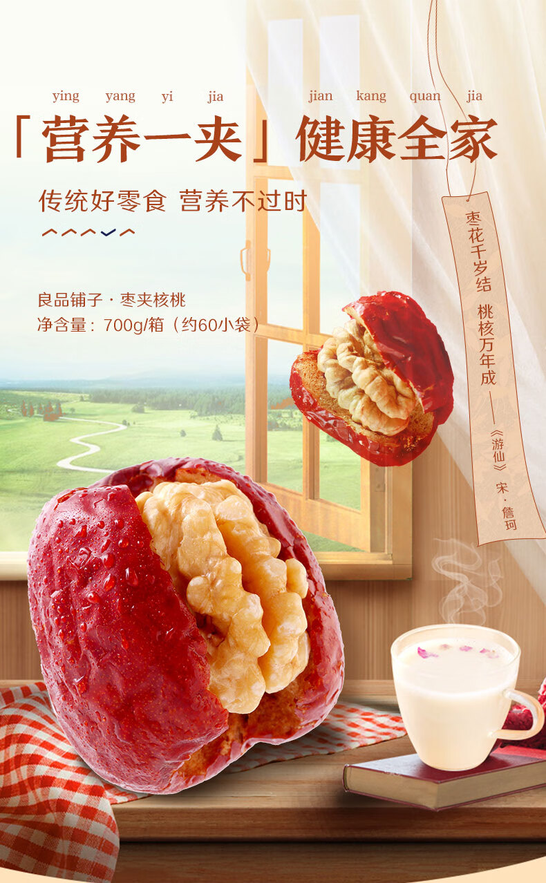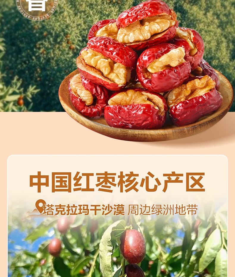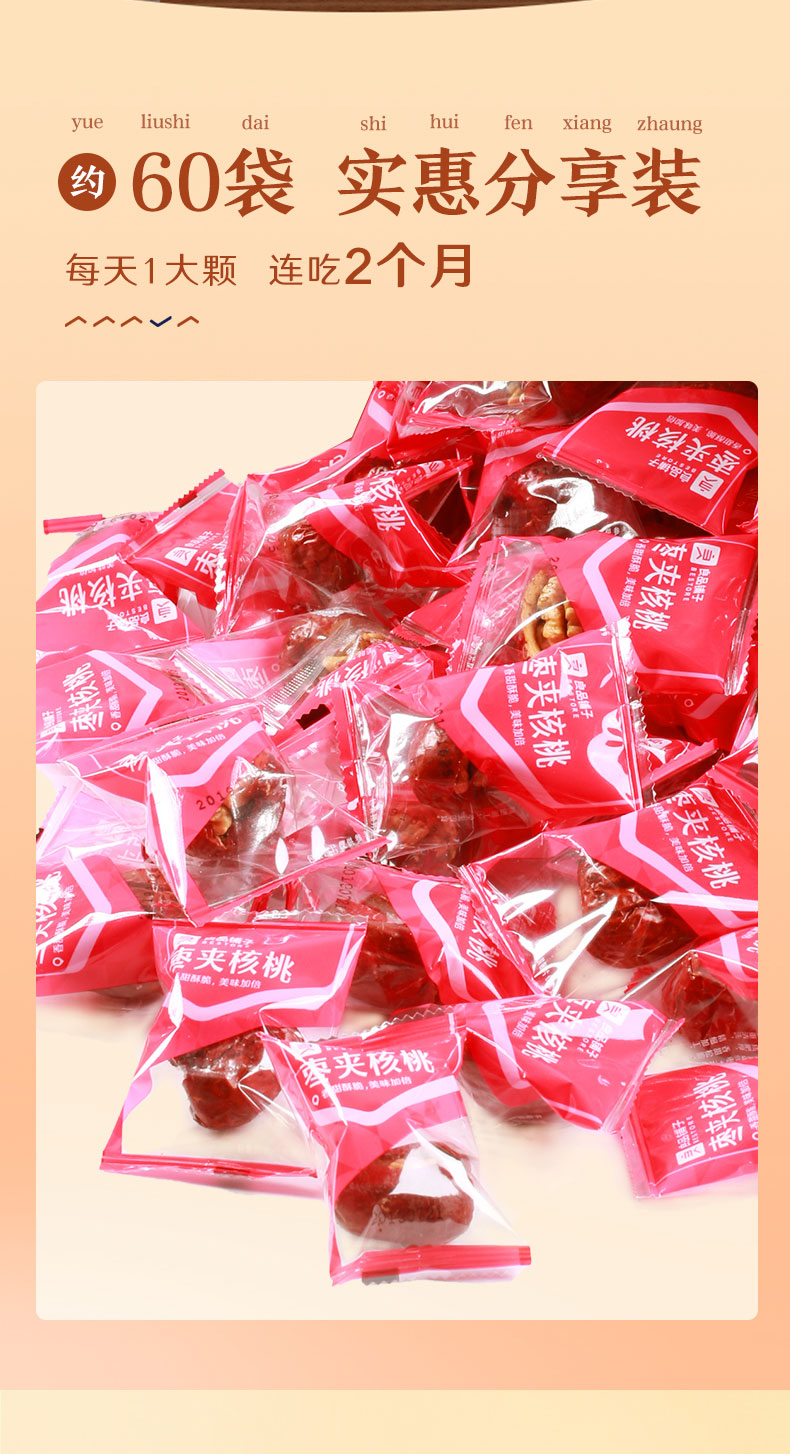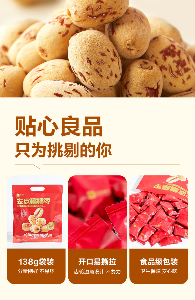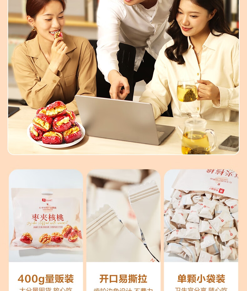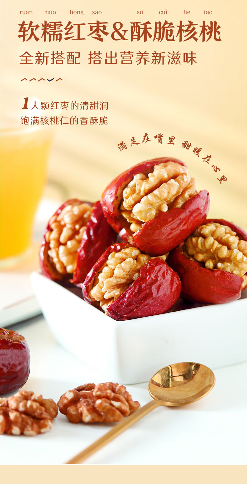 良品铺子枣夹核桃枣仁派枣类休闲零食蜜饯果干果脯 休闲零食 【约100包】枣夹核桃500g*1袋 -