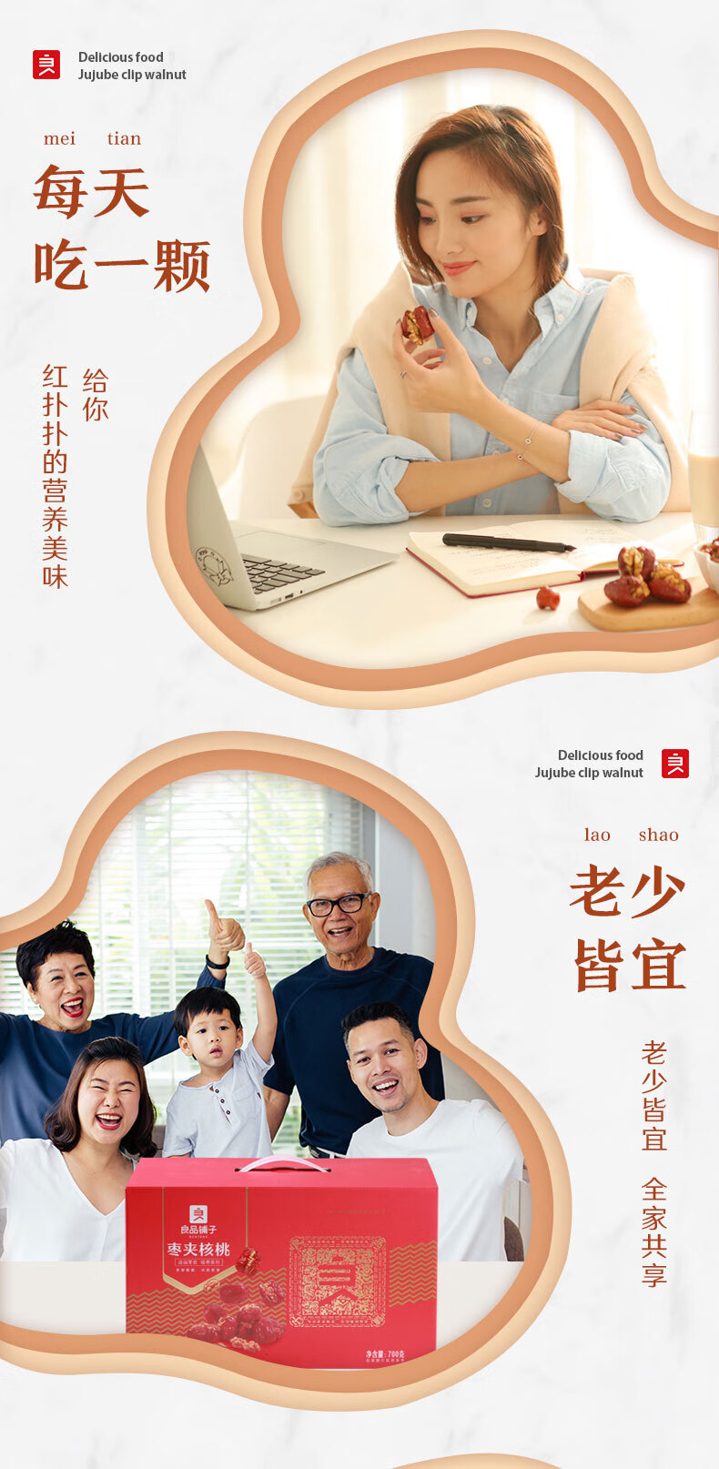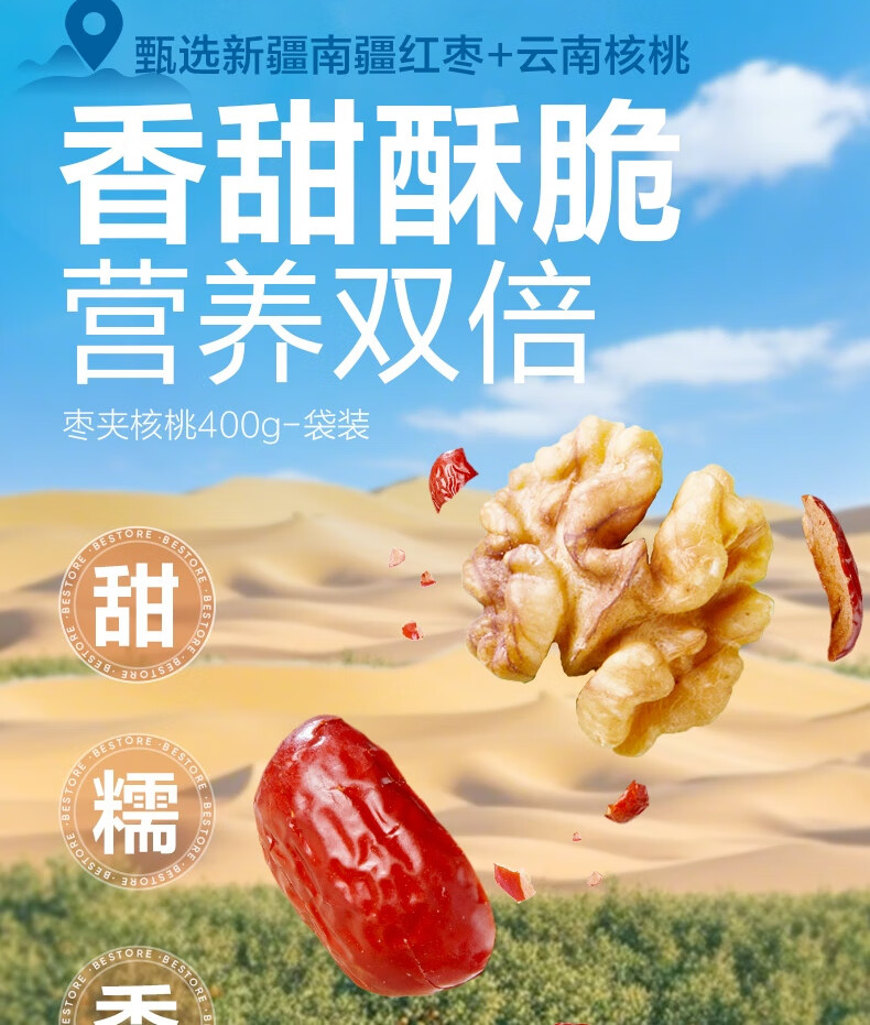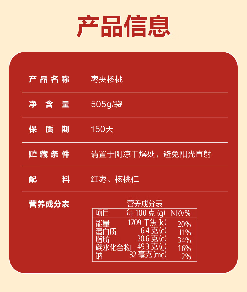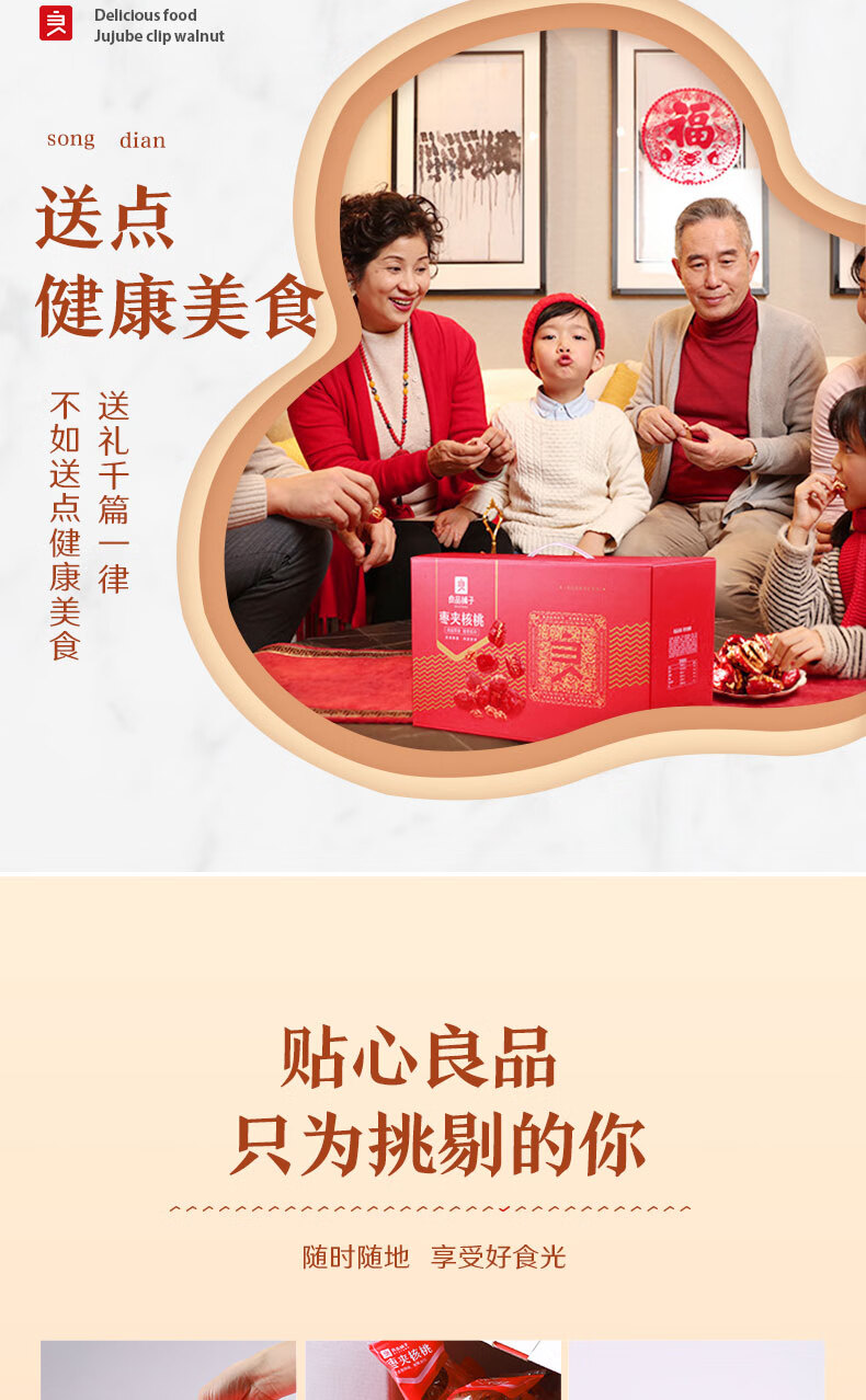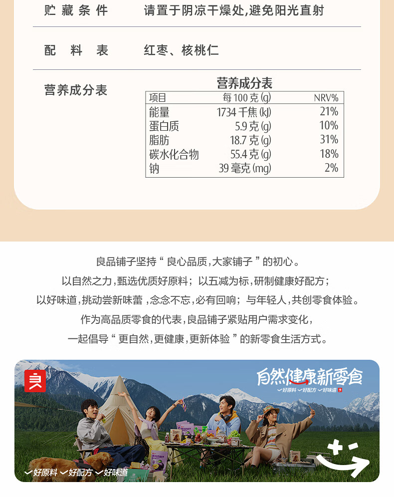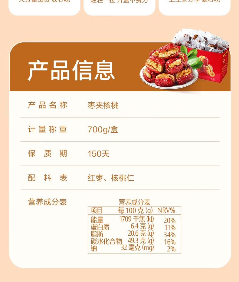 良品铺子枣夹核桃枣仁派枣类休闲零食蜜饯果干果脯 休闲零食 【约100包】枣夹核桃500g*1袋 -