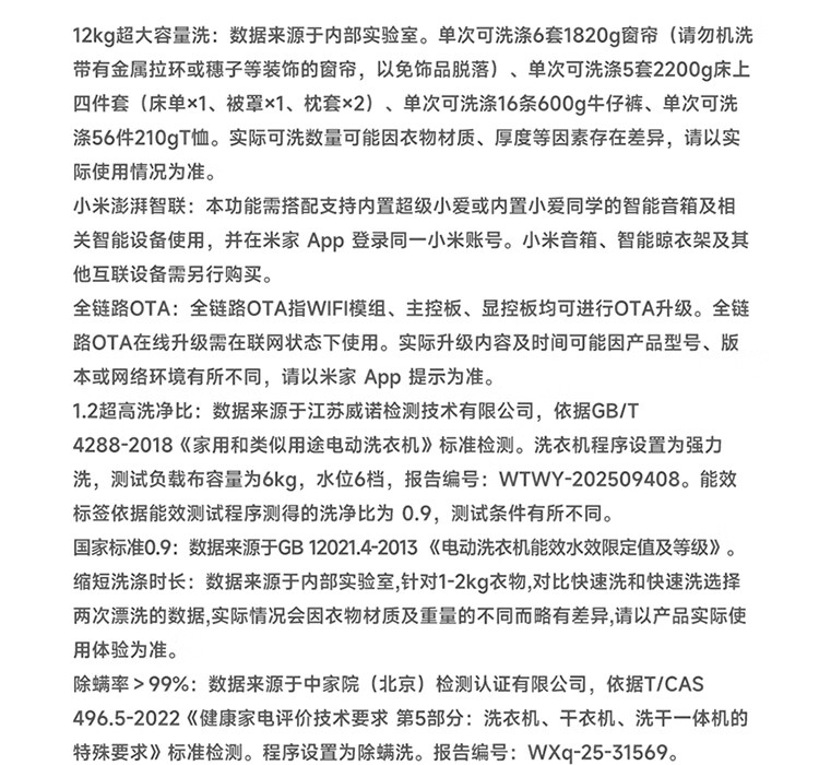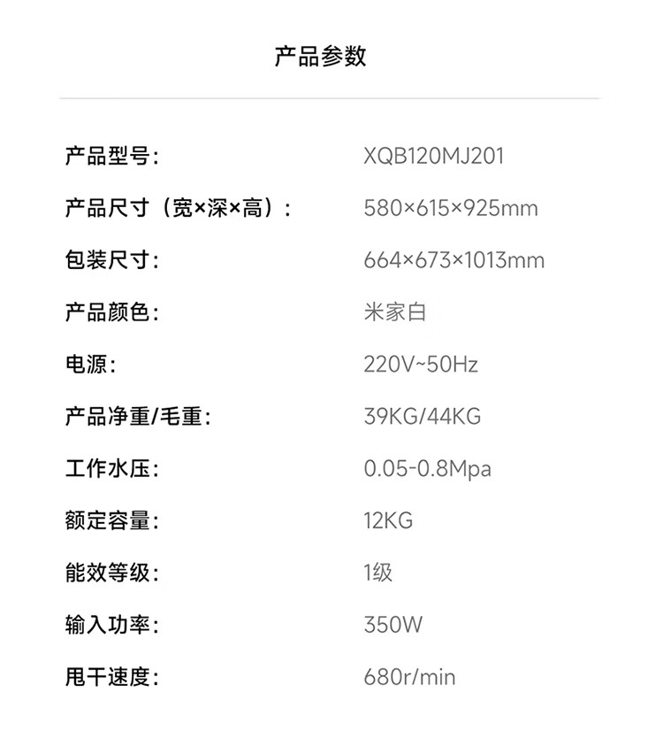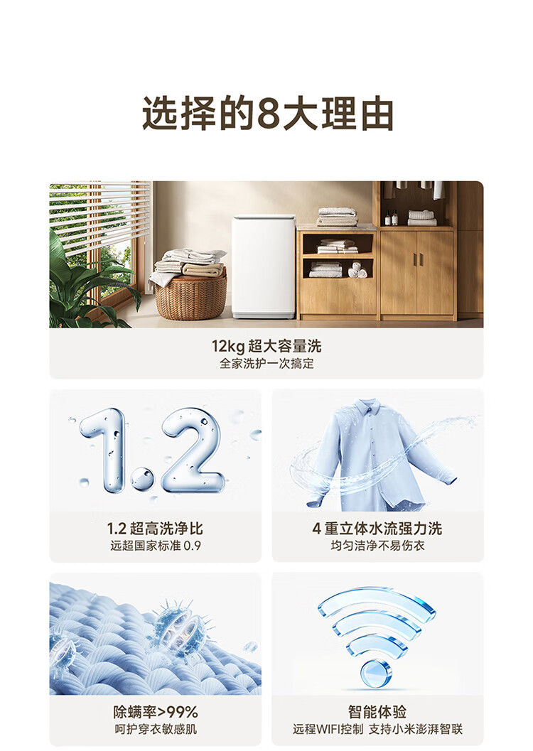 米家【一级能效更省电】小米波轮洗衣机全自动12公斤超净洗羊毛洗大容量租房宿舍XQB120MJ201