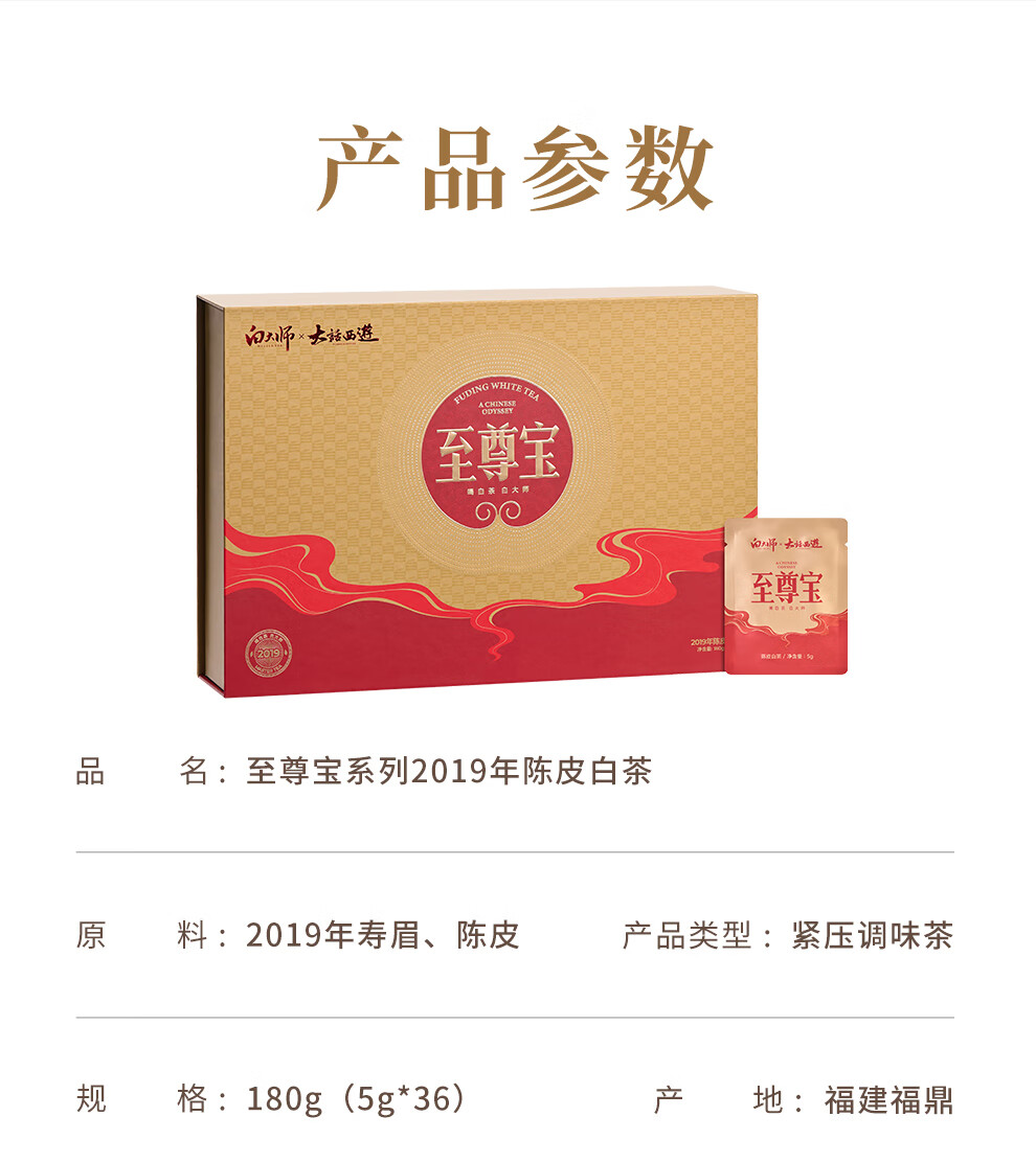 白大师茶叶福鼎白茶大话西游2019年陈皮白茶礼盒180g